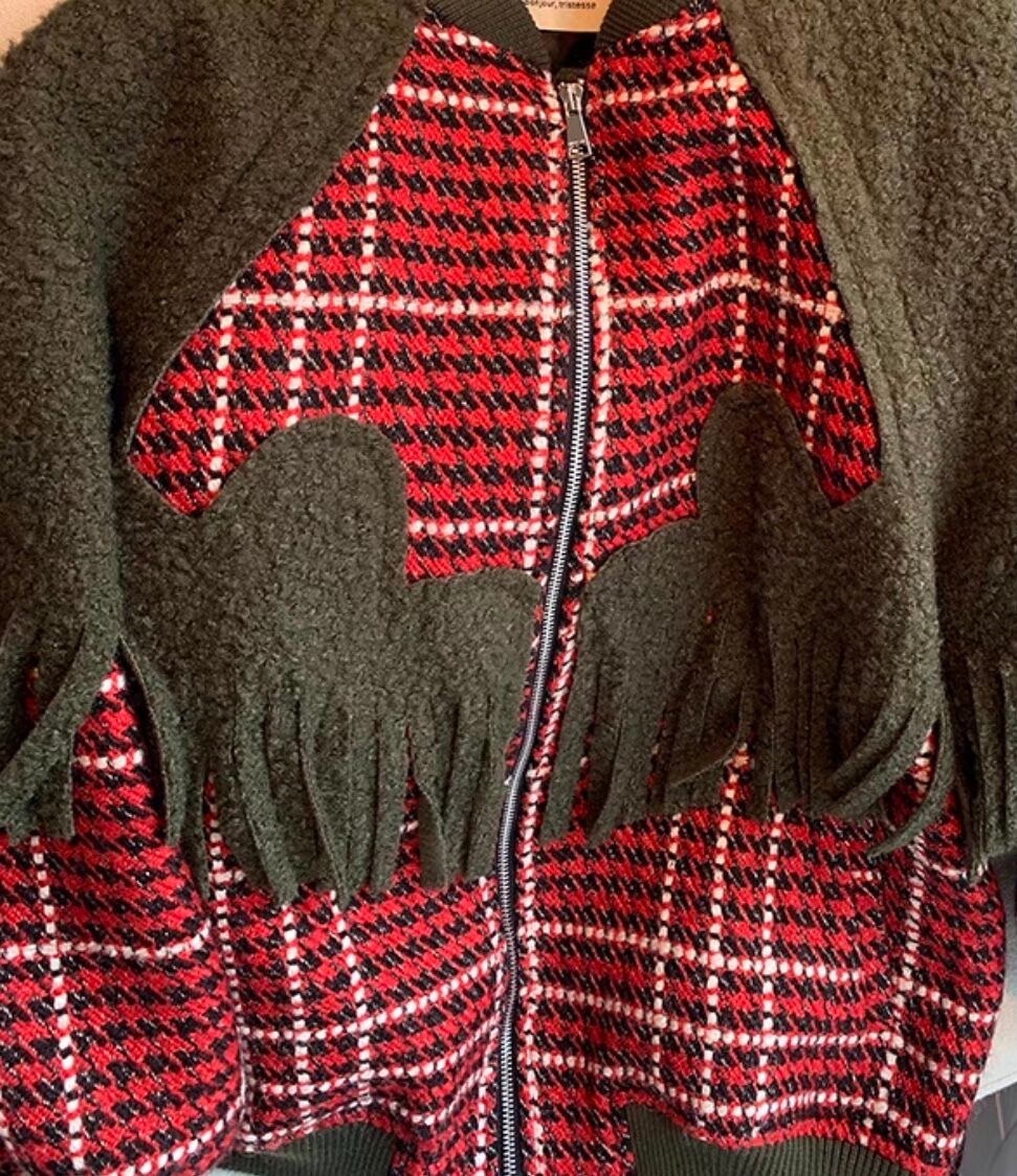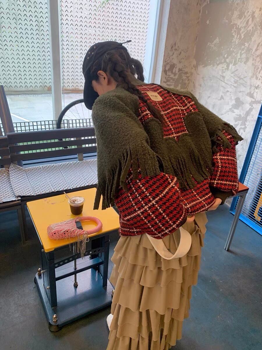 アウター 緑 赤 スクール チェック ブルゾン ジャケット お嬢様 エレガント リボン 茶色 黒 桃 ピンク ニット ゆったり ビッグシルエット オーバーサイズ ブラック カーディガン アウター ジャケット トップス セーター 姫 カーディガン コート ワンピース 原宿 渋谷