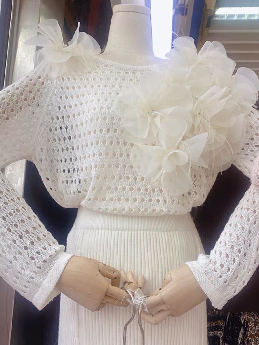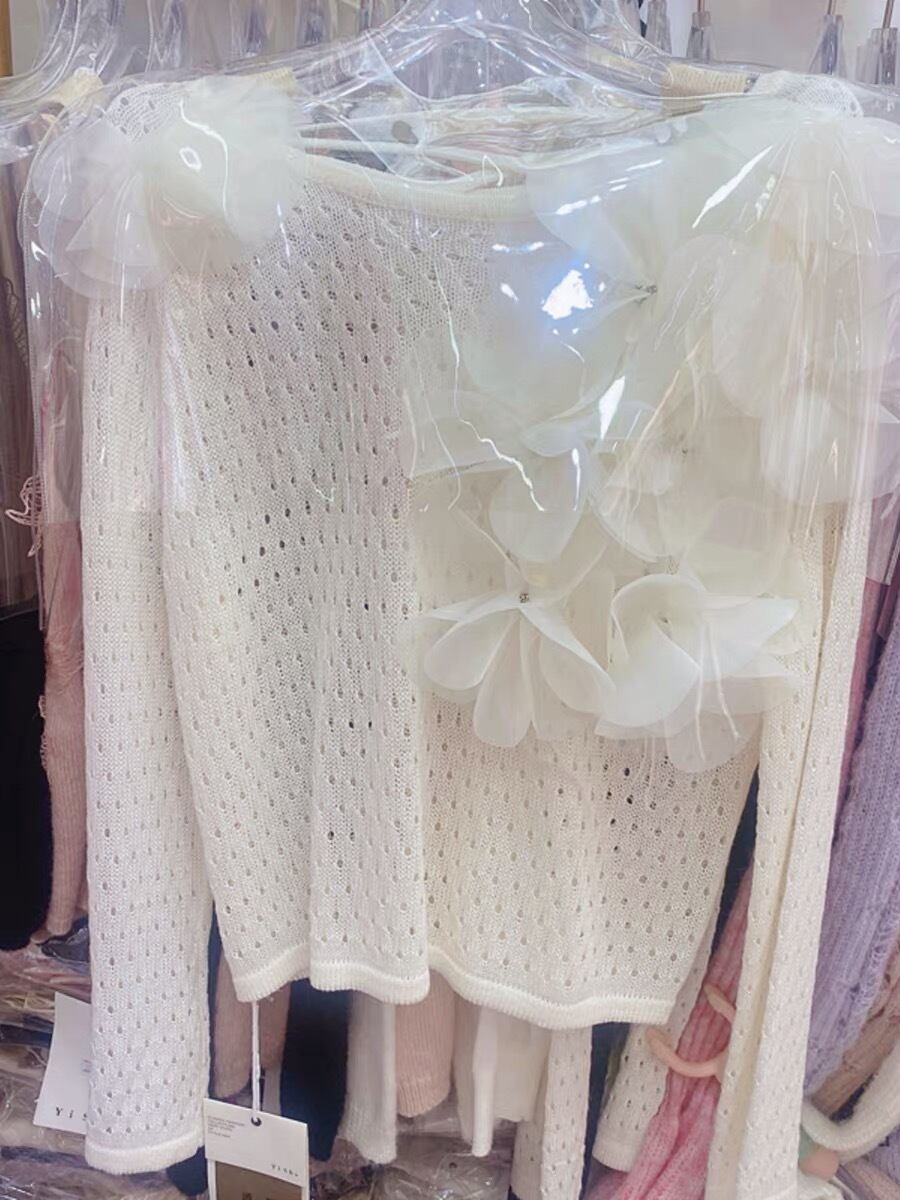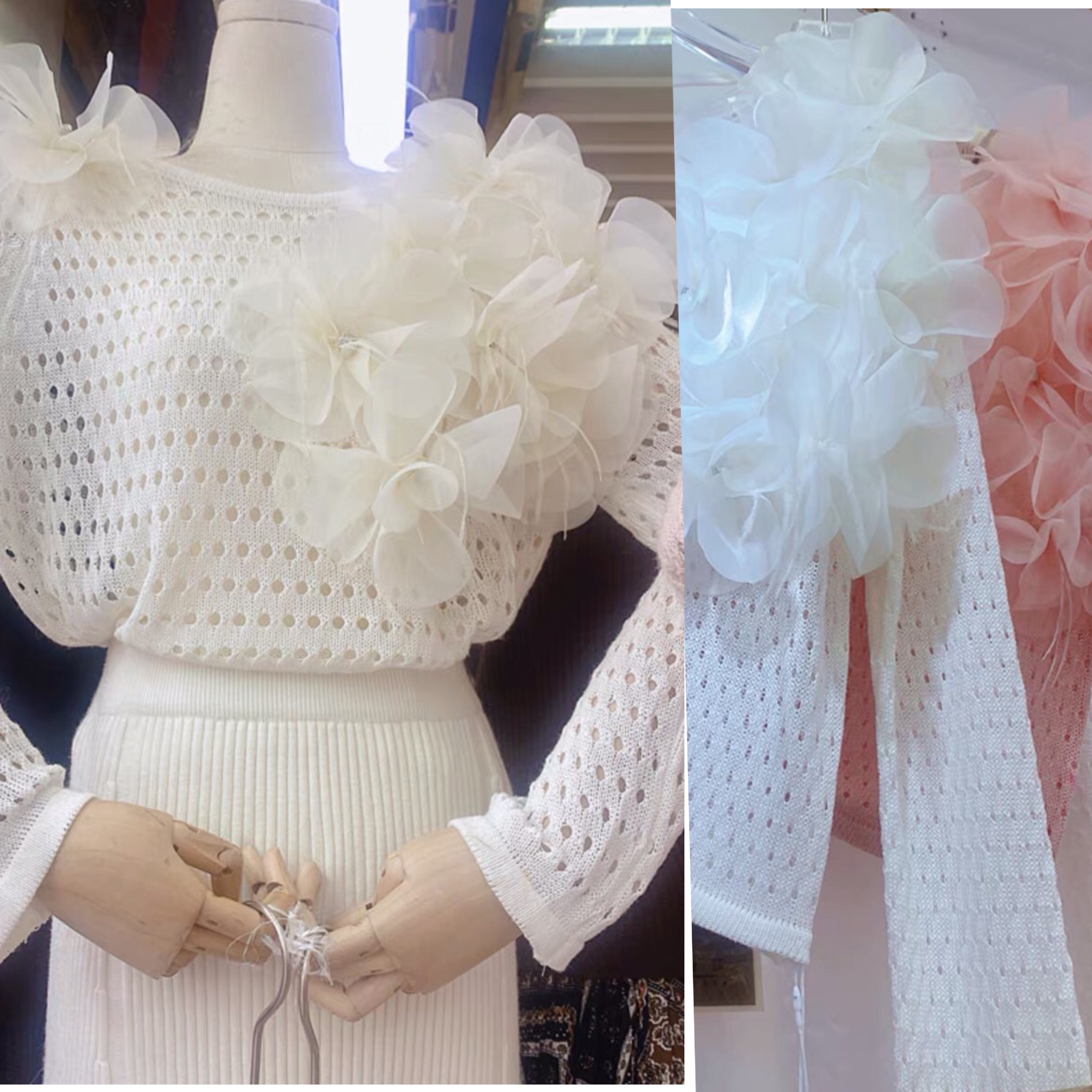 トップス ニット 白 花柄 フラワー オレンジ ピンク ジャケット お嬢様 エレガント リボン 茶色 黒 桃 ピンク ニット ゆったり ビッグシルエット オーバーサイズ ブラック カーディガン アウター ジャケット トップス セーター 姫 カーディガン コート ワンピース 原宿 渋谷