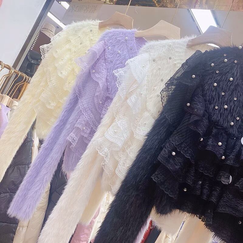 カーディガン 黒 フラワー 紫 白 花柄 ジャケット お嬢様 エレガント リボン 茶色 黒 桃 ピンク ニット ゆったり ビッグシルエット オーバーサイズ ブラック カーディガン アウター ジャケット トップス セーター 姫 カーディガン コート ワンピース 原宿 渋谷