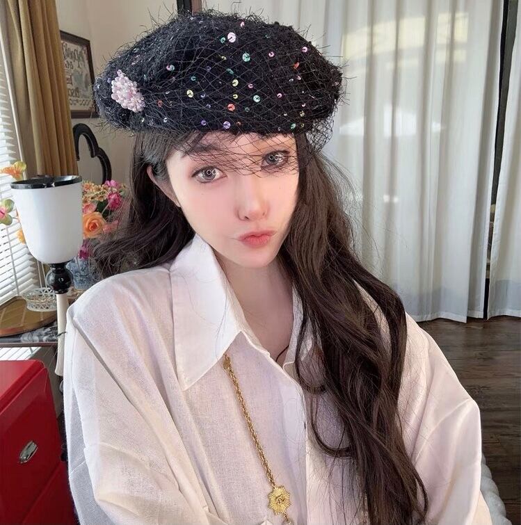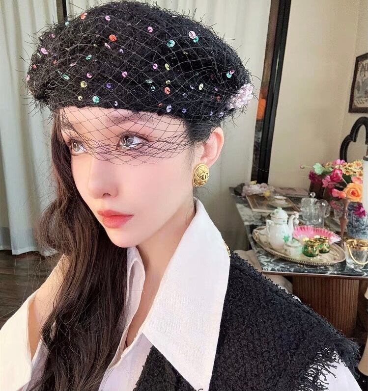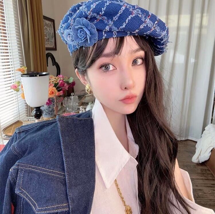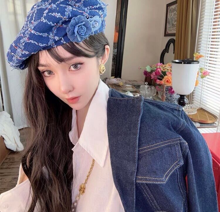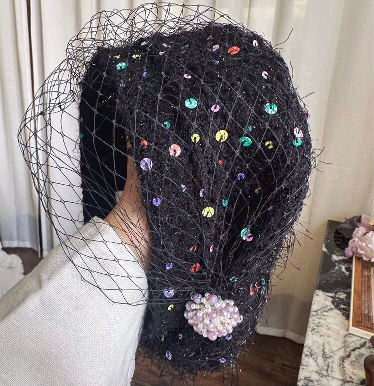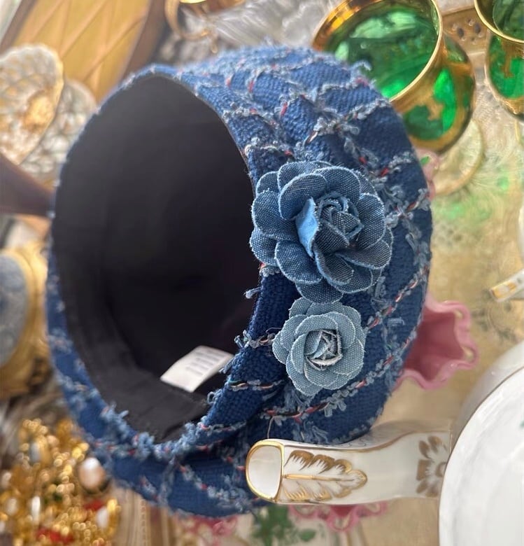 帽子 アクセサリー ニット カメリア 花柄 デニム 黒 ラインストーン アクセサリー ハット 小物 アクセサリー ヘッド