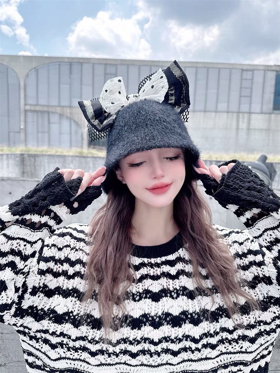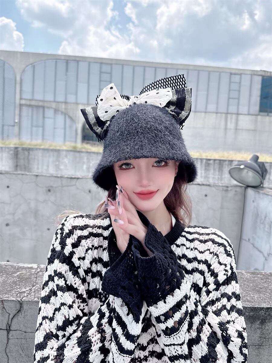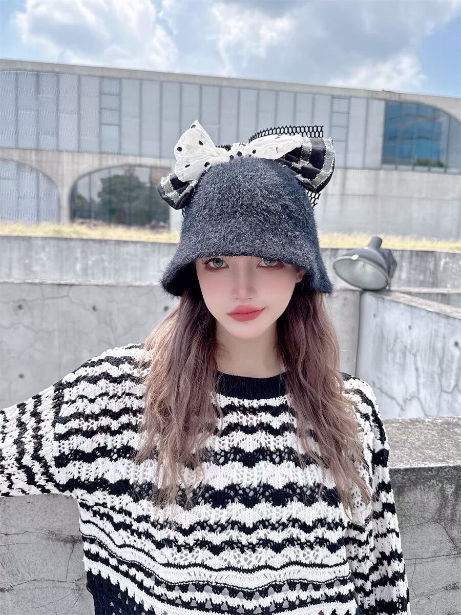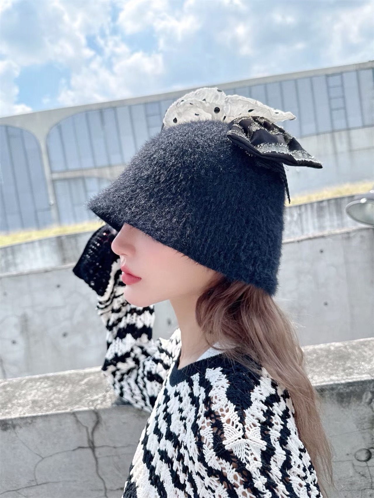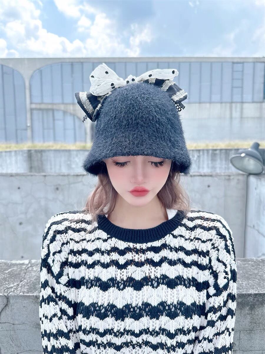 帽子 カラフル ファー リボン 帽子 アクセサリー ニット カメリア 花柄 デニム 黒 ラインストーン アクセサリー ハット 小物 アクセサリー ヘッド バケハ