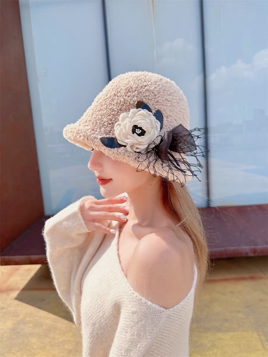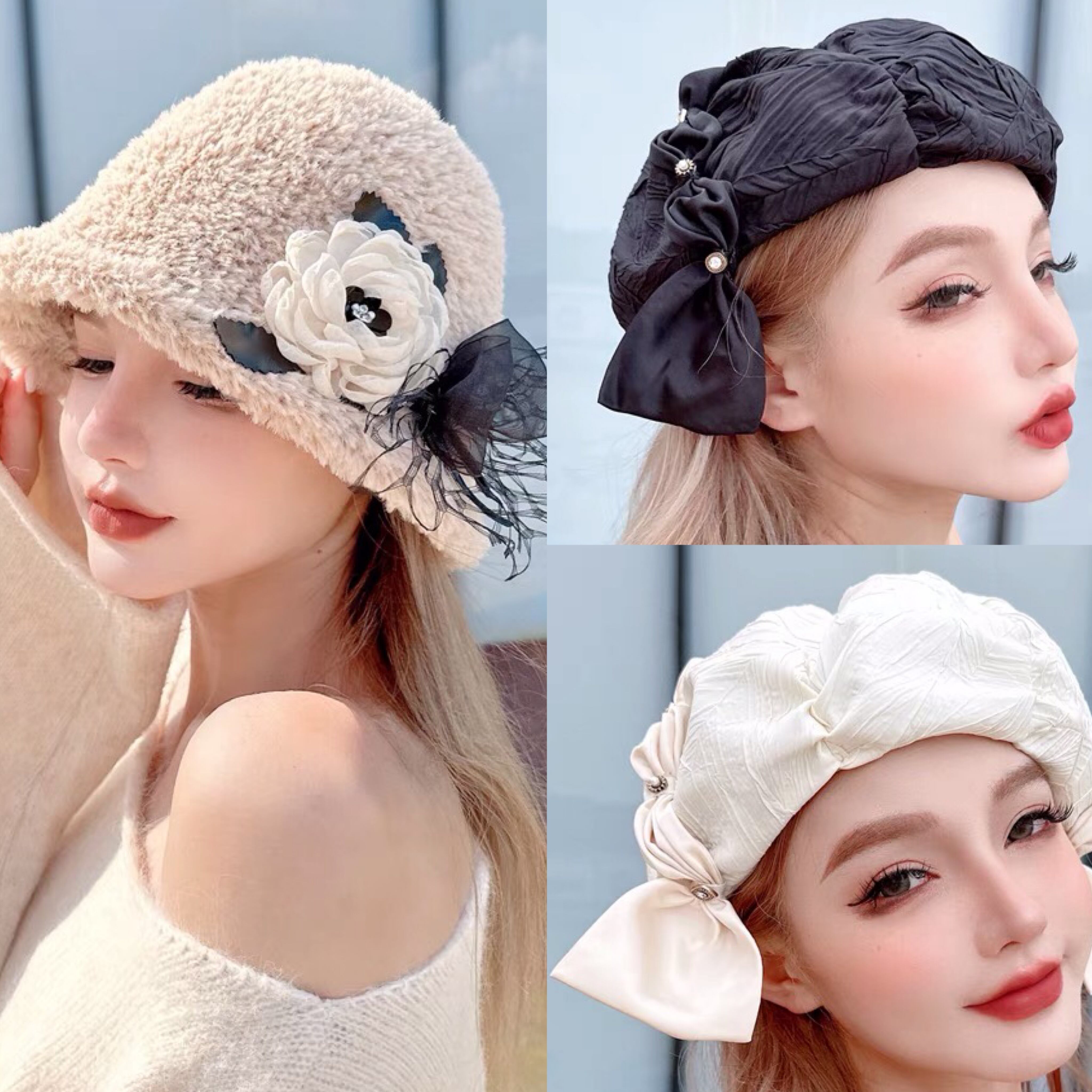 帽子 ベージュ カメリア リボン 白 ベレー帽 帽子 アクセサリー ニット カメリア 花柄 デニム 黒 ラインストーン アクセサリー ハット 小物 アクセサリー ヘッド