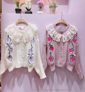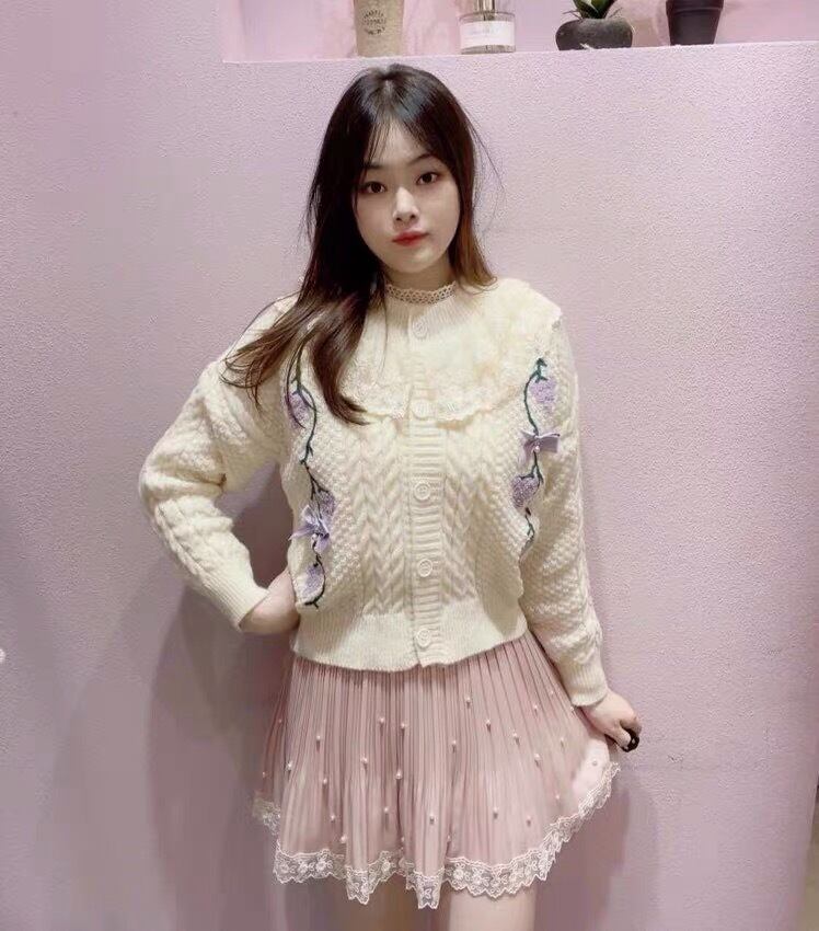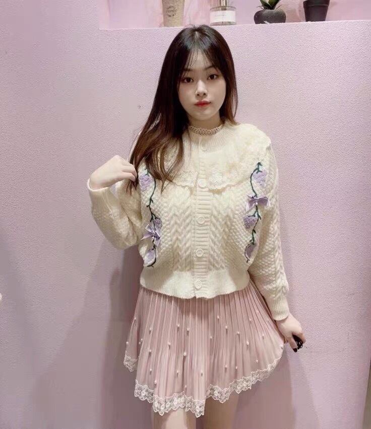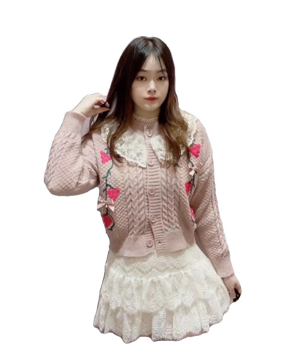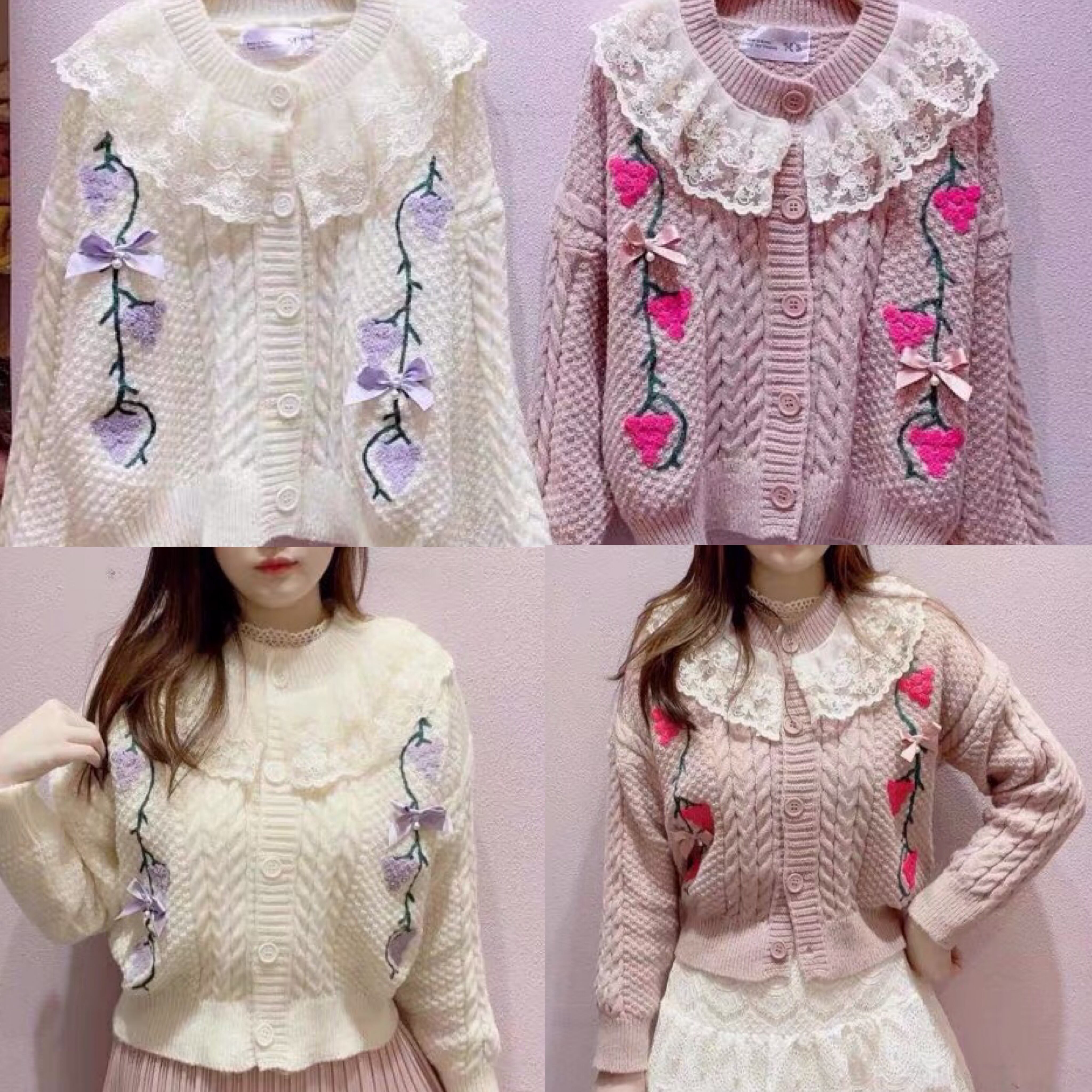 カーディガン ピンク 刺繍 花柄 フラワー ニット ワンピース ゆったり ブラウス 姫 お嬢様 スカート カーディガン ピンク アウター ジャケット コート フリース リボン ハート ピンク ゆったり ビッグシルエット オーバーサイズ ガーリー 原宿 渋谷 トップス ブルゾン ハイネック セーター 丸襟
