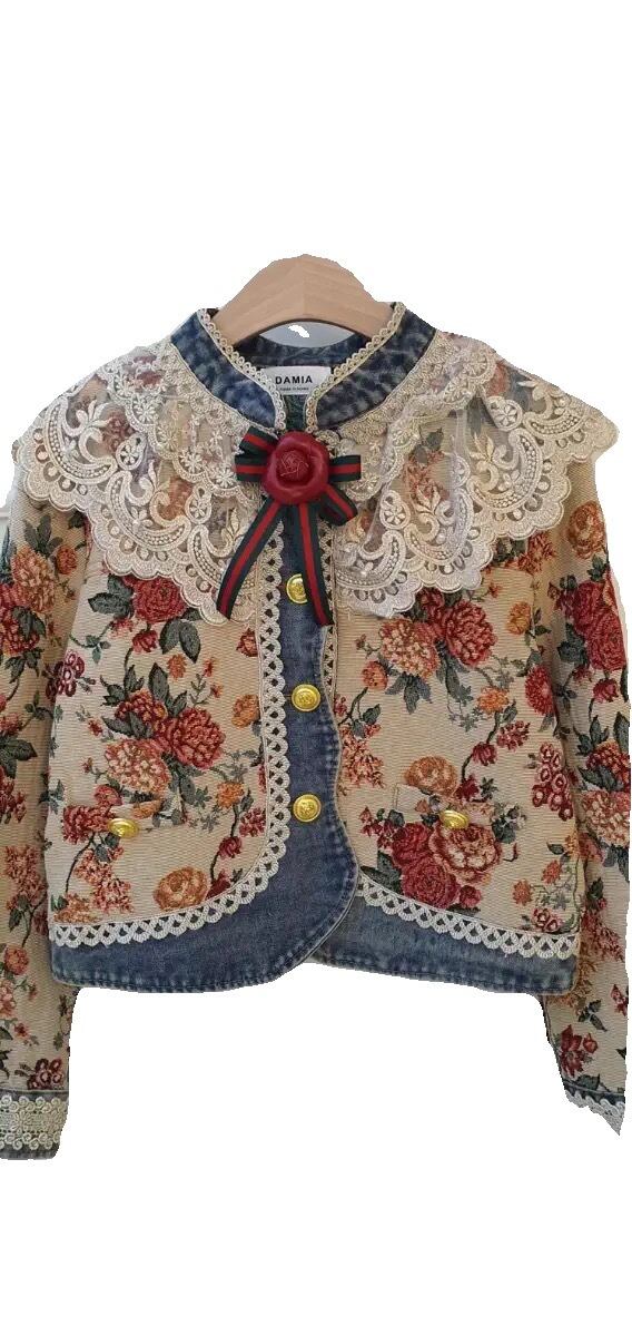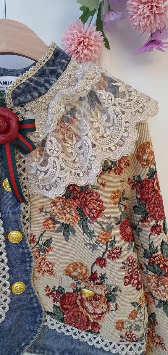 ジャケット デニム 花柄 フラワー ワンピース ゆったり ブラウス 姫 お嬢様 スカート カーディガン ピンク アウター ジャケット コート フリース リボン ハート ピンク ゆったり ビッグシルエット オーバーサイズ ガーリー 原宿 渋谷 トップス ブルゾン ハイネック セーター