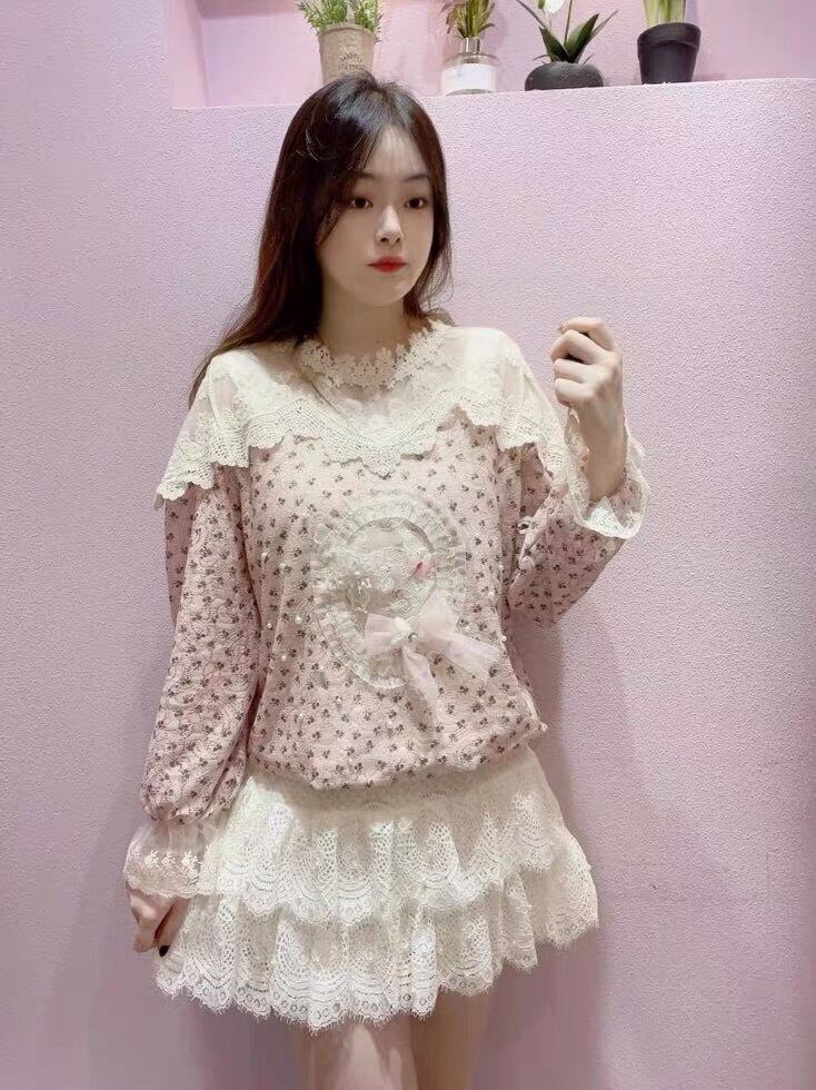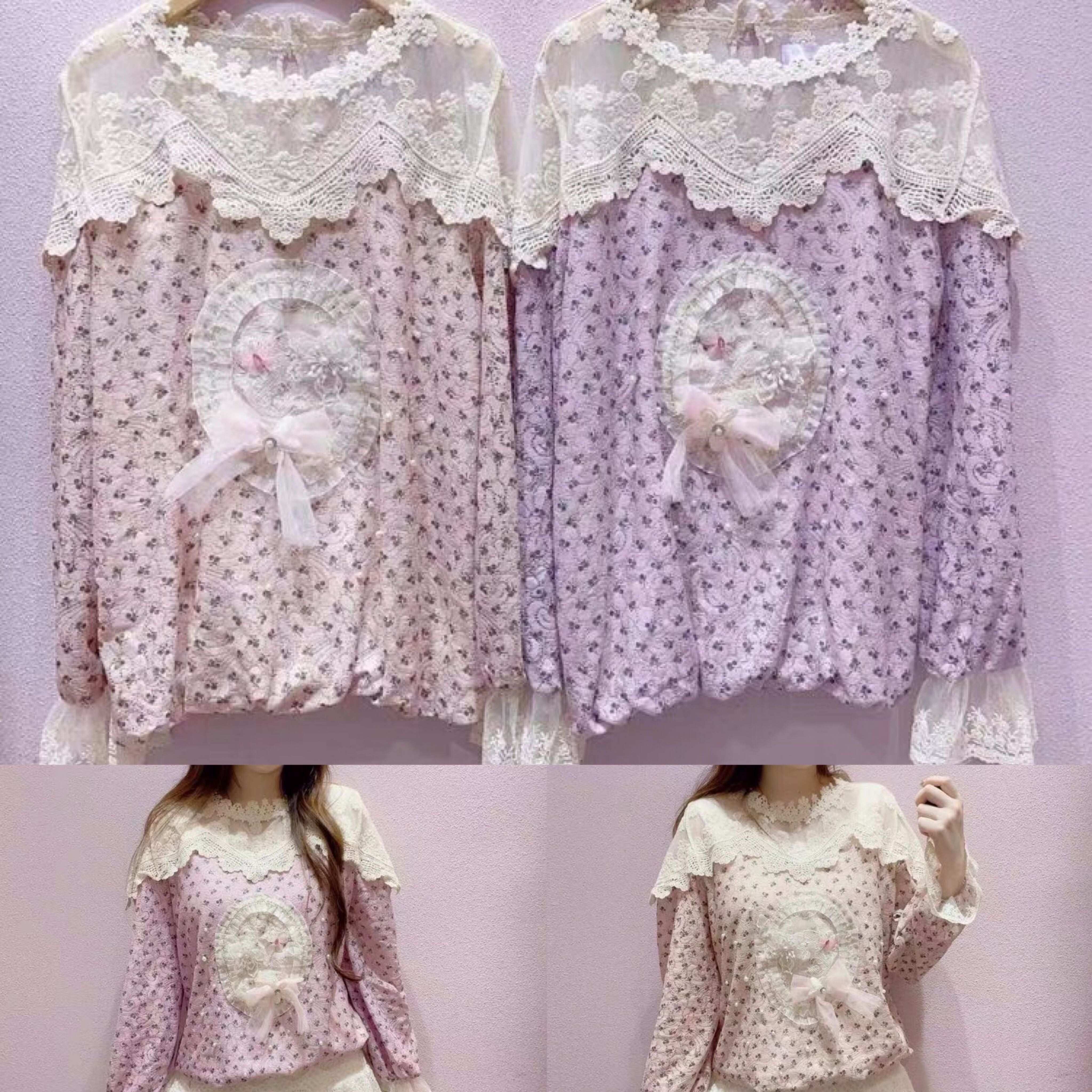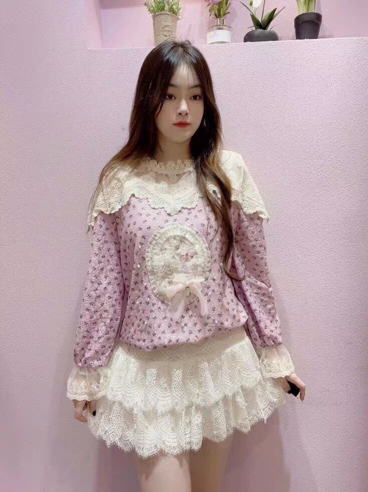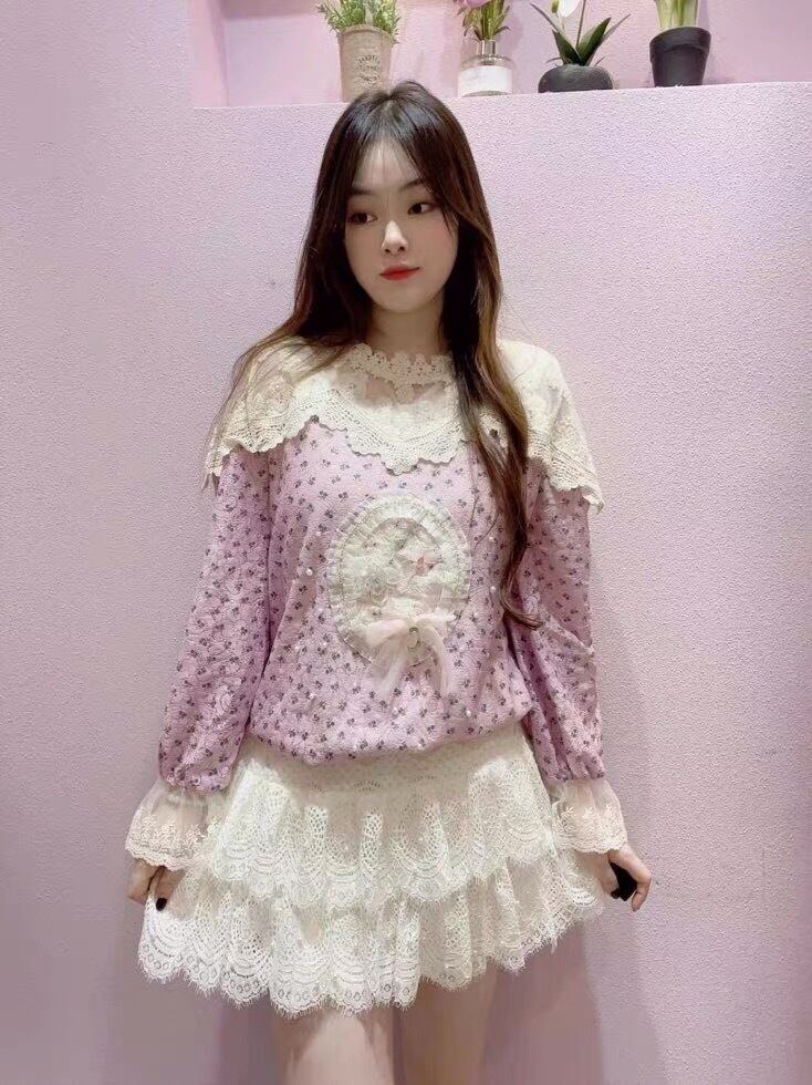 トップス 紫 ワンピース ゆったり ブラウス 姫 お嬢様 スカート カーディガン ピンク アウター ジャケット コート フリース リボン ハート ピンク ゆったり ビッグシルエット オーバーサイズ ガーリー 原宿 渋谷 トップス ブルゾン ハイネック セーター