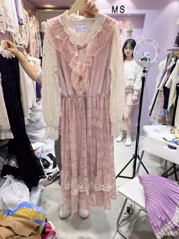 ワンピース ゆったり ブラウス 姫 お嬢様 スカート カーディガン ピンク アウター ジャケット コート フリース リボン ハート ピンク ゆったり ビッグシルエット オーバーサイズ ガーリー 原宿 渋谷 トップス ブルゾン ハイネック セーター