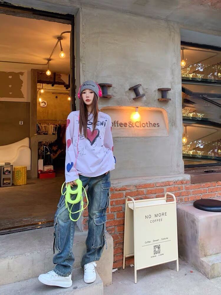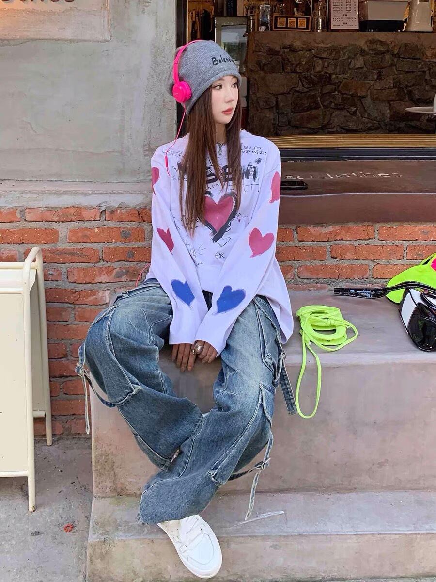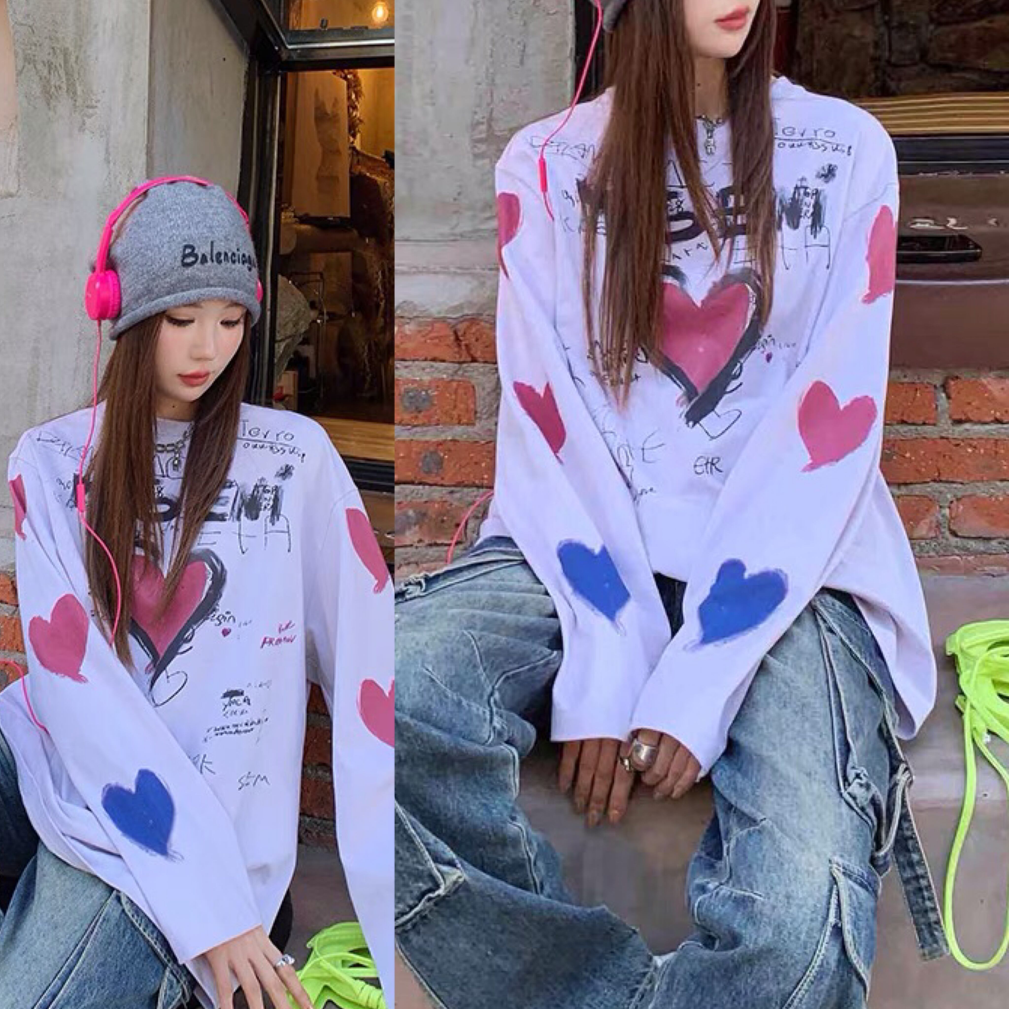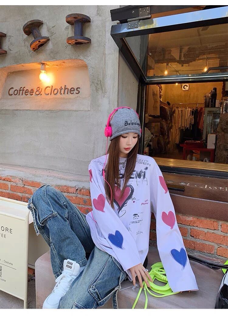 Tシャツ ハート Tシャツ ストリート カーディガン ピンク アウター ジャケット コート フリース リボン ハート ピンク ゆったり ビッグシルエット オーバーサイズ ガーリー 原宿 渋谷 トップス ブルゾン ハイネック セーター