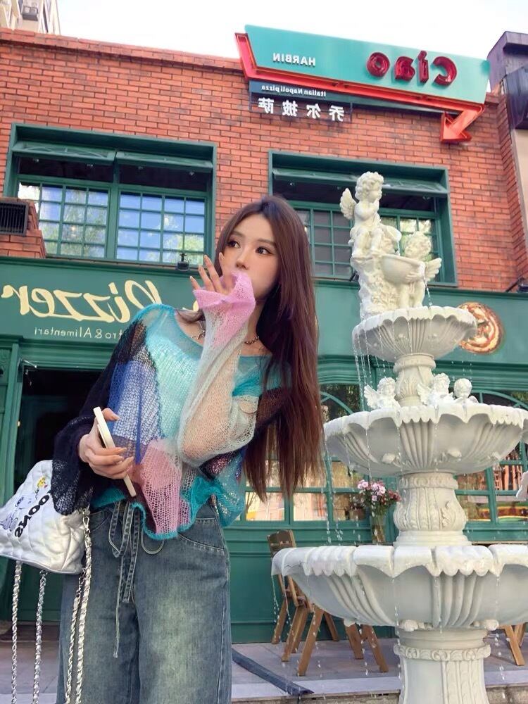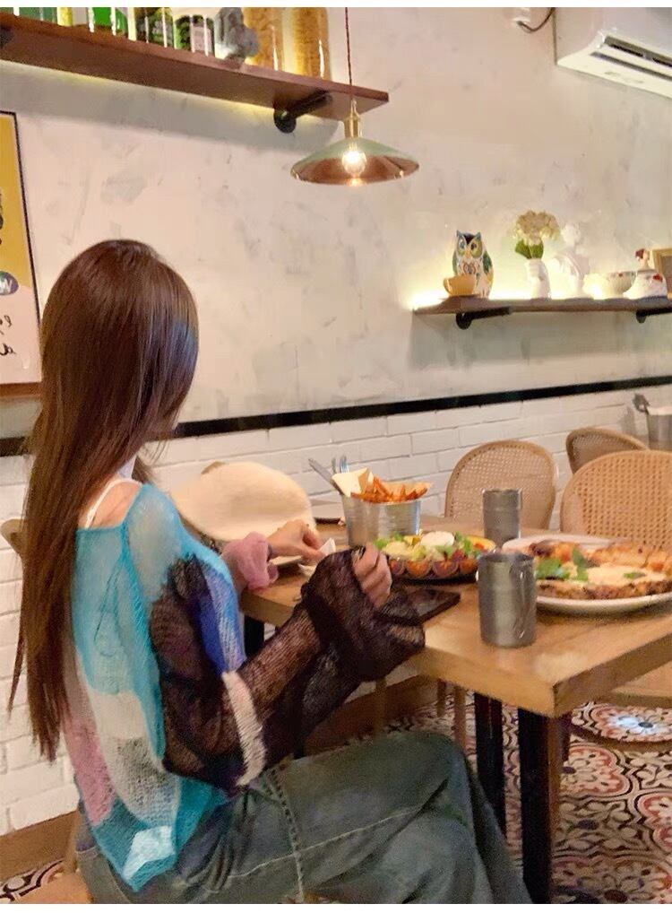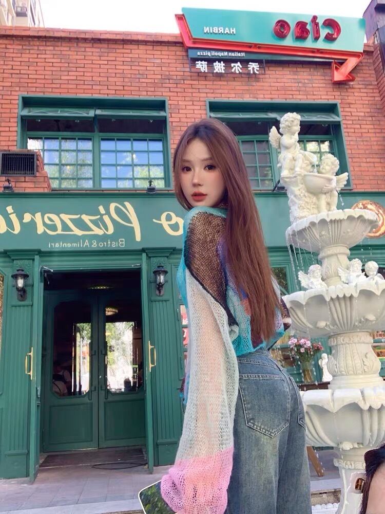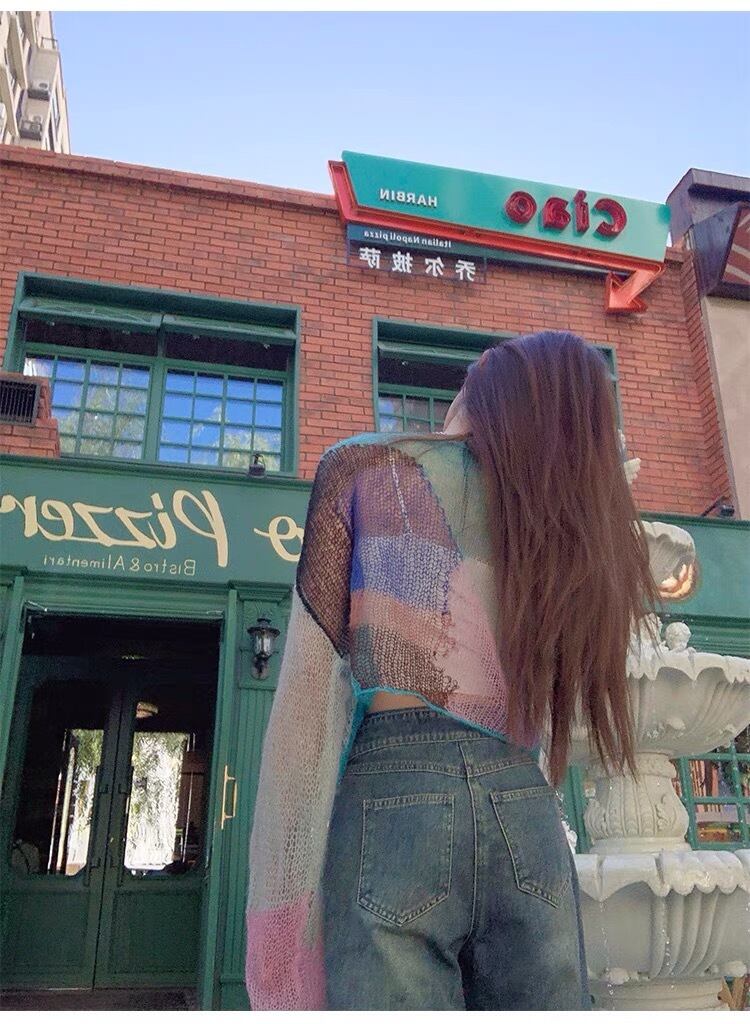 ニット カラフル あみあみ カーディガン ピンク アウター ジャケット コート フリース リボン ハート ピンク ゆったり ビッグシルエット オーバーサイズ ガーリー 原宿 渋谷 トップス ブルゾン ハイネック セーター