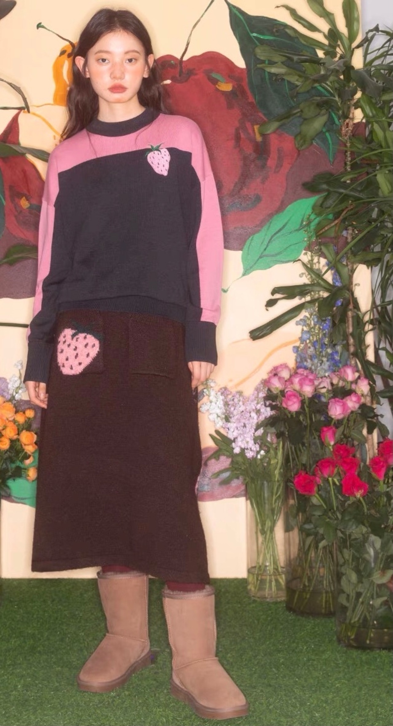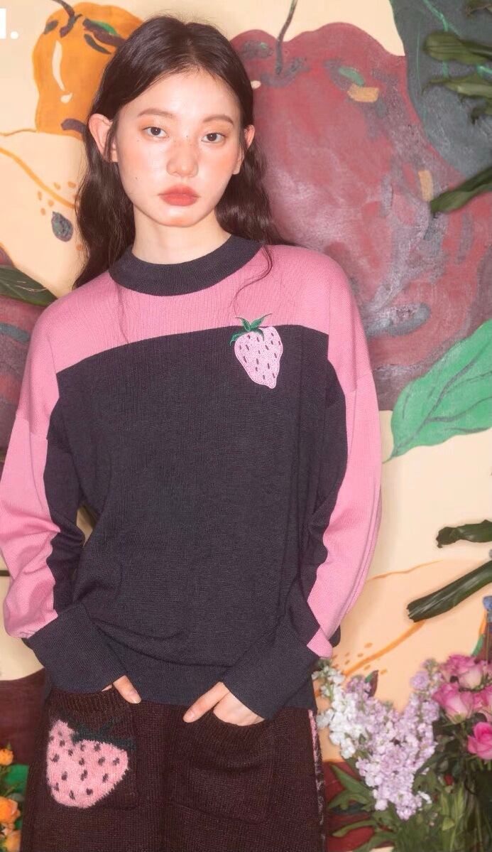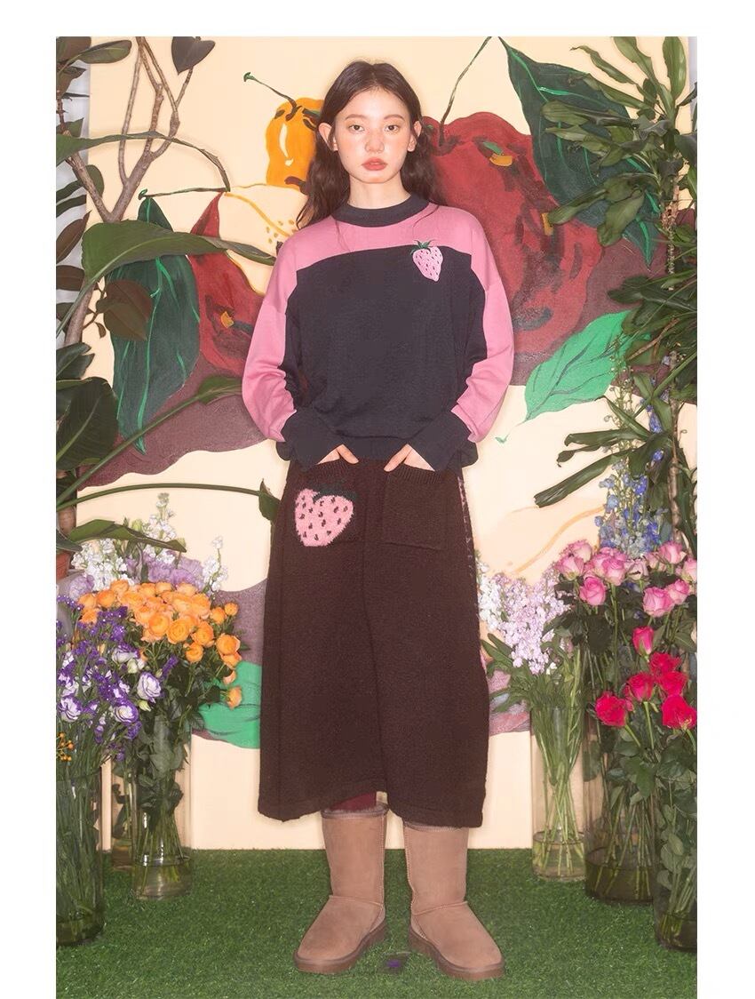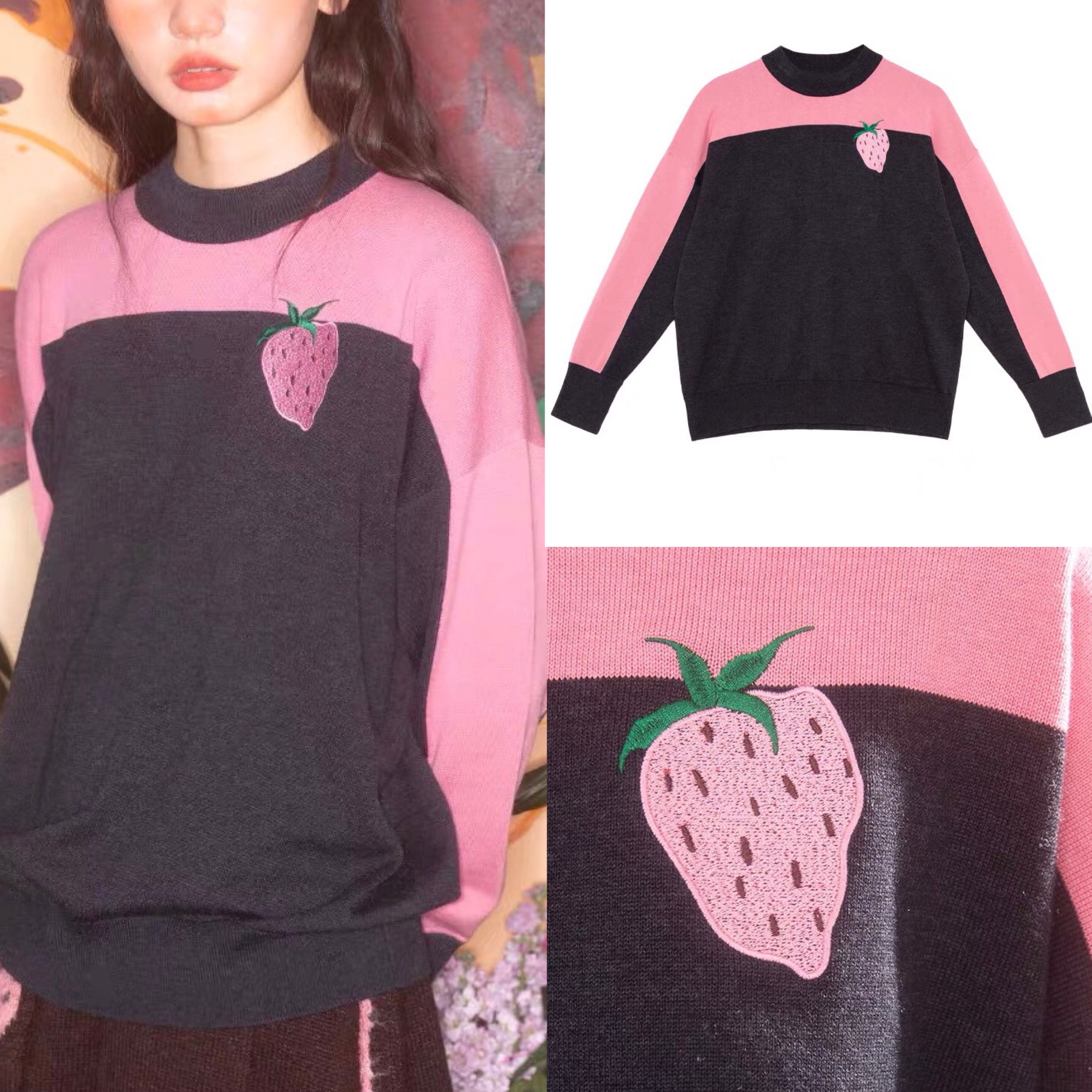 セーター いちご ピンク カーディガン ピンク アウター ジャケット コート フリース リボン ハート ピンク ゆったり ビッグシルエット オーバーサイズ ガーリー 原宿 渋谷 トップス ブルゾン ハイネック セーター グレー