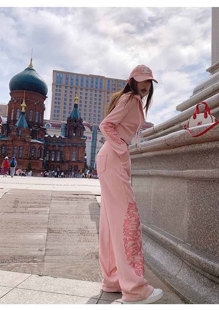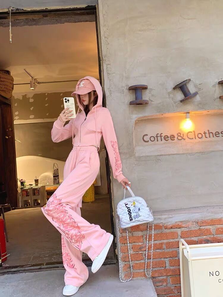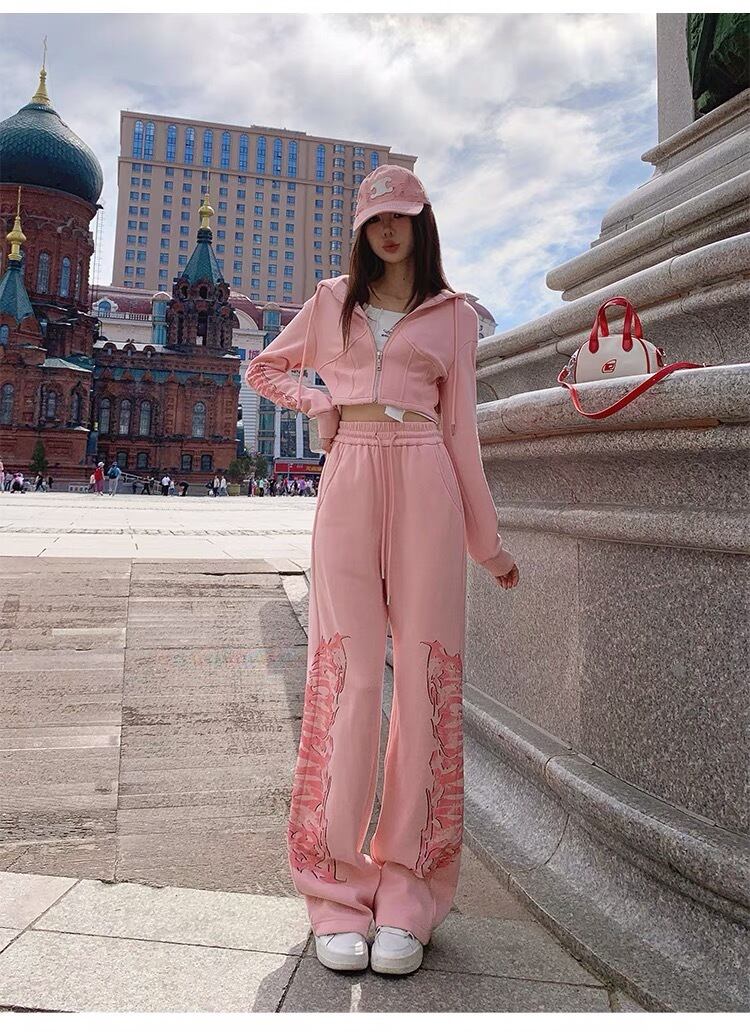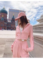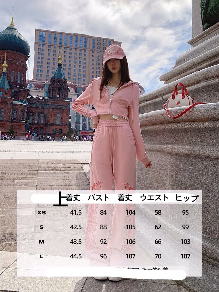 【セットアップ】パーカー スウェット ピンク カーディガン ピンク アウター ジャケット コート フリース リボン ハート ピンク ゆったり ビッグシルエット オーバーサイズ ガーリー 原宿 渋谷 トップス ブルゾン ハイネック セーター オレンジ ツーピース