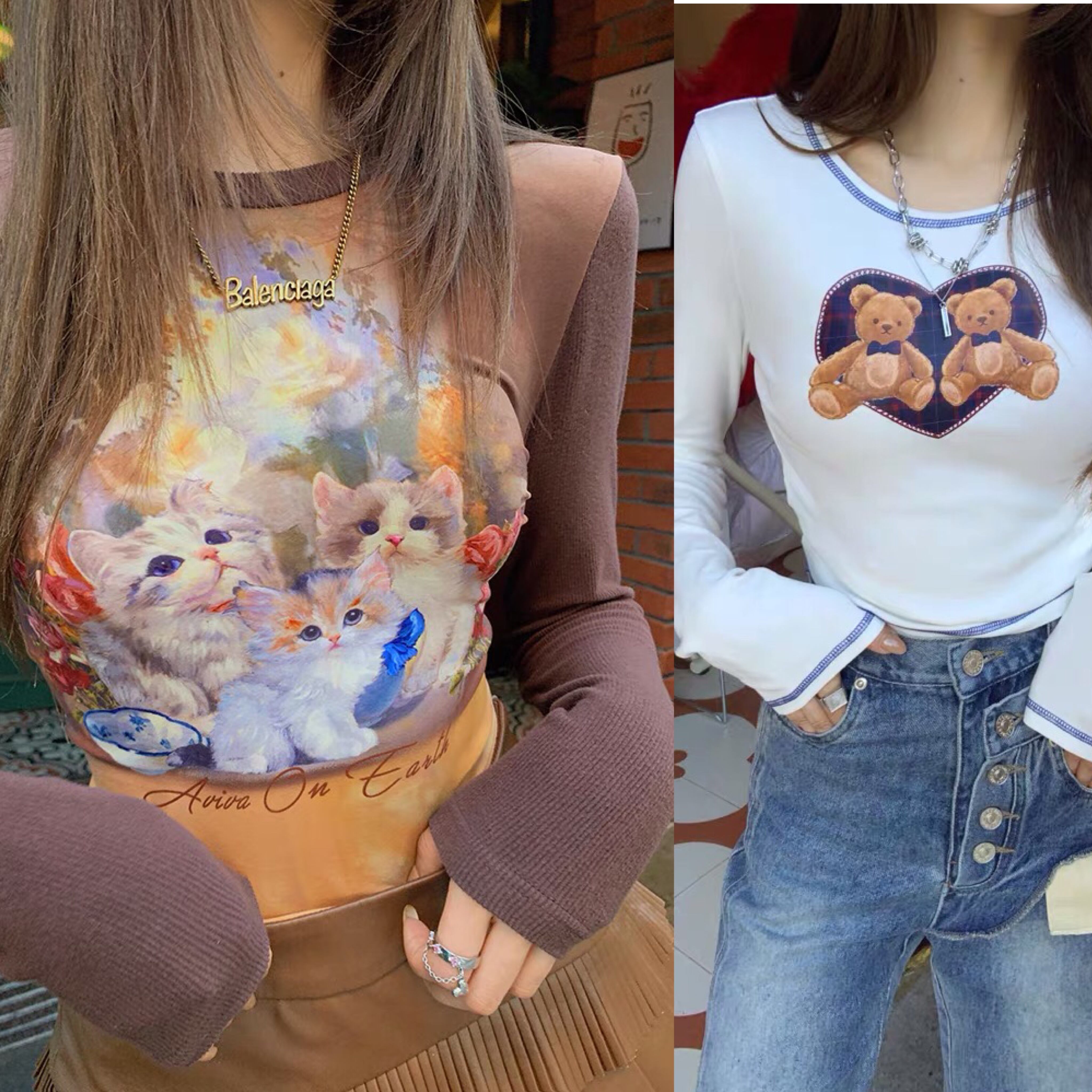 トップス ハート くま ねこ Tシャツ カーディガン ピンク アウター ジャケット コート フリース リボン ハート ピンク ゆったり ビッグシルエット オーバーサイズ ガーリー 原宿 渋谷 トップス ブルゾン ハイネック セーター