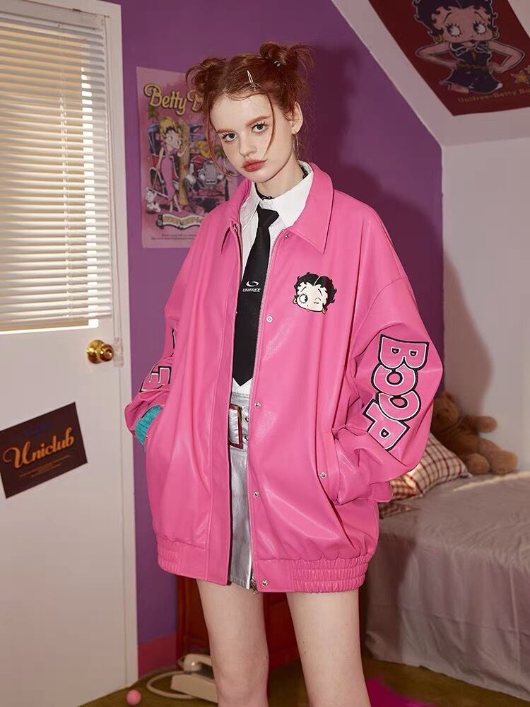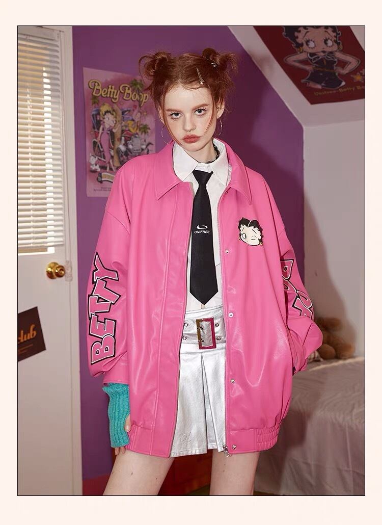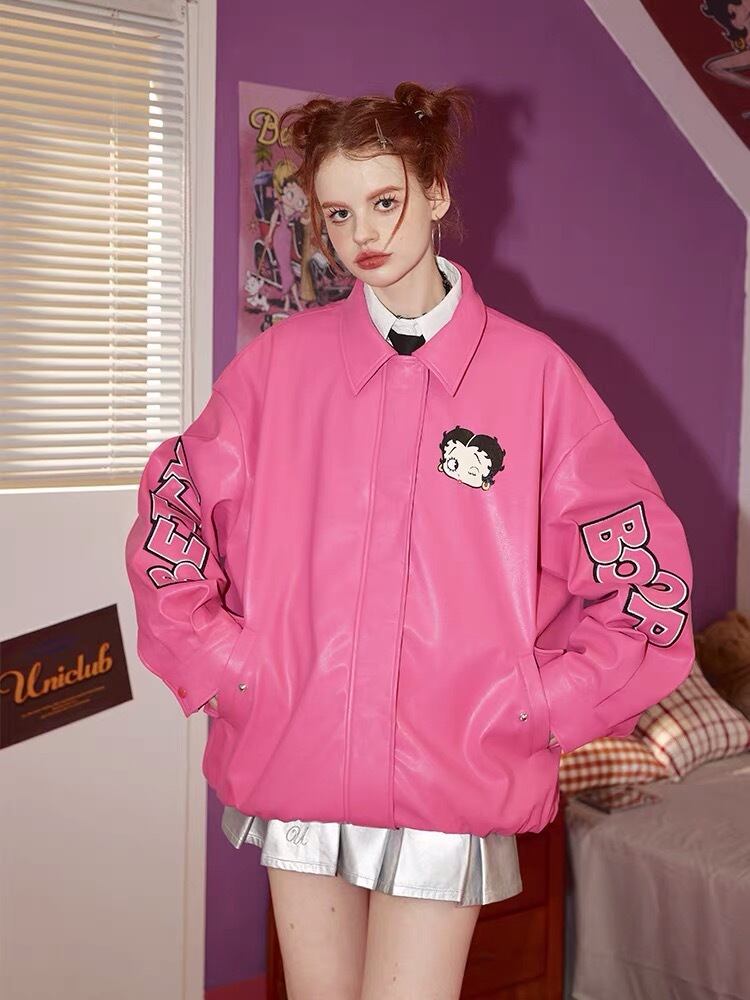 コート レザー ロック カーディガン ピンク アウター ジャケット コート フリース リボン ハート ピンク ゆったり ビッグシルエット オーバーサイズ ガーリー 原宿 渋谷 トップス ブルゾン ハイネック セーター