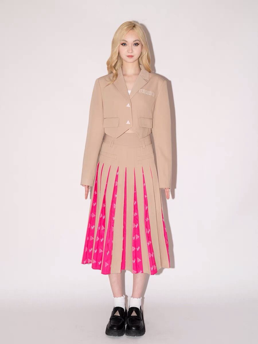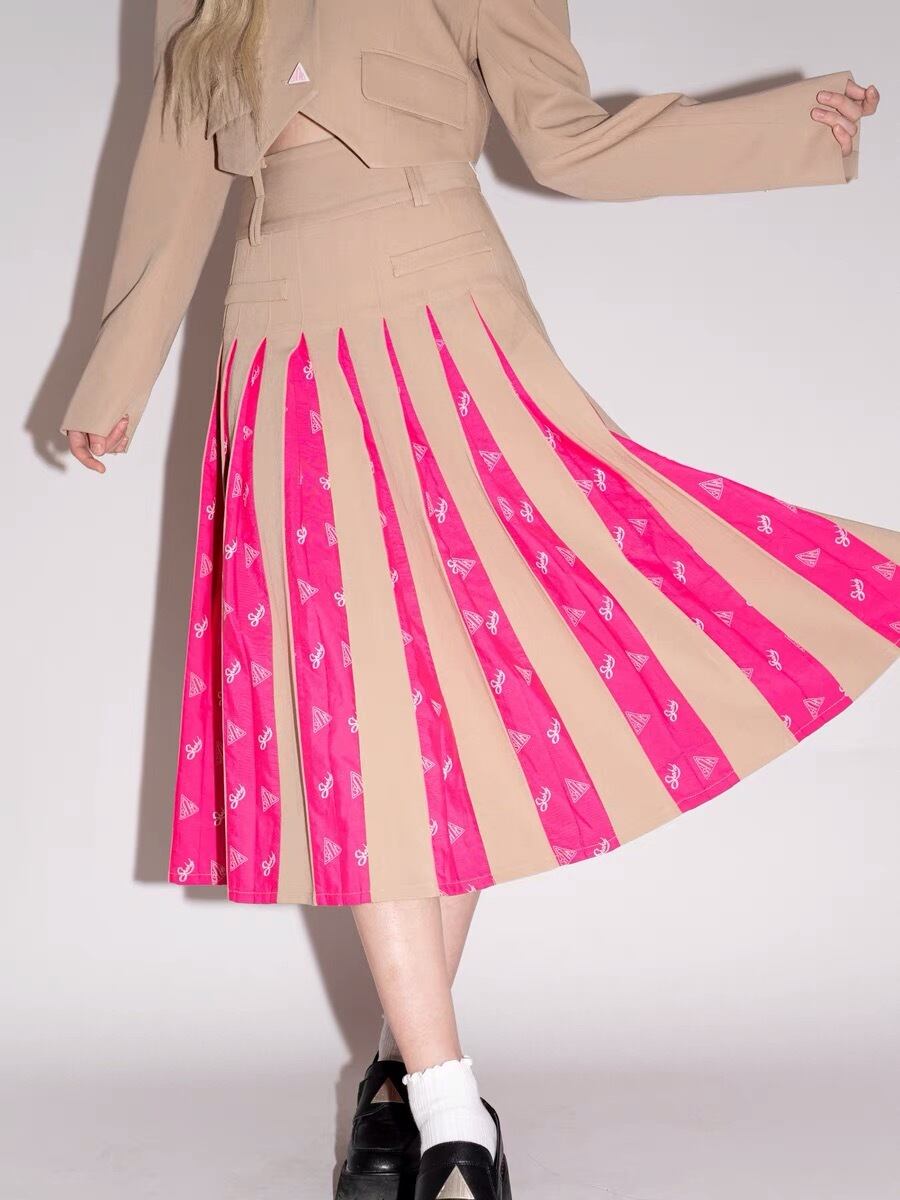 【スカート】ベージュ ピンク プリーツスカート セットアップ スーツ パンツ スウェット カジュアル デニム ストリート ズボン ダメージ 原宿 渋谷 ガーリー スウェット ギャル