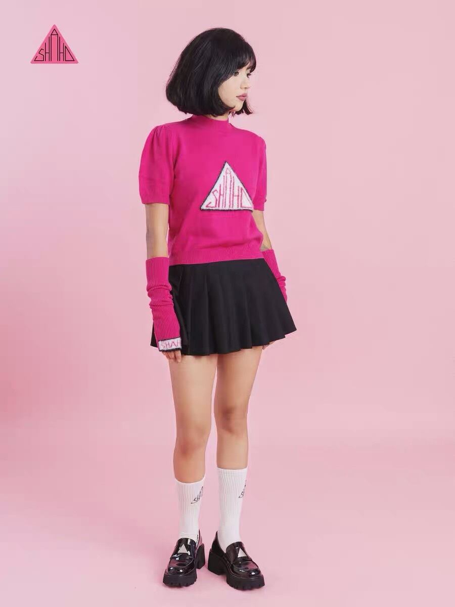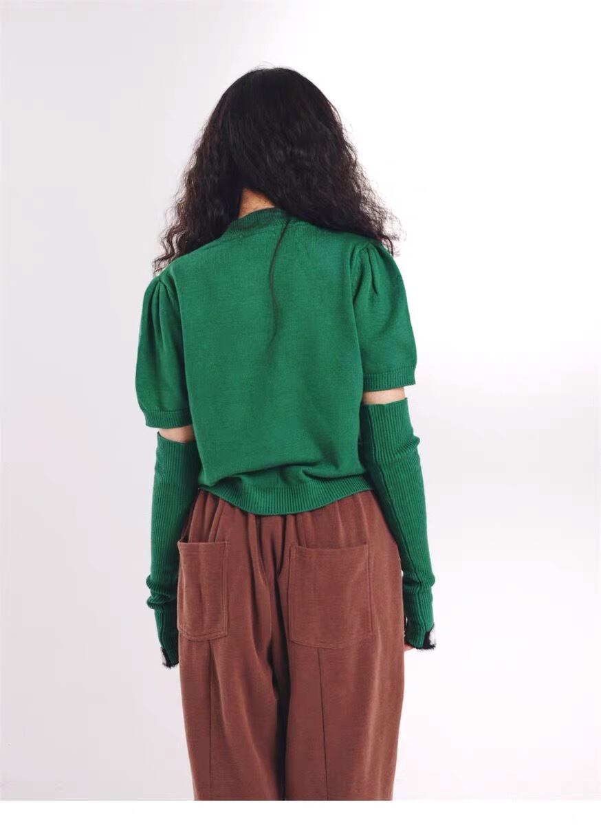 【アームウォーマ付き】セーター ニット 手袋 ピンク 緑 カジュアル Y2K ギャル ダンス ピンク アウター トップス カーディガン ブルゾン スーツ ブラウス トップス アウター コート