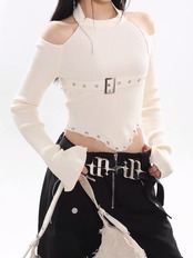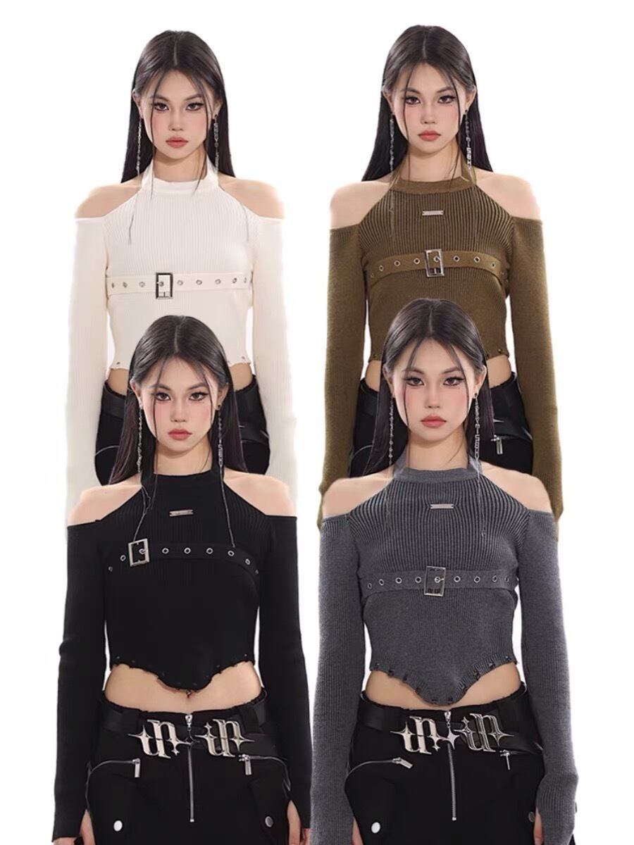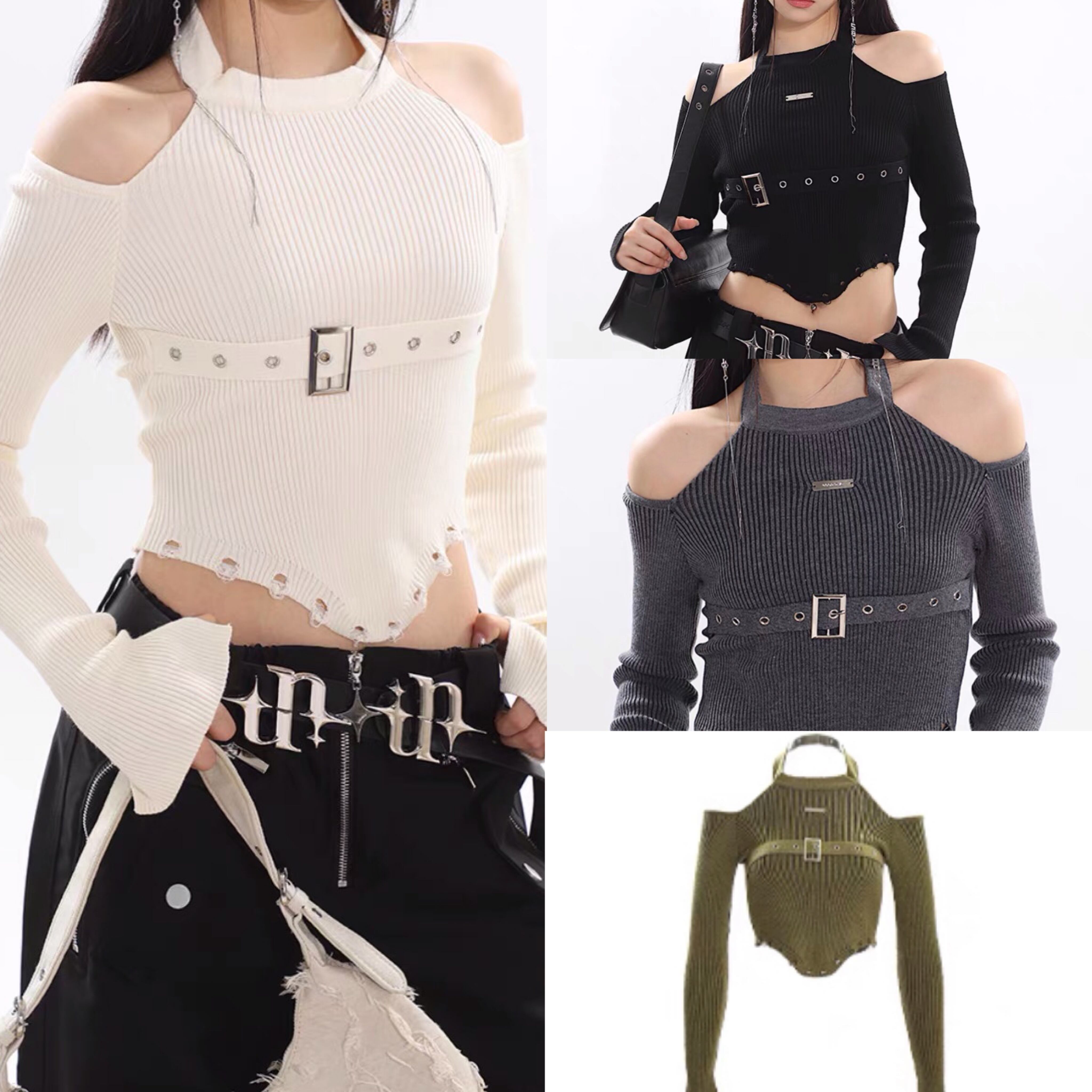 トップス オフショルダー グレー 緑 黒 白 ハイネック ベスト ニット ストリート 原宿 渋谷 黒 ピンク ピンク アウター トップス カーディガン ブルゾン スーツ ブラウス トップス アウター コート セクシー カッコいい