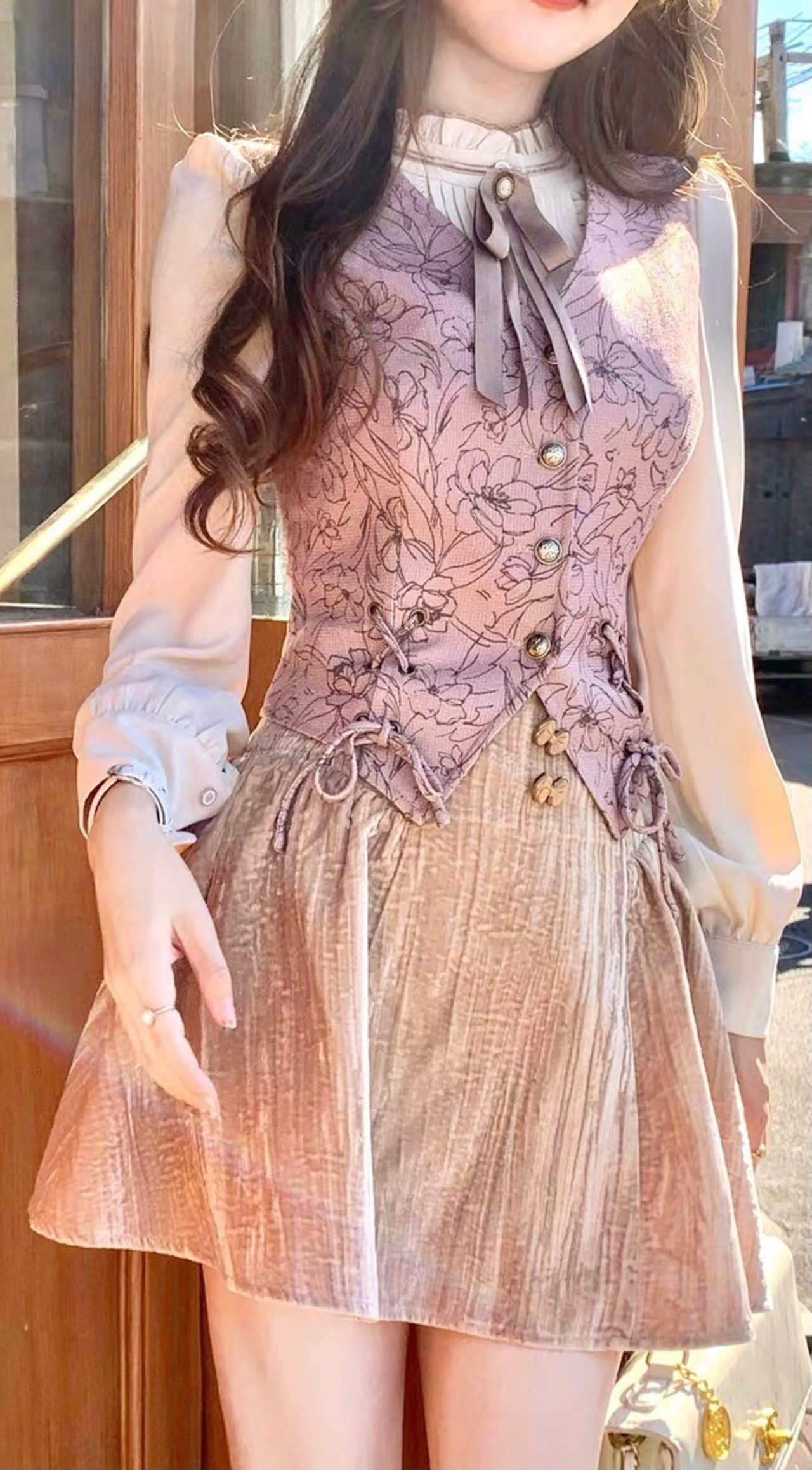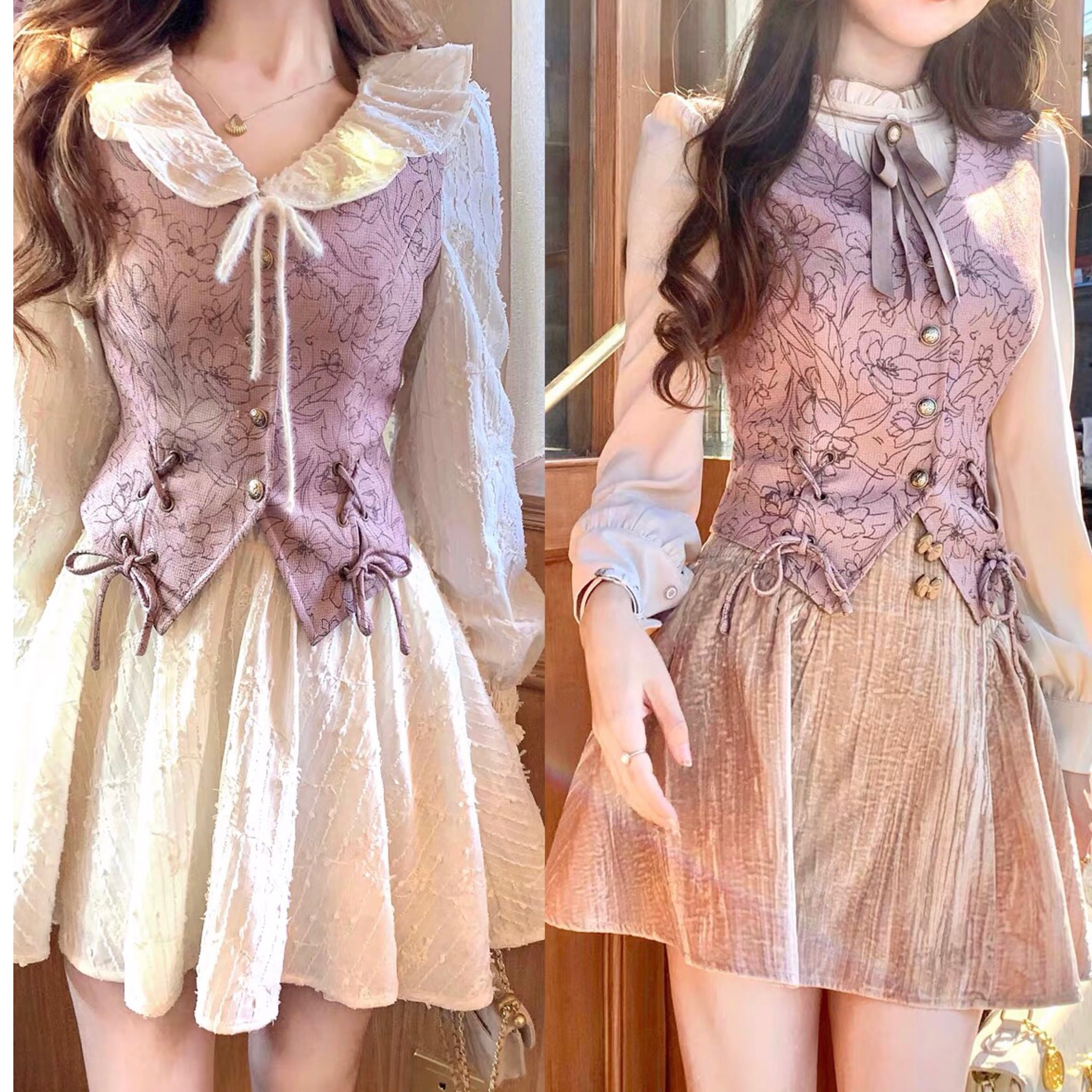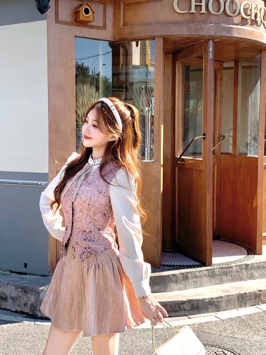ベスト ガーリー お嬢様 ピンク 紫 花柄 リボン ベスト ニット ストリート 原宿 渋谷 黒 ピンク ピンク アウター トップス カーディガン ブルゾン スーツ ブラウス トップス アウター コート
