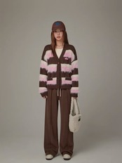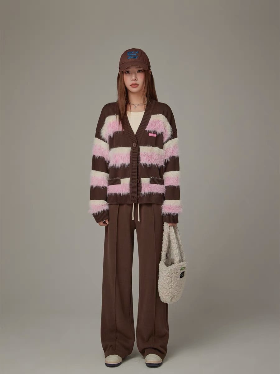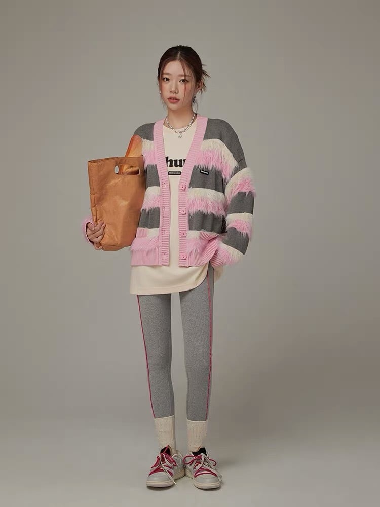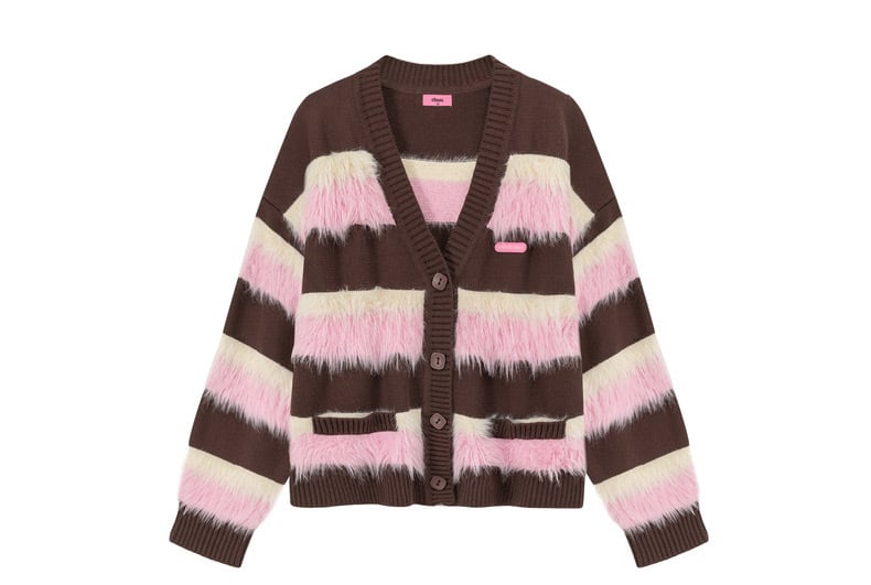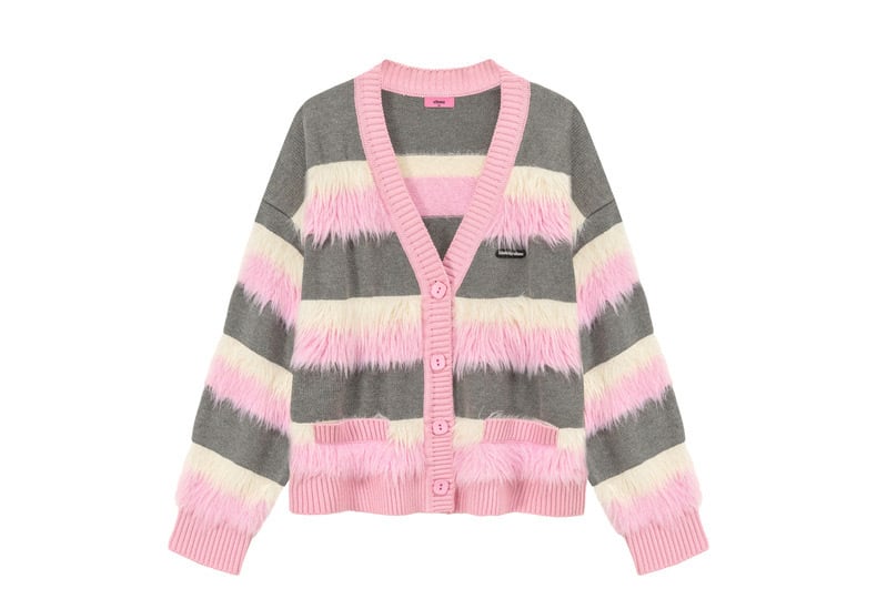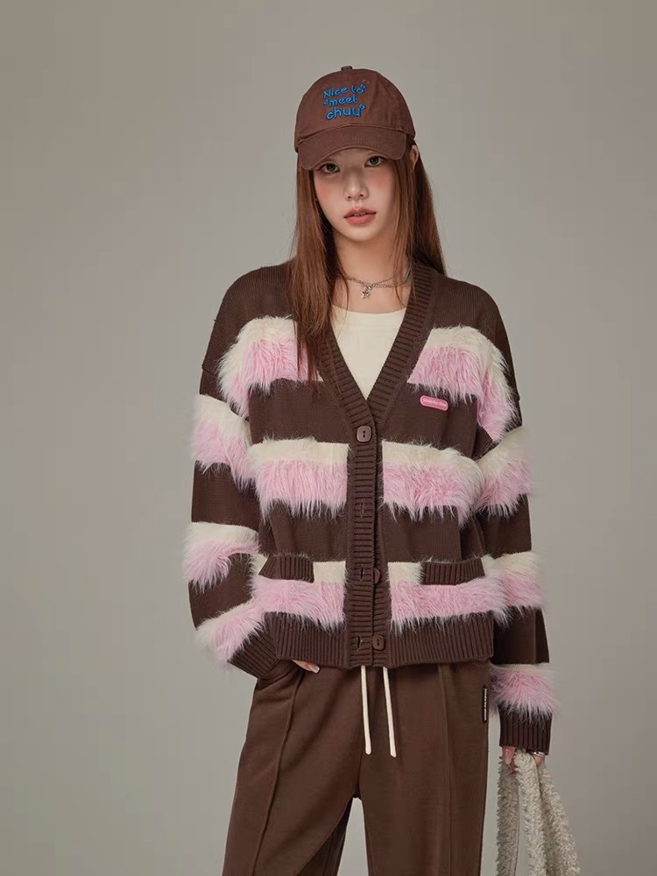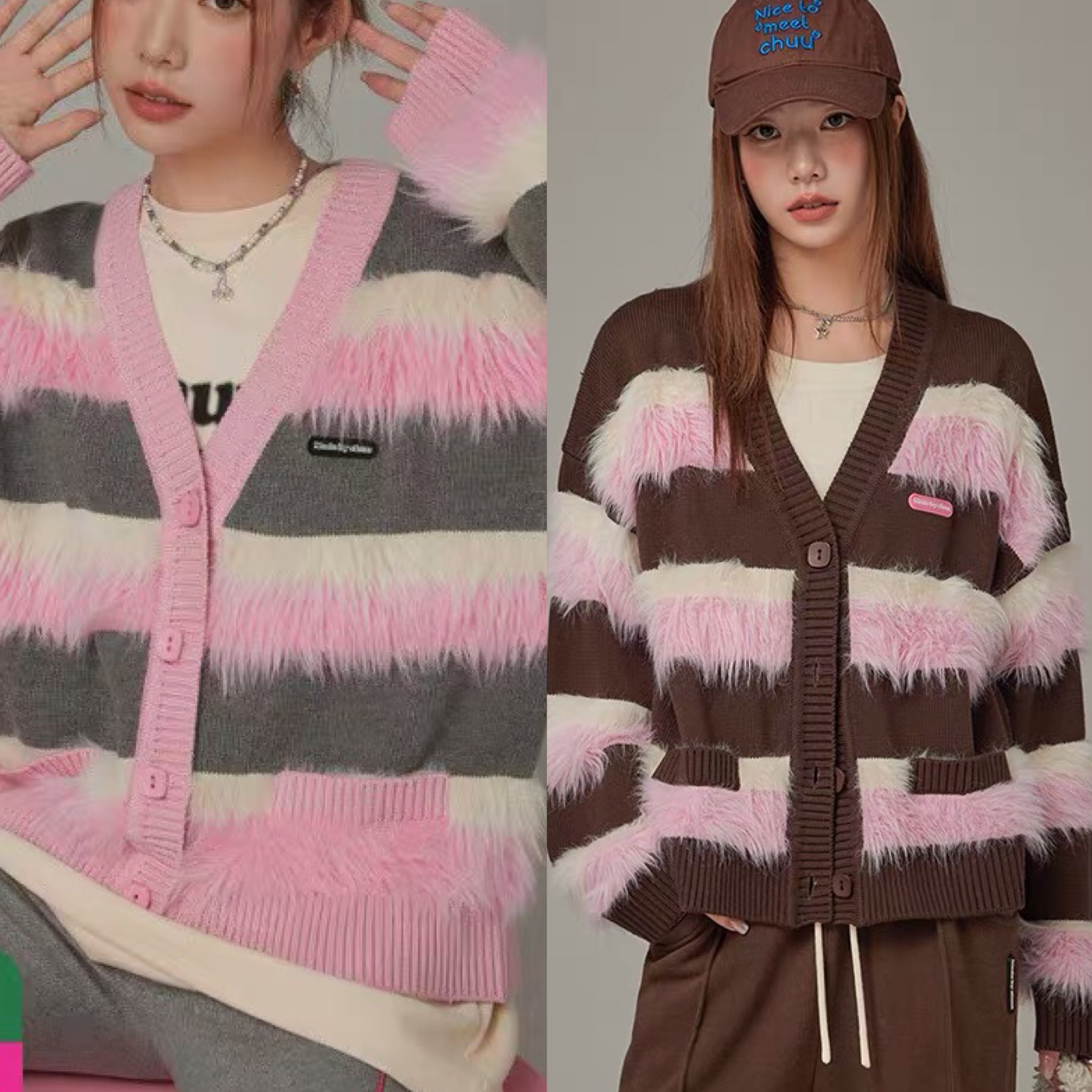 カーディガン ピンク 茶色 ファー グレー ボーダー チェック ベスト ニット ストリート 原宿 渋谷 黒 ピンク ピンク アウター トップス カーディガン ブルゾン スーツ ブラウス トップス アウター コート