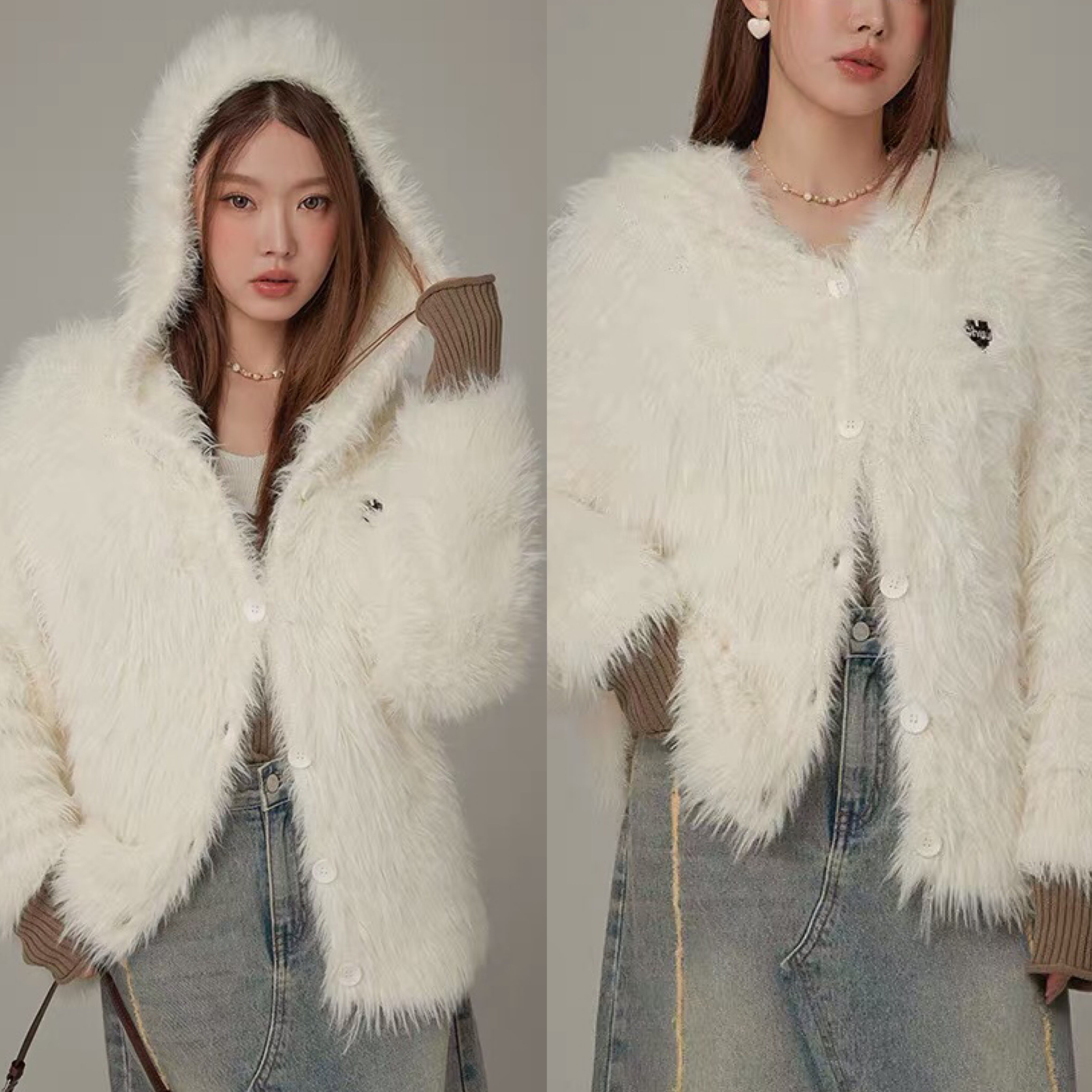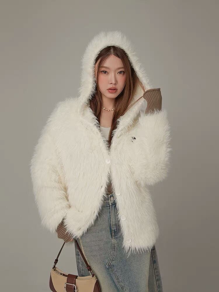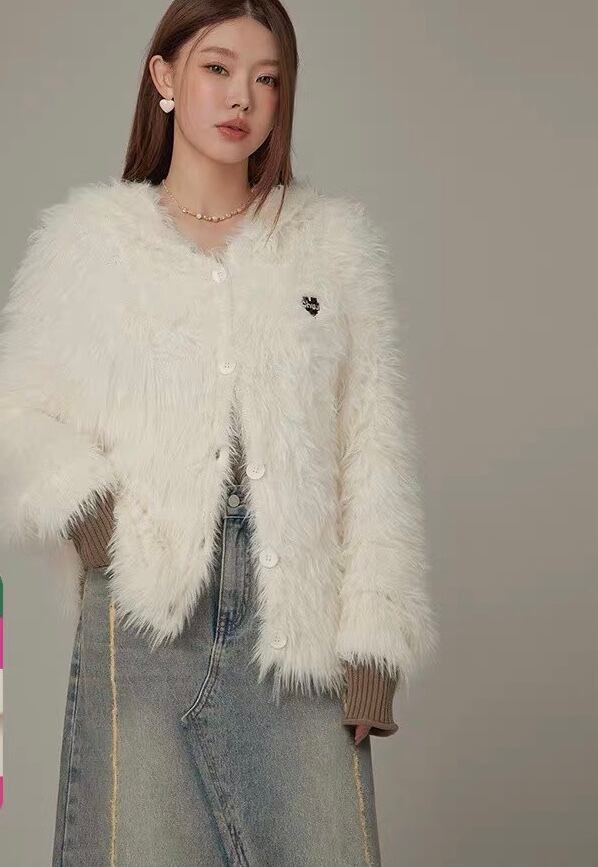 カーディガン パーカー フード ふわふわ エレガント お嬢様 白 ホワイト ベスト ニット ストリート 原宿 渋谷 黒 ピンク ピンク アウター トップス カーディガン ブルゾン スーツ ブラウス トップス アウター コート