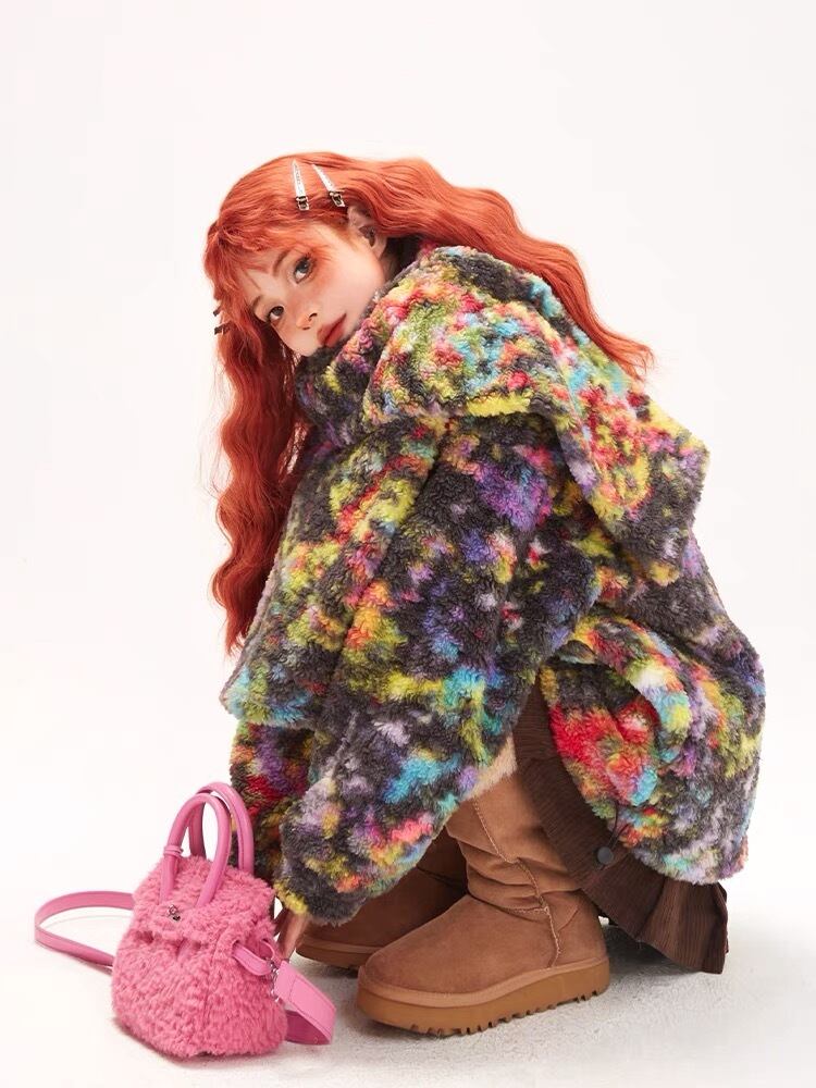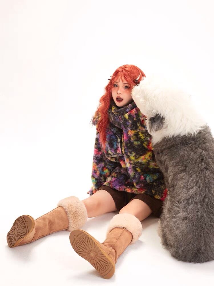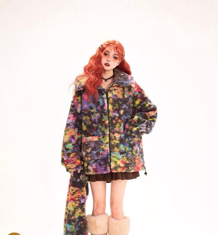 ジャケット カラフル フリース パーカー スウェット グラデーション オレンジ 紫 黄色 ベスト ニット ストリート 原宿 渋谷 黒 ピンク ピンク アウター トップス カーディガン ブルゾン スーツ ブラウス トップス アウター コート ギャル