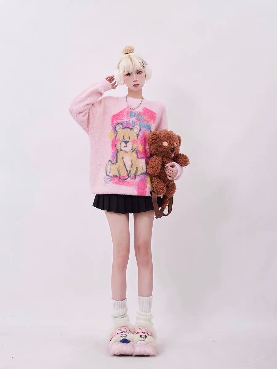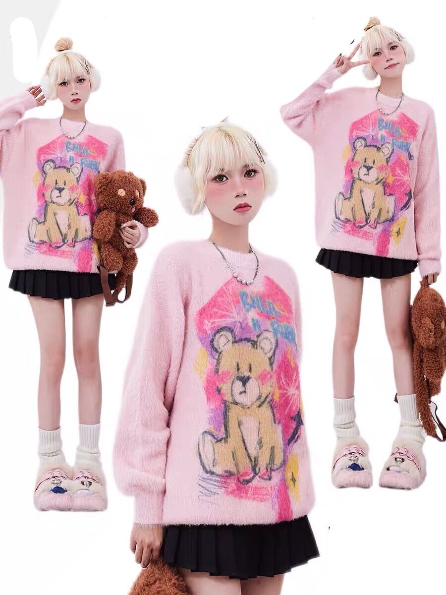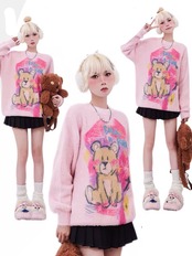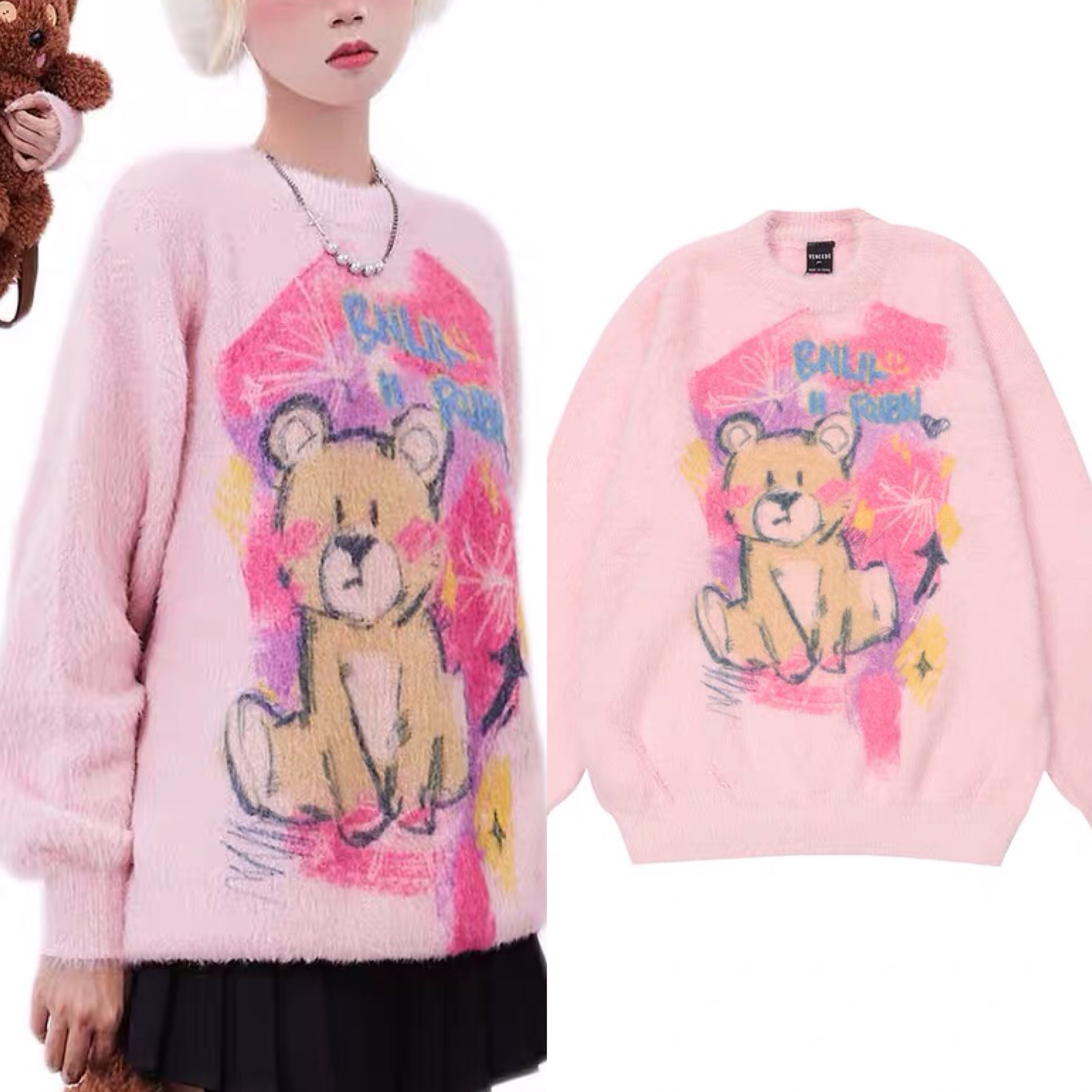 セーター くま ピンク カーディガン ガーリー 姫 スウェット パーカー トレーナー ニット ベスト ニット ストリート 原宿 渋谷 黒 ピンク ピンク アウター トップス カーディガン ブルゾン スーツ ブラウス トップス アウター コート