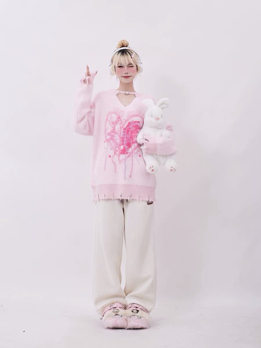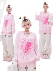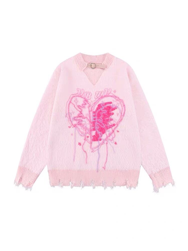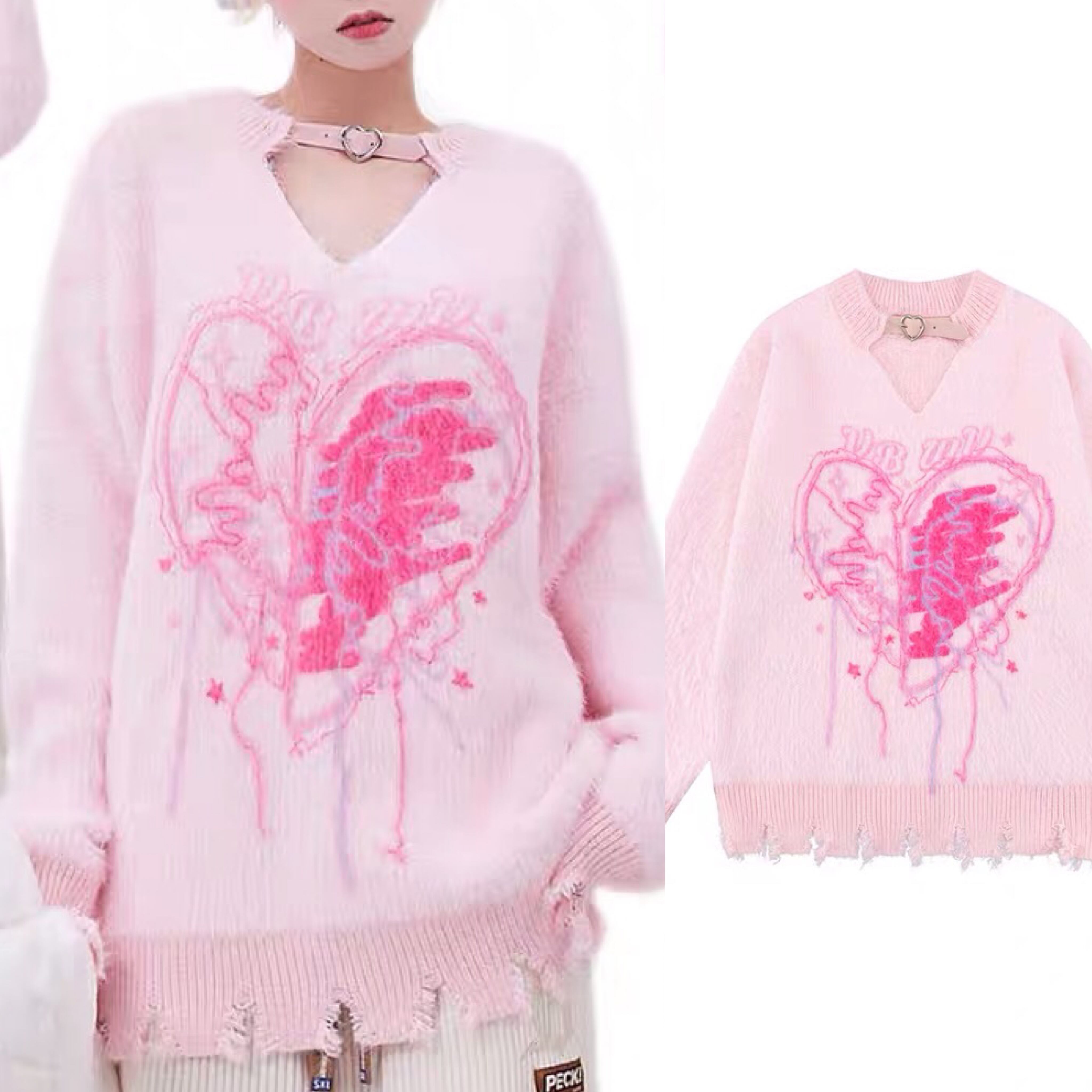 セーター ピンク ニット ハート カジュアル パーカー トレーナー ベスト ニット ストリート 原宿 渋谷 黒 ピンク ピンク アウター トップス カーディガン ブルゾン スーツ ブラウス トップス アウター コート