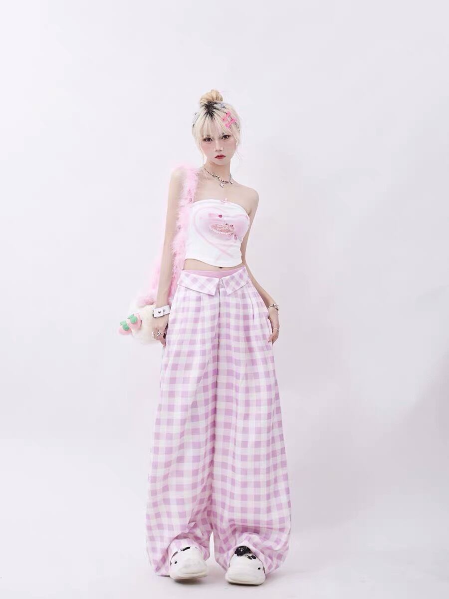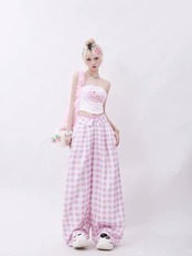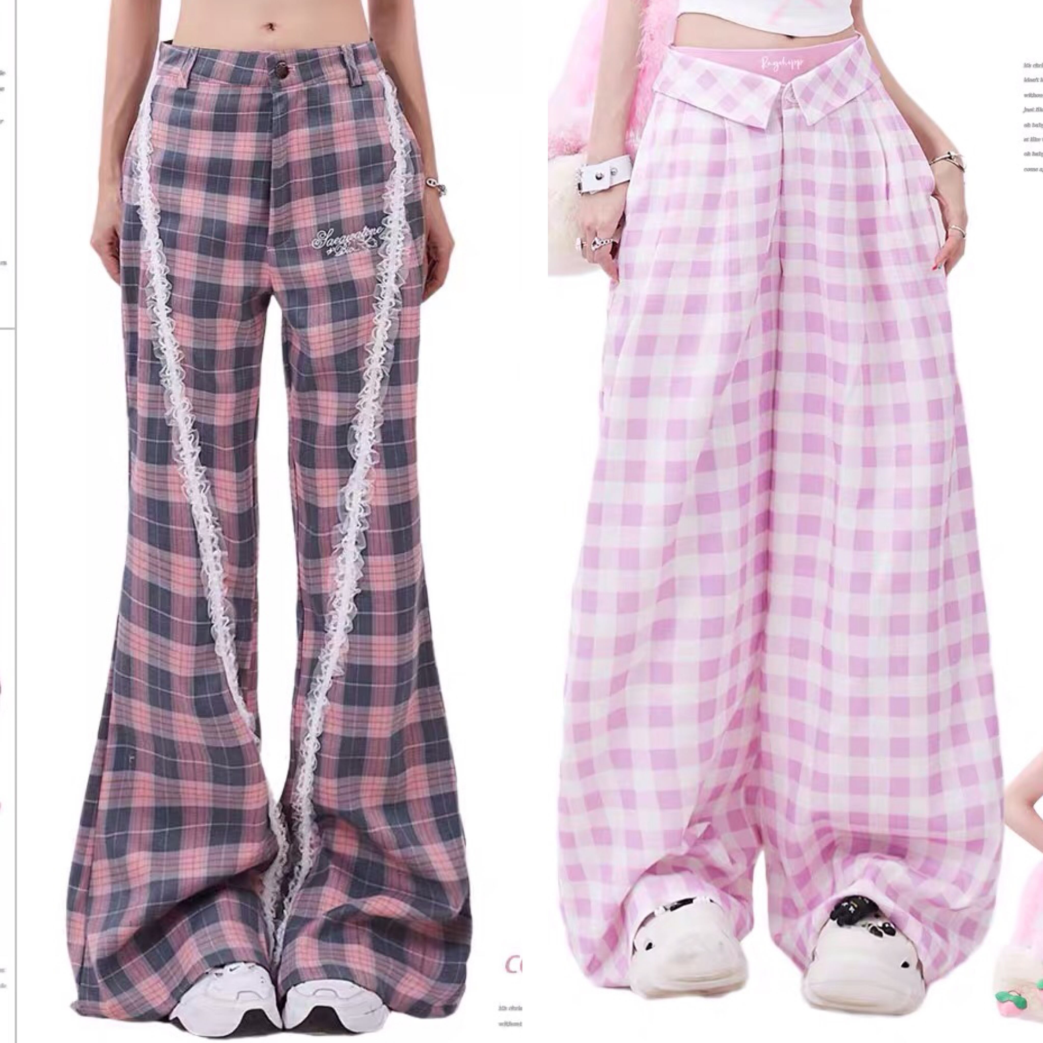 パンツ チェック ダンス グレー ピンク パンツ スウェット カジュアル デニム ストリート ズボン ダメージ 原宿 渋谷 ガーリー スウェット ギャル