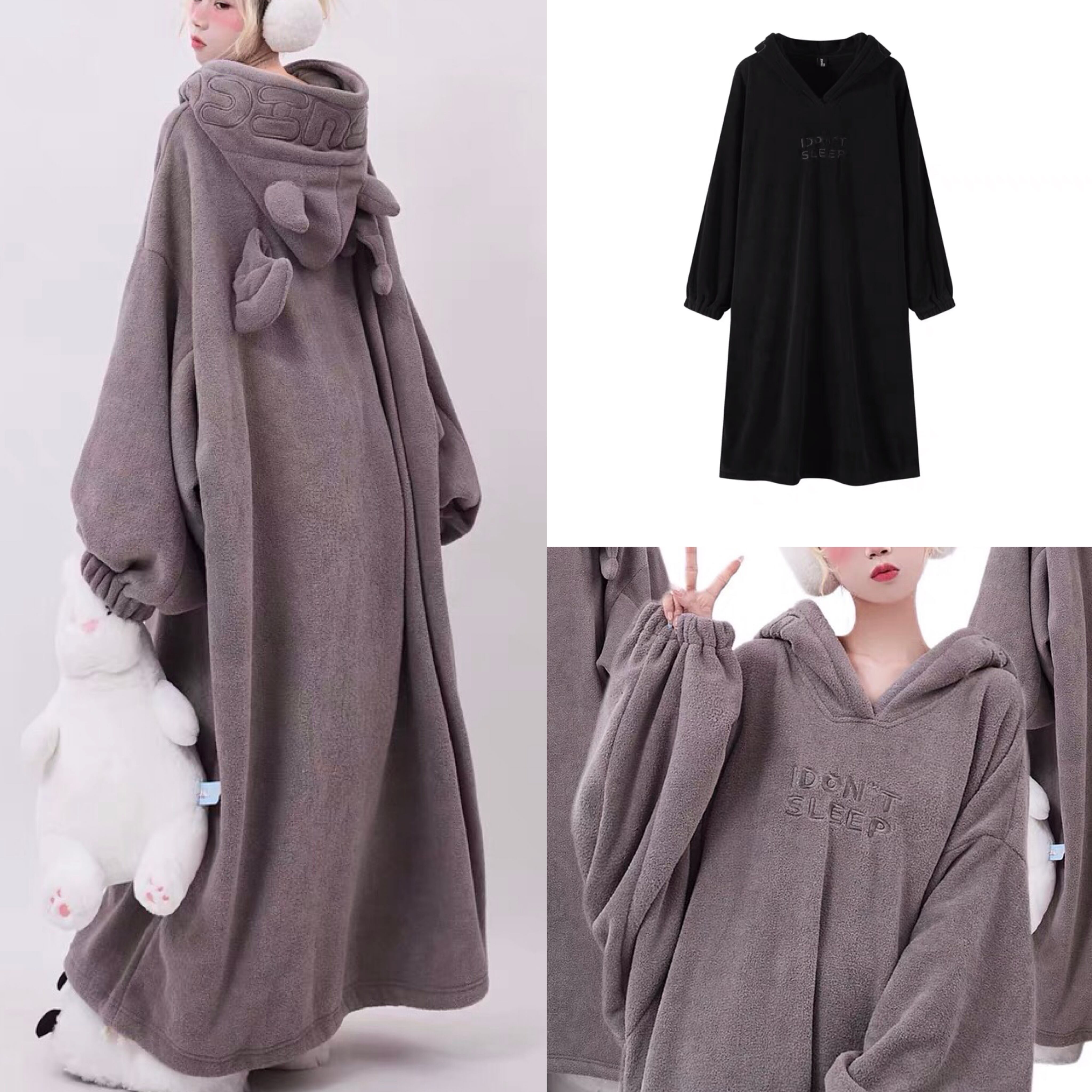 ワンピース グレー ワンピース フリース マキシ ロング オーバーサイズ ビッグシルエット ピンク パーカー トレーナー スウェット ルームウェア パジャマ ストリート ガーリー かわいい 原宿 渋谷