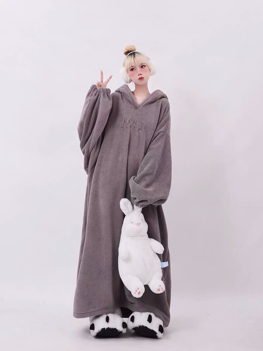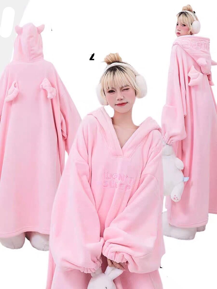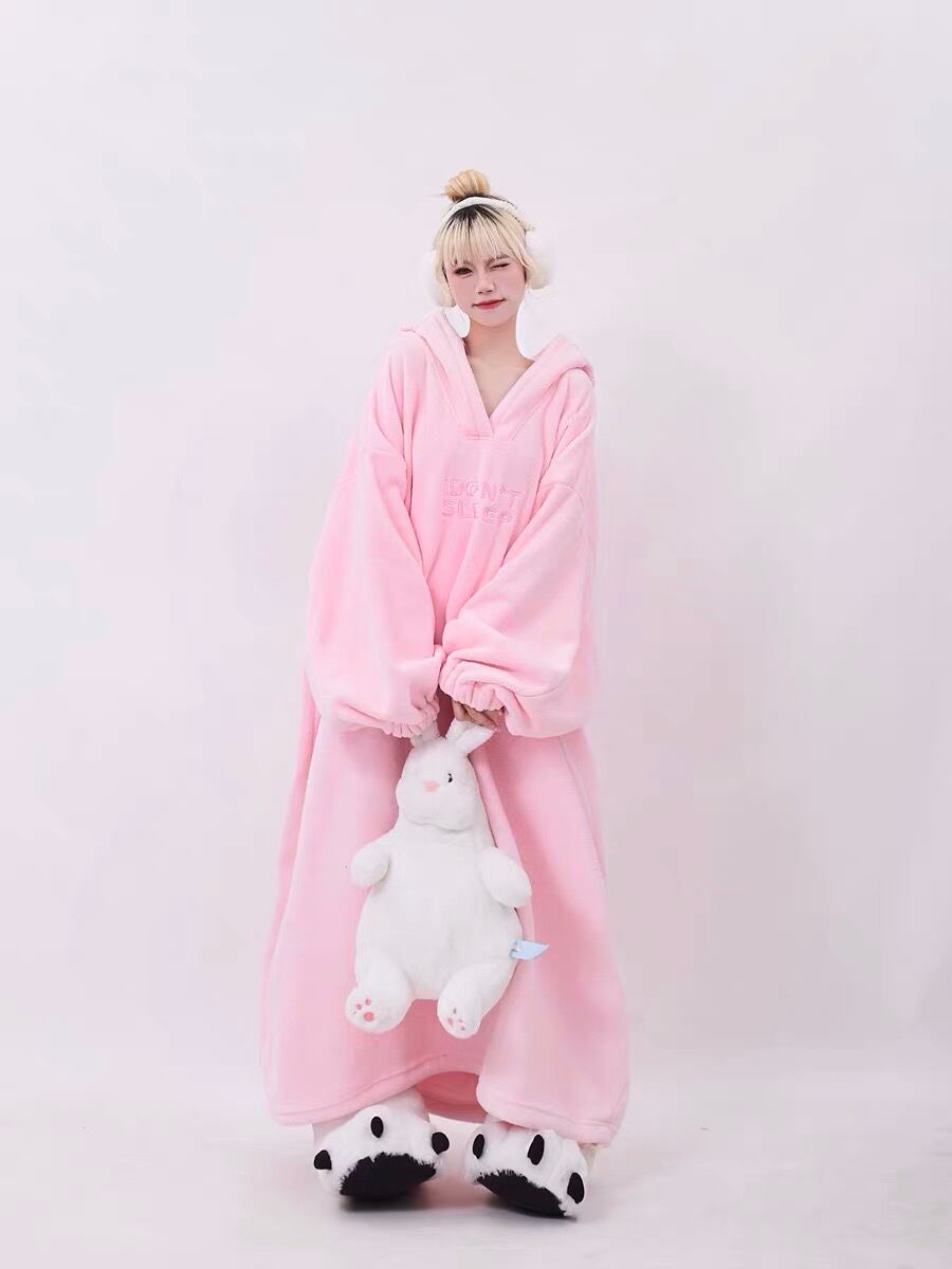 ワンピース フリース マキシ ロング オーバーサイズ ビッグシルエット ピンク パーカー トレーナー スウェット ルームウェア パジャマ ストリート ガーリー かわいい 原宿 渋谷