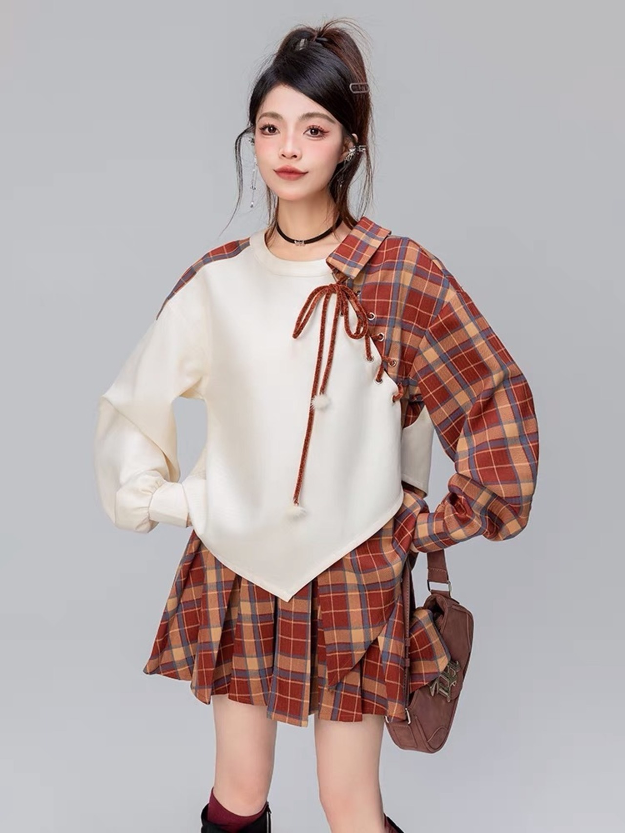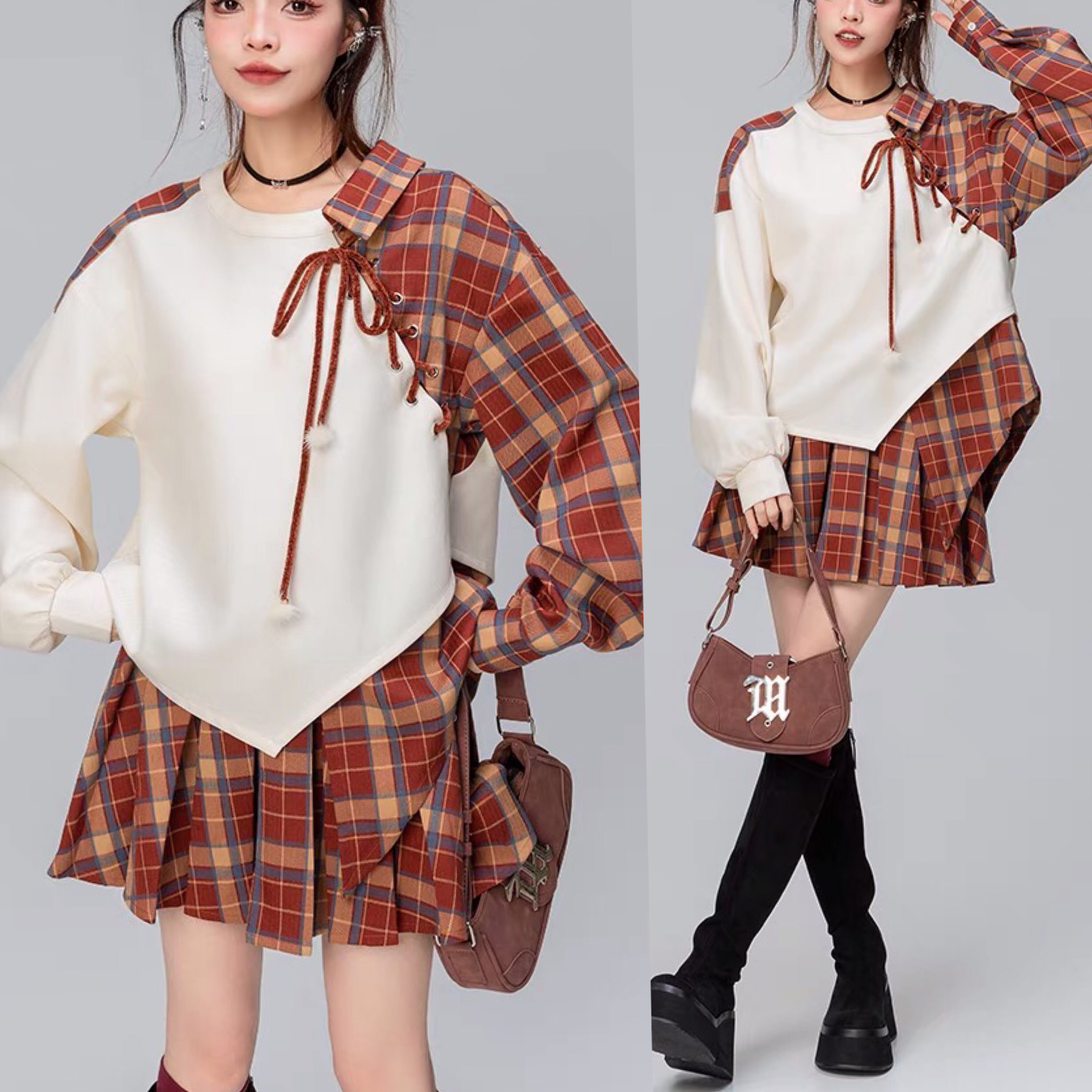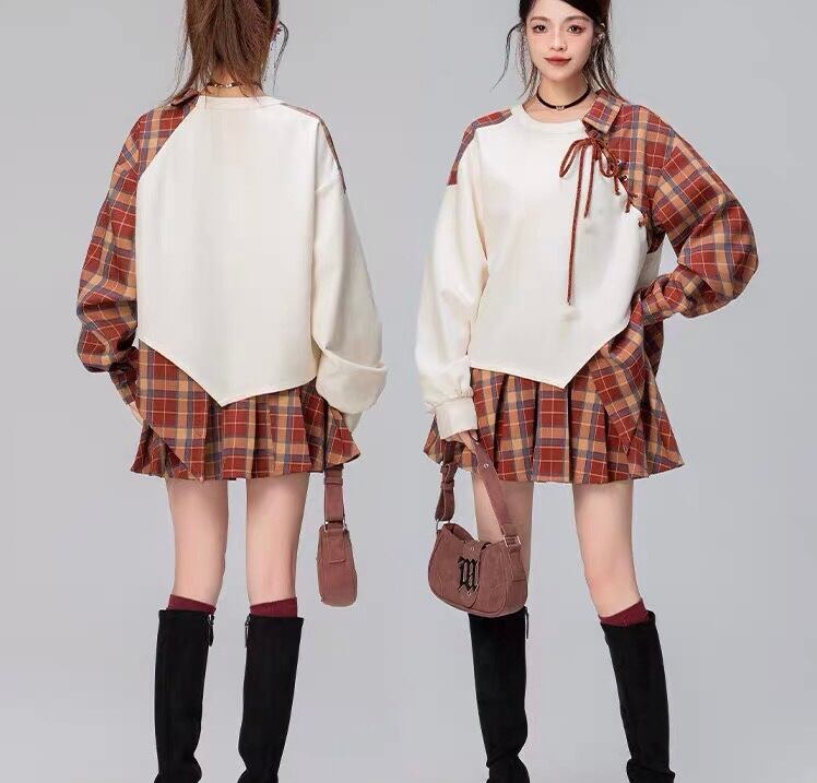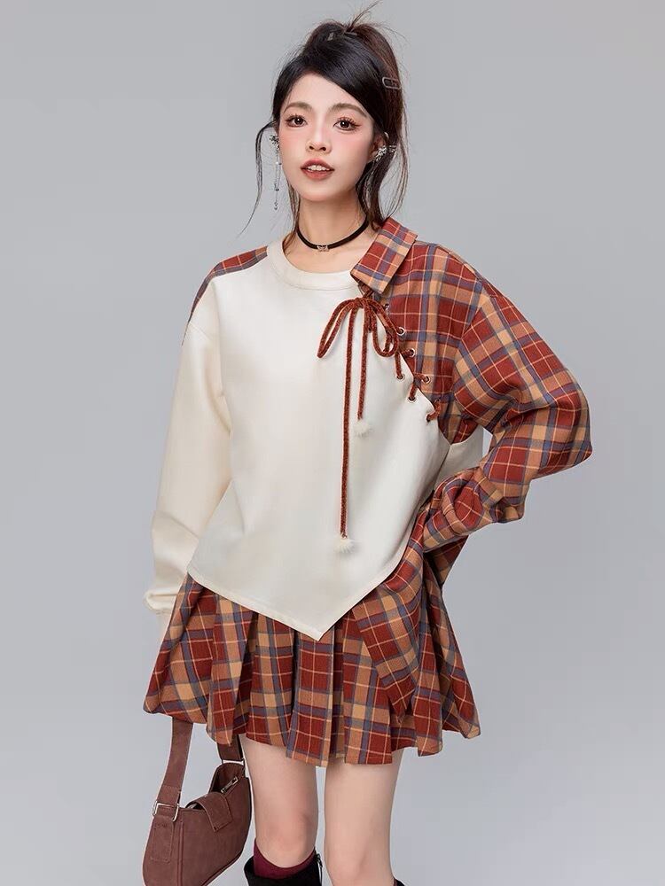 【トップス】チェック 赤 茶色 リボン アウター ジャケット ブルゾン カーディガン トレーナー スウェット ガーリー 姫 可愛い ミニ リボン プリーツ プリーツ レザー ガーリー ロリータ 原宿 渋谷