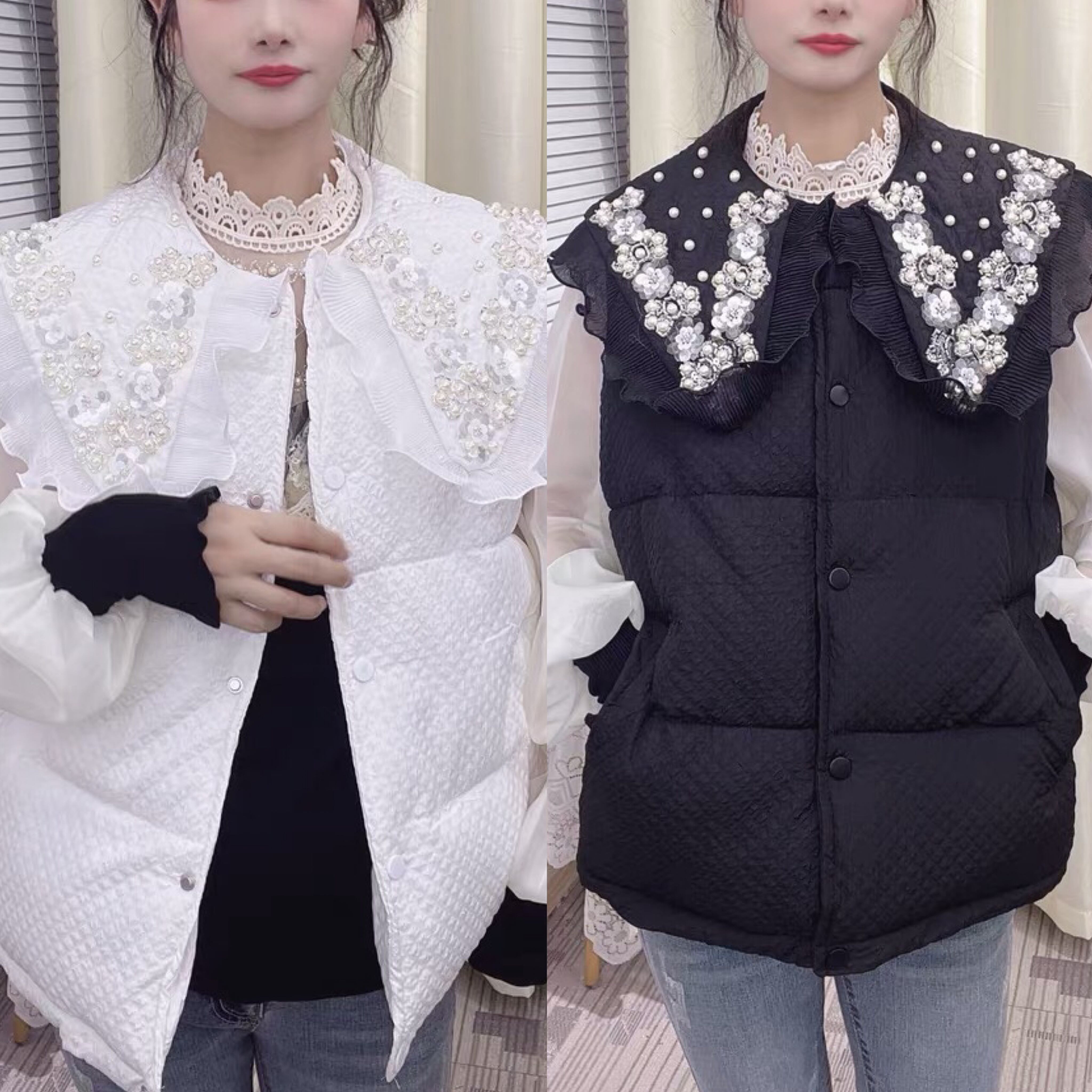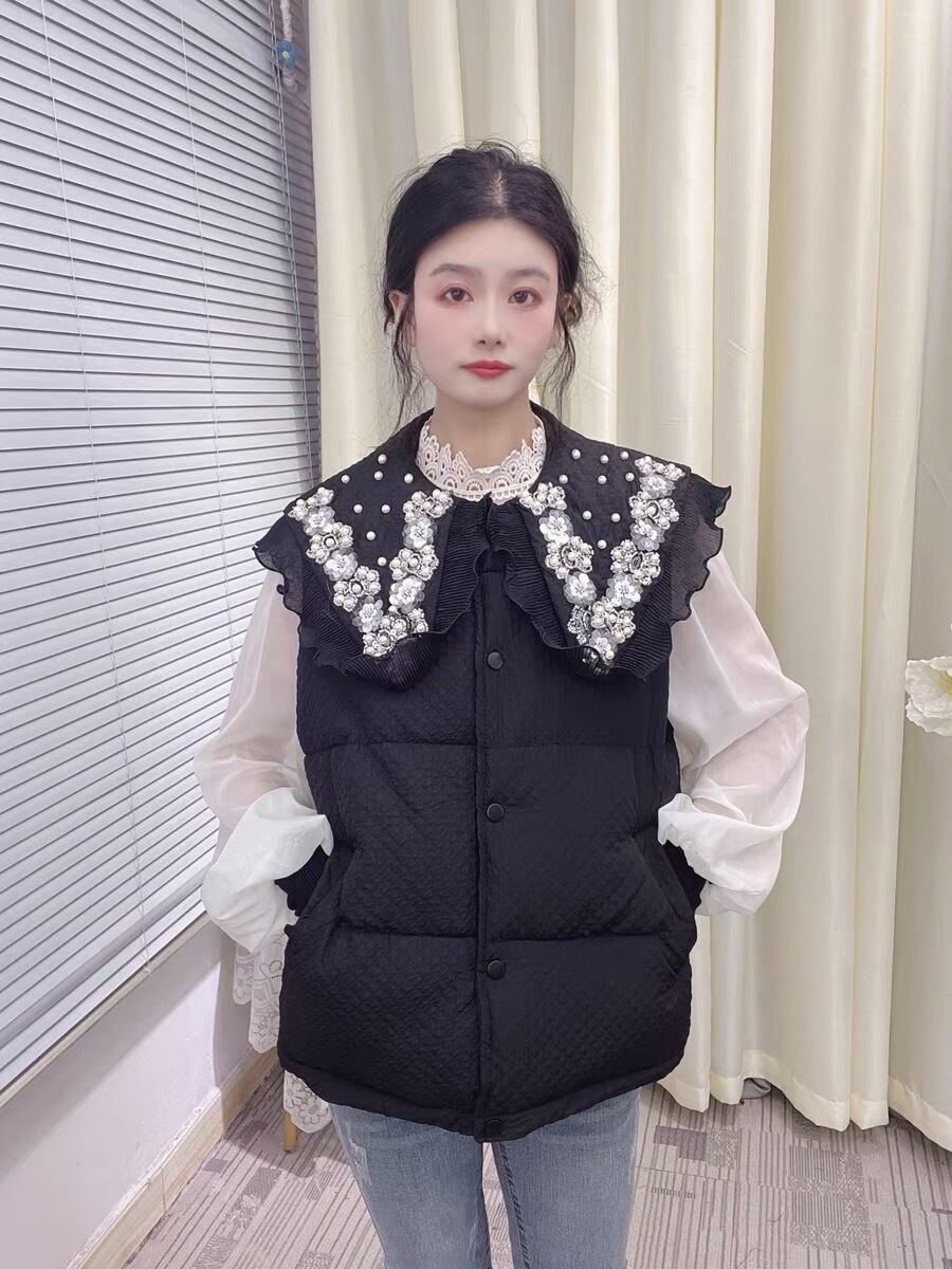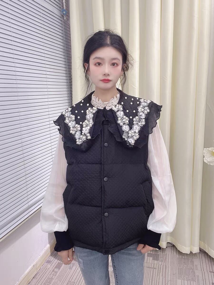 コート 襟 ダウンコート ベスト 黒 白 コート シンプル デコレーション 白 黒 フリル チェック 赤 茶色 アウター ジャケット ブルゾン カーディガン トレーナー スウェット ガーリー 姫 可愛い ミニ リボン プリーツ プリーツ レザー ガーリー ロリータ 原宿 渋谷 リボン 襟 ブラウス