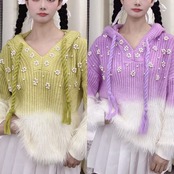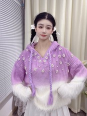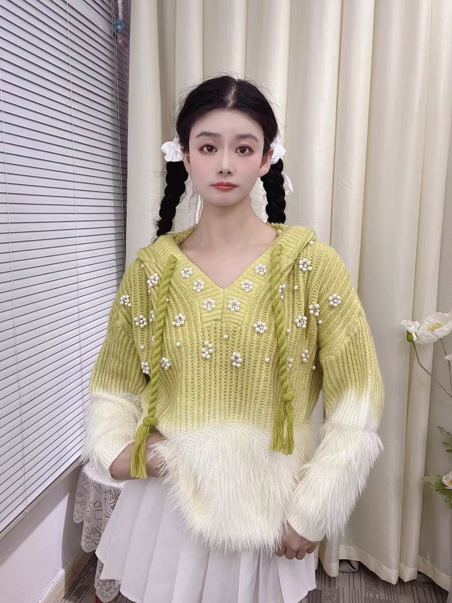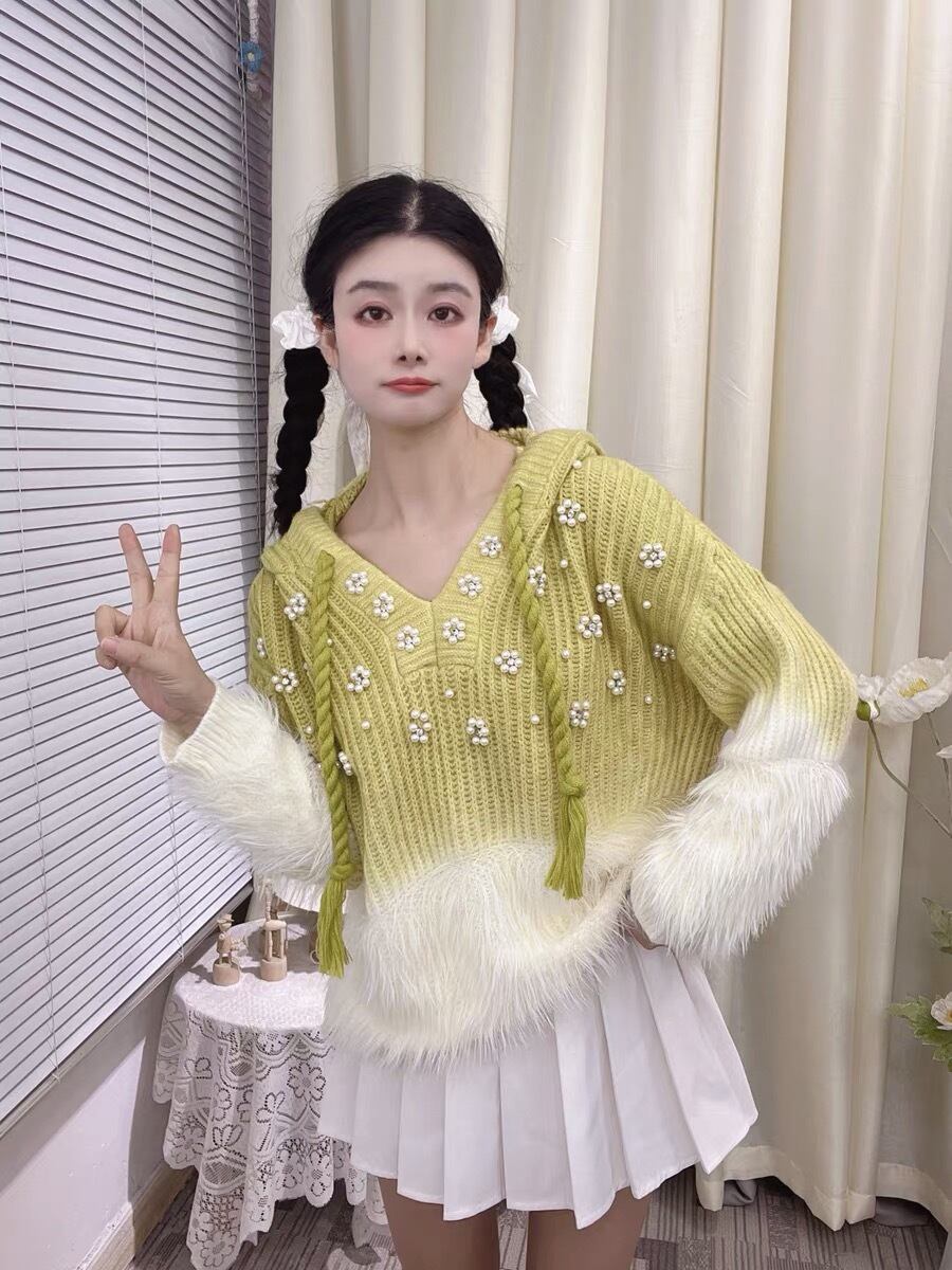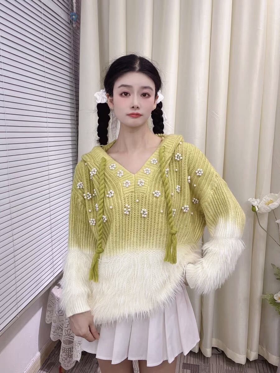 セーター グラデーション 紫 緑 黄色 パーカー コート シンプル デコレーション 白 黒 フリル チェック 赤 茶色 アウター ジャケット ブルゾン カーディガン トレーナー スウェット ガーリー 姫 可愛い ミニ リボン プリーツ プリーツ レザー ガーリー ロリータ 原宿 渋谷 リボン 襟 ニット セーター 白 パール