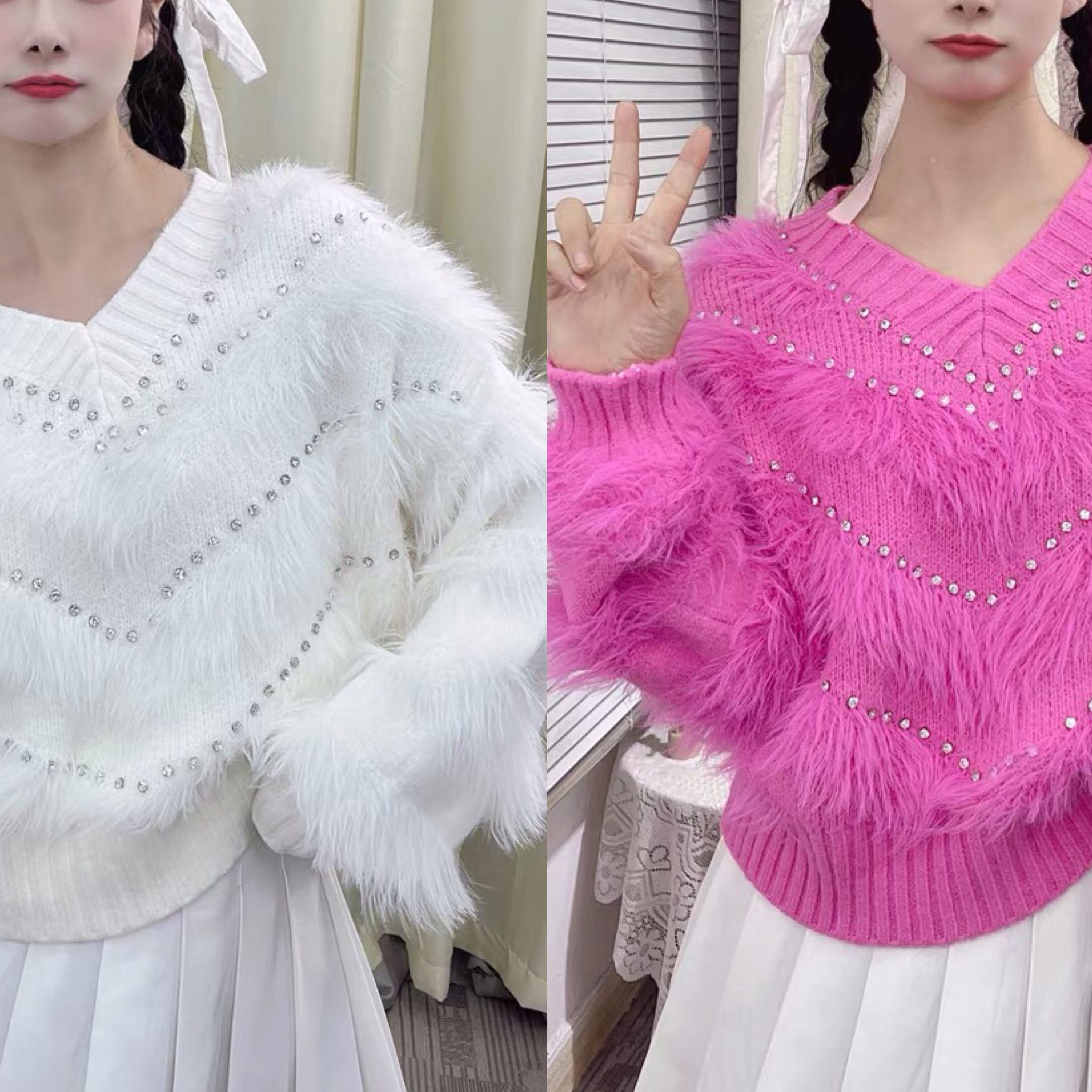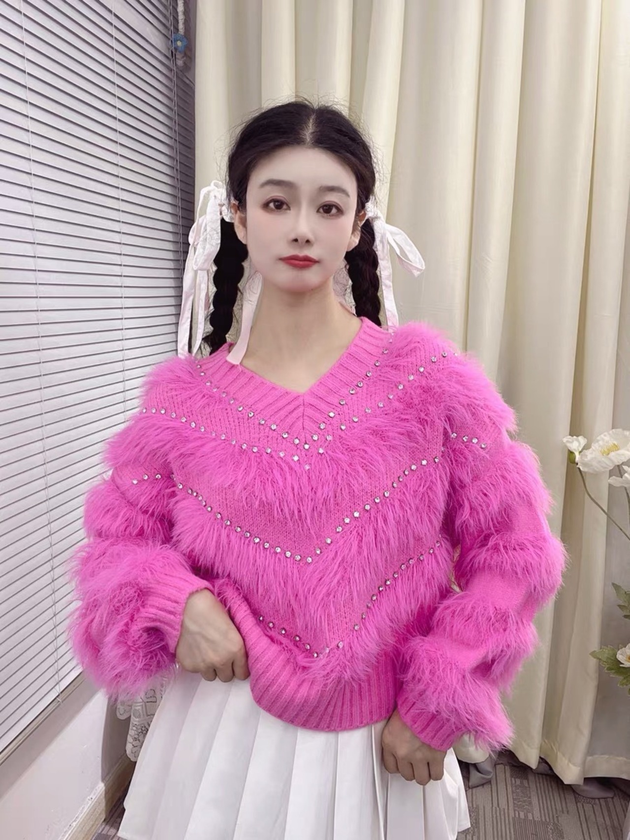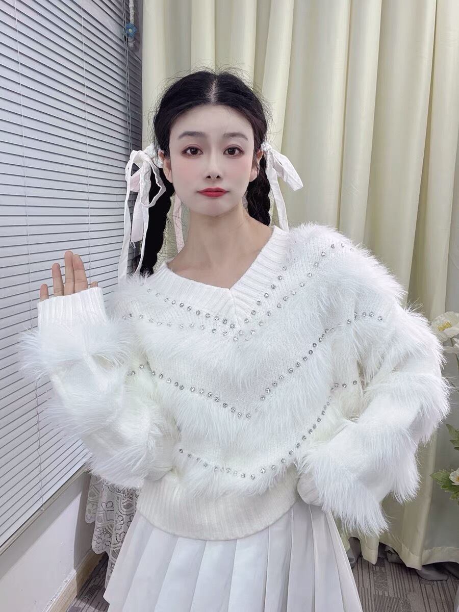トップス ニット セーター ピンク 白 ファー 羽根 コート シンプル デコレーション 白 黒 フリル チェック 赤 茶色 アウター ジャケット ブルゾン カーディガン トレーナー スウェット ガーリー 姫 可愛い ミニ リボン プリーツ プリーツ レザー ガーリー ロリータ 原宿 渋谷 リボン 襟 カーディガン