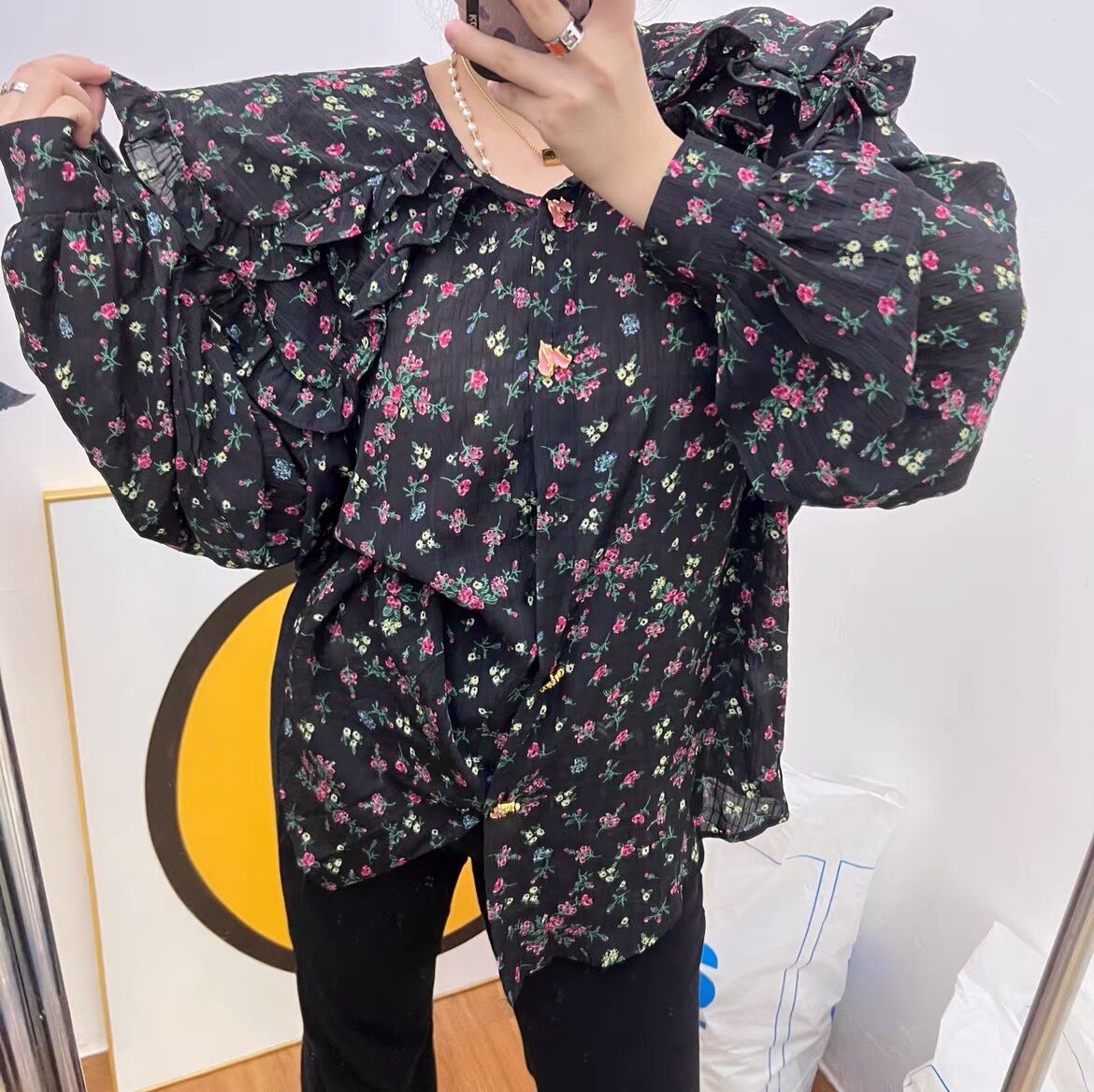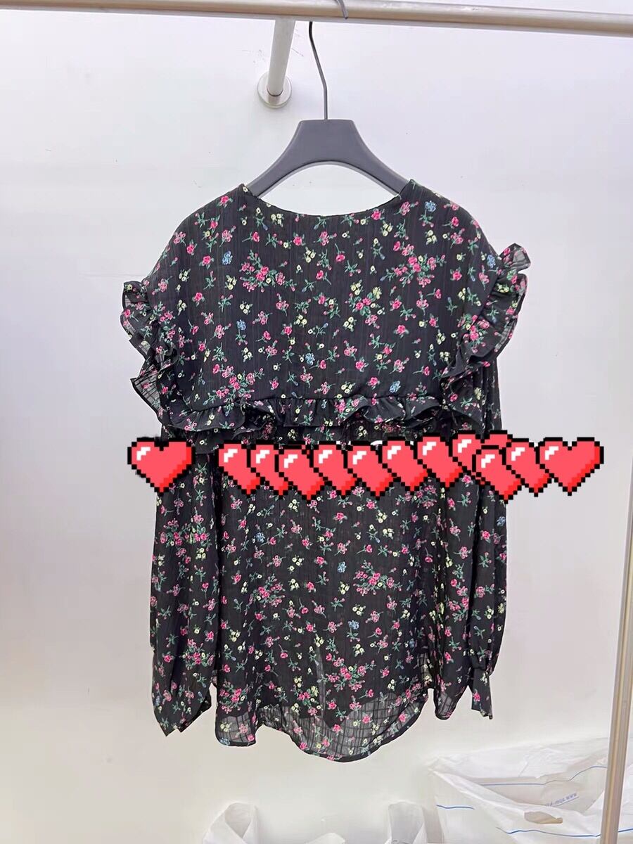 ブラウス 黒 でか襟 花柄 フラワー カジュアル トップス シャツ コート シンプル デコレーション 白 黒 フリル チェック 赤 茶色 アウター ジャケット ブルゾン カーディガン トレーナー スウェット ガーリー 姫 可愛い ミニ リボン プリーツ プリーツ レザー ガーリー ロリータ 原宿 渋谷 リボン 襟