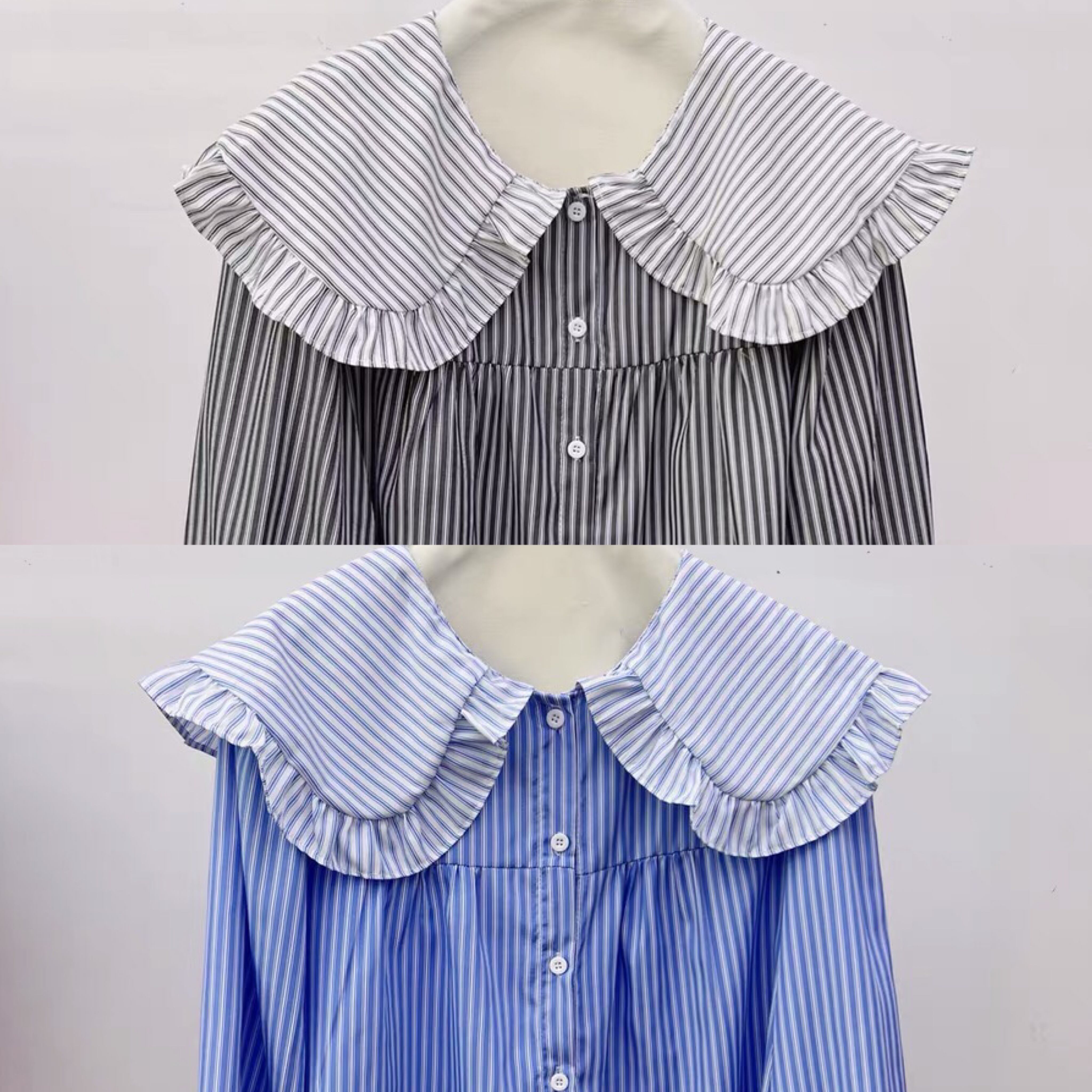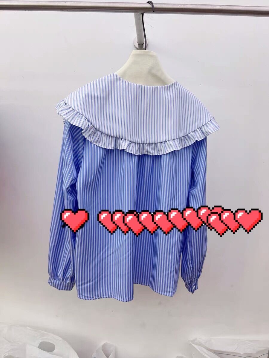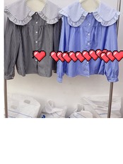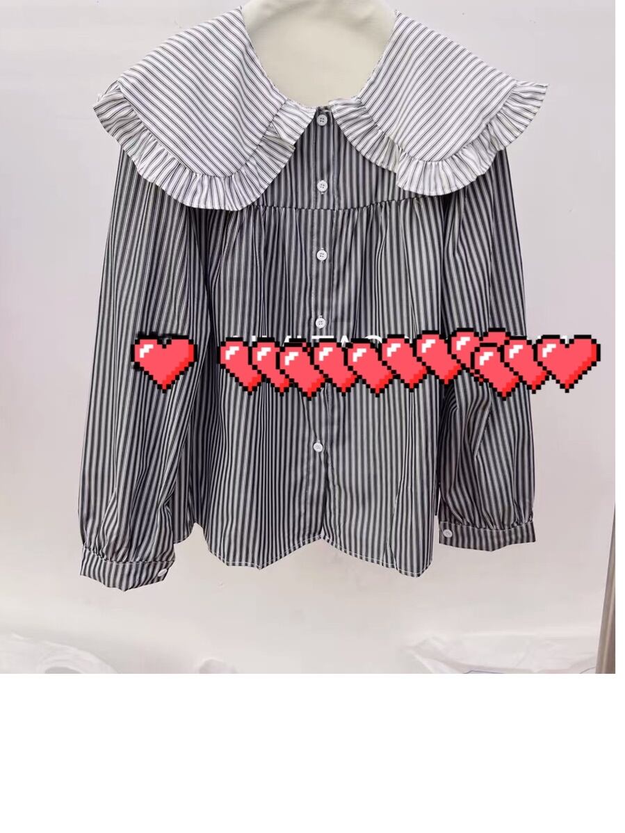 ブラウス 黒 水色 チェック ボーダー 丸襟 カジュアル シャツ トップス コート シンプル デコレーション 白 黒 フリル チェック 赤 茶色 アウター ジャケット ブルゾン カーディガン トレーナー スウェット ガーリー 姫 可愛い ミニ リボン プリーツ プリーツ レザー ガーリー ロリータ 原宿 渋谷 リボン 襟