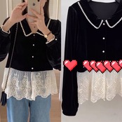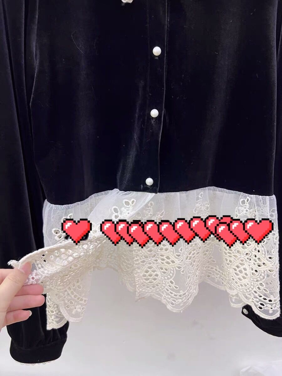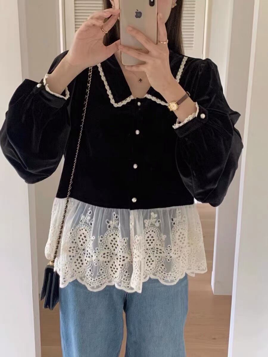 ブラウス 黒 パール フリル レース ベルベット ベロア コート シンプル デコレーション 白 黒 フリル チェック 赤 茶色 アウター ジャケット ブルゾン カーディガン トレーナー スウェット ガーリー 姫 可愛い ミニ リボン プリーツ プリーツ レザー ガーリー ロリータ 原宿 渋谷 リボン 襟 シャツ カーディガン
