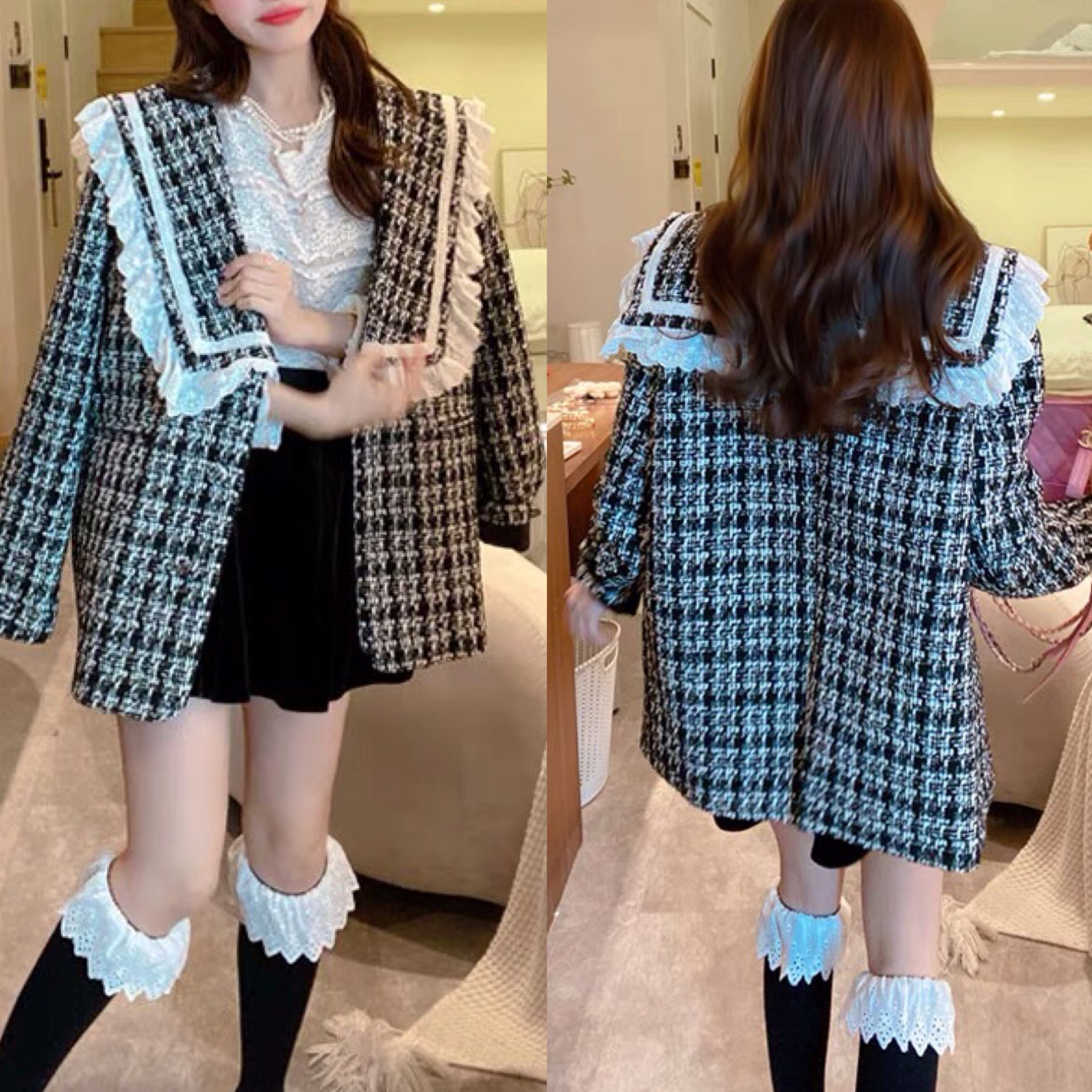 コート スクール チェック 襟 ガーリー ジャケット アウター コート 黒 コート シンプル デコレーション 白 黒 フリル チェック 赤 茶色 アウター ジャケット ブルゾン カーディガン トレーナー スウェット ガーリー 姫 可愛い ミニ リボン プリーツ プリーツ レザー ガーリー ロリータ 原宿 渋谷 リボン 襟 お嬢様