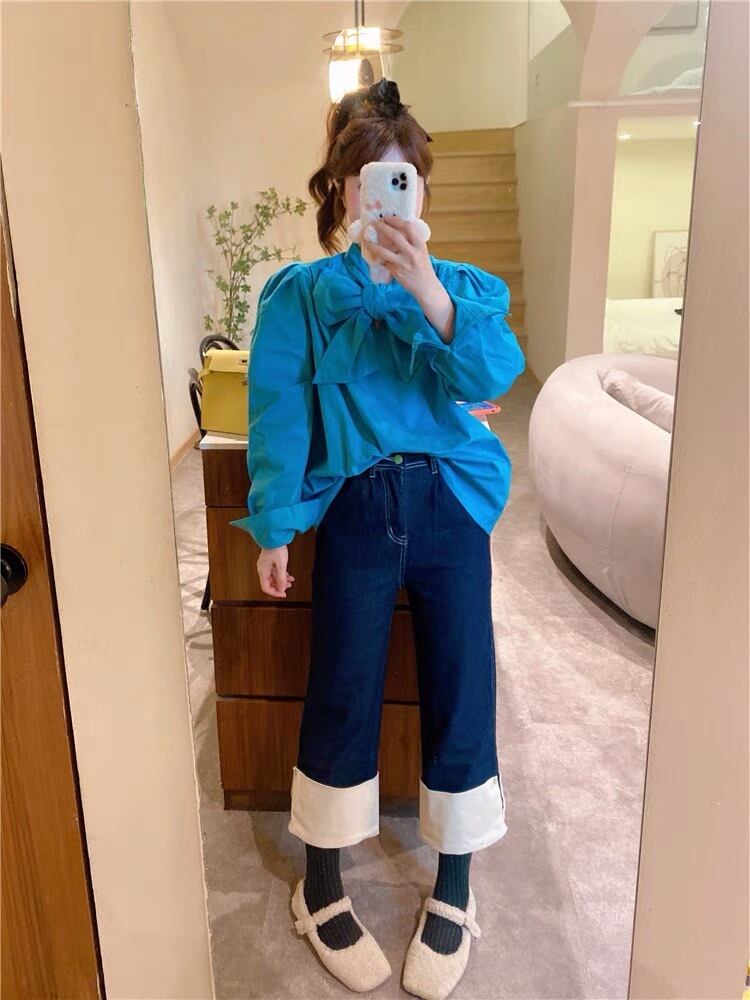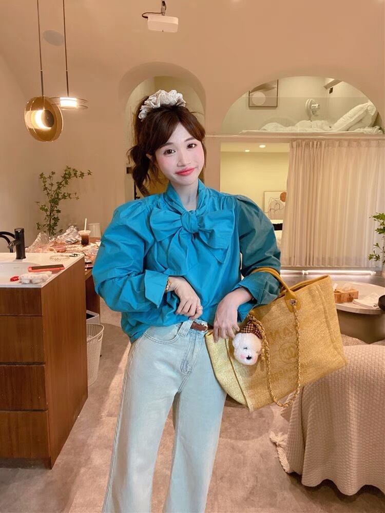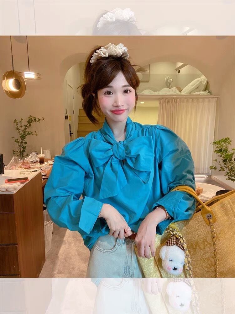 ブラウス リボン シャツ カジュアル 水色 ブルー 海 コート シンプル デコレーション 白 黒 フリル チェック 赤 茶色 アウター ジャケット ブルゾン カーディガン トレーナー スウェット ガーリー 姫 可愛い ミニ リボン プリーツ プリーツ レザー ガーリー ロリータ 原宿 渋谷 リボン 襟