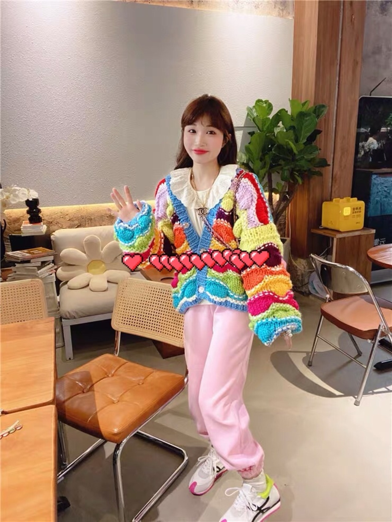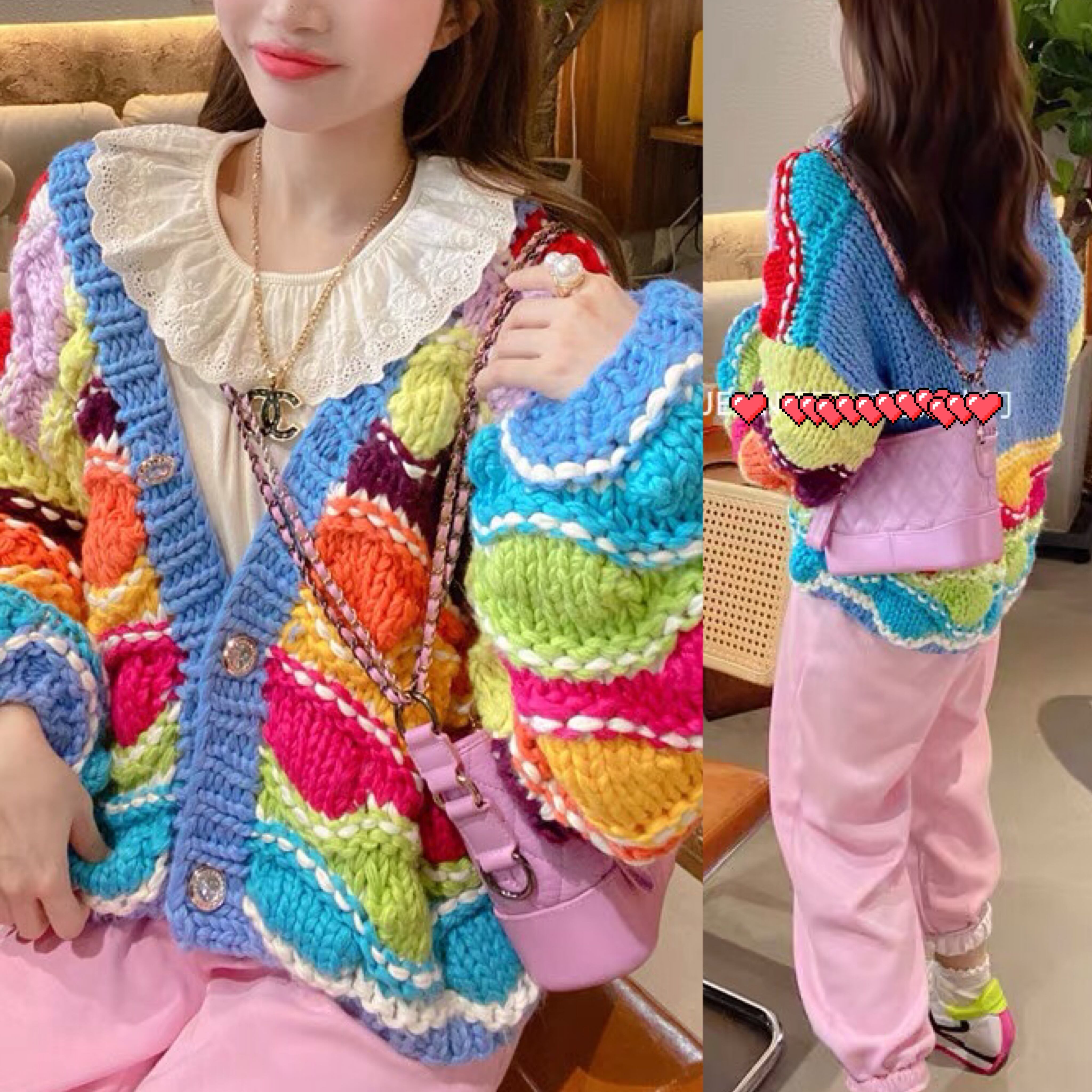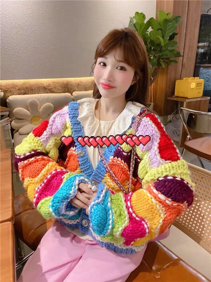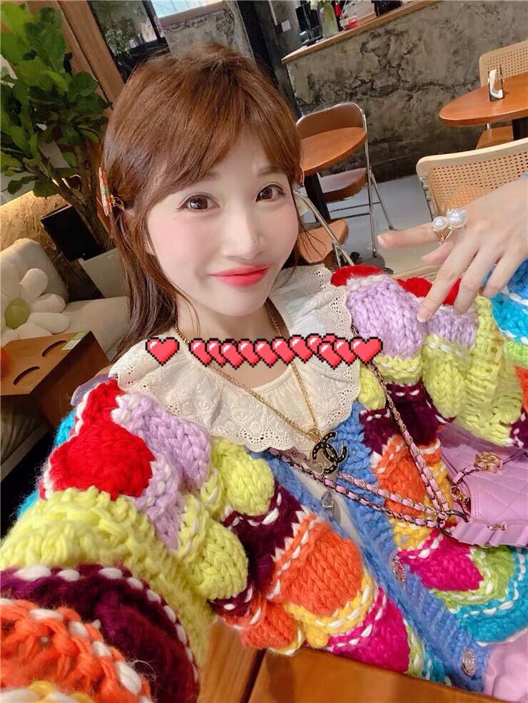 カーディガン カラフル ニット ボーダー 水色 オレンジ トップス アウター ジャケット コート ガーリー 姫 可愛い ミニ リボン プリーツ プリーツ レザー ガーリー ロリータ 原宿 渋谷 革
