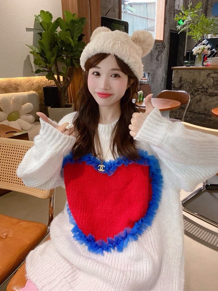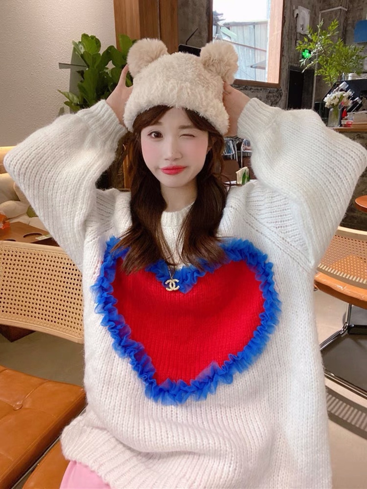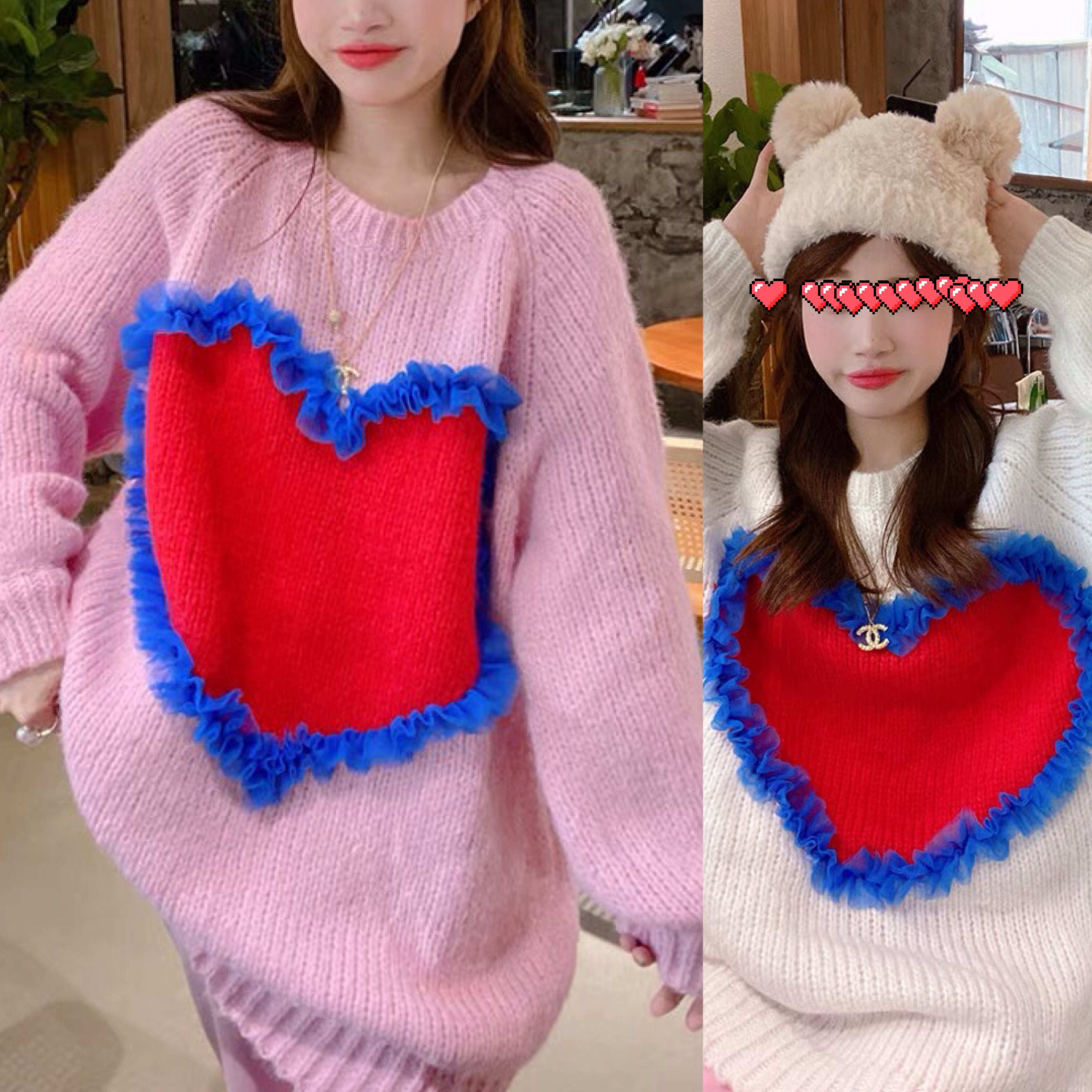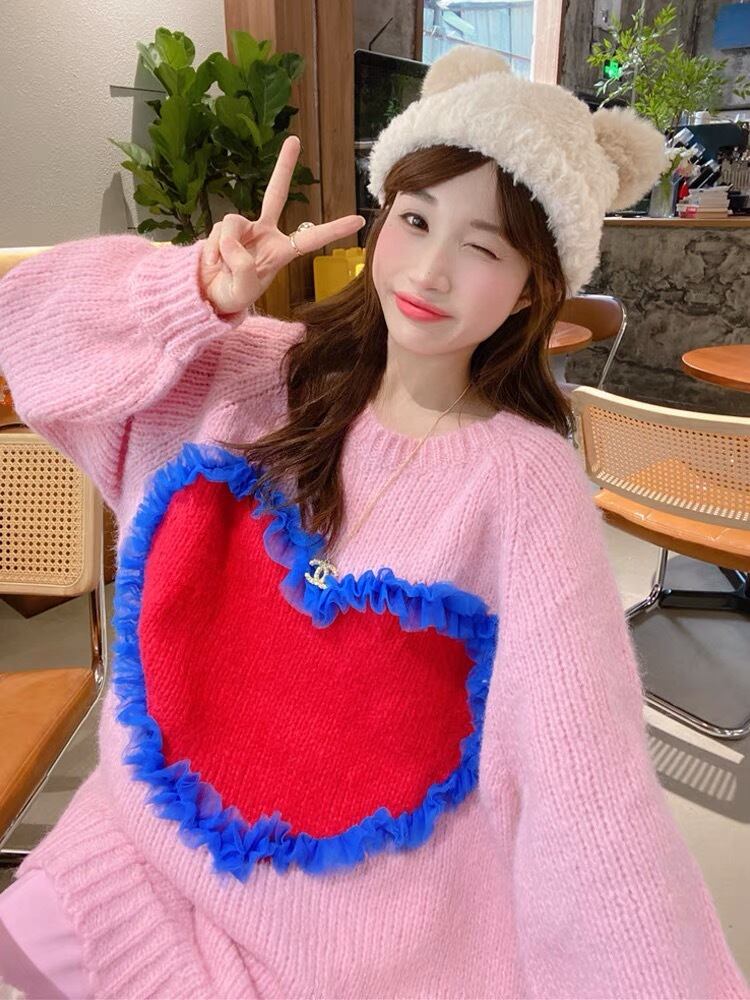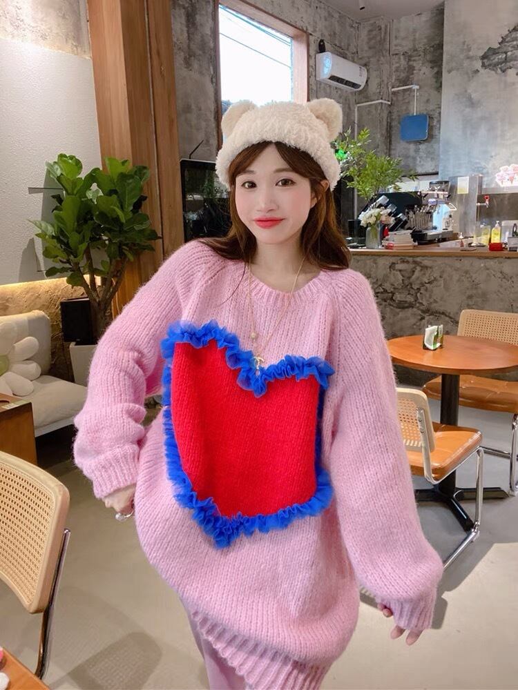 セーター ピンク 白 赤 ハート ニット カジュアル オーバーサイズ ゆったり ガーリー 姫 可愛い ミニ リボン プリーツ プリーツ レザー ガーリー ロリータ 原宿 渋谷 革 カーディガン