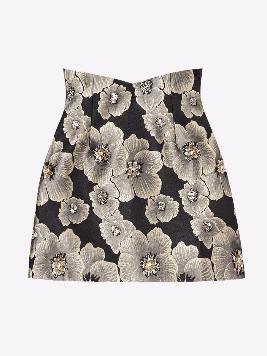 スカート 花柄 ボトムス お嬢様 エレガント シルバー 銀座 表参道 六本木 セクシー ダンス フラワー 和柄
