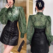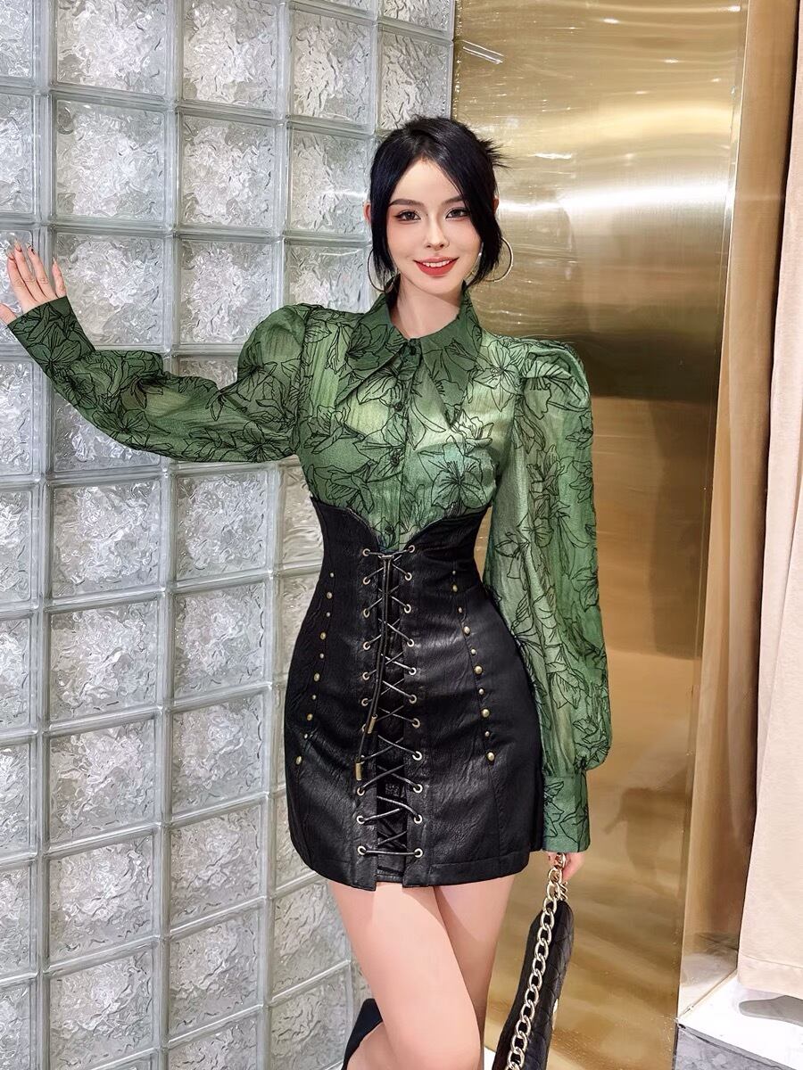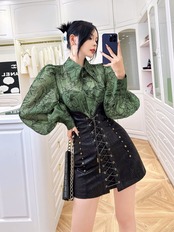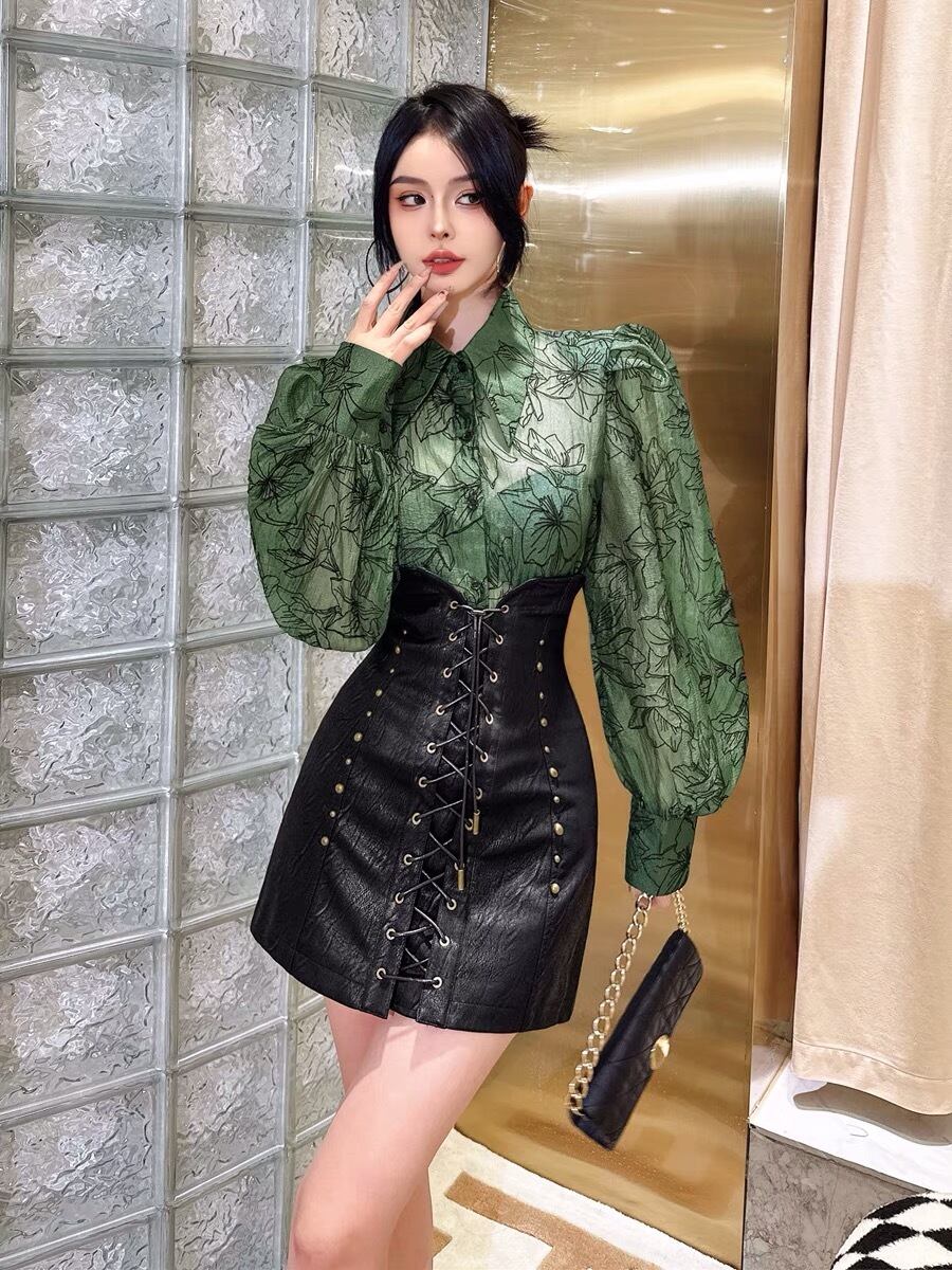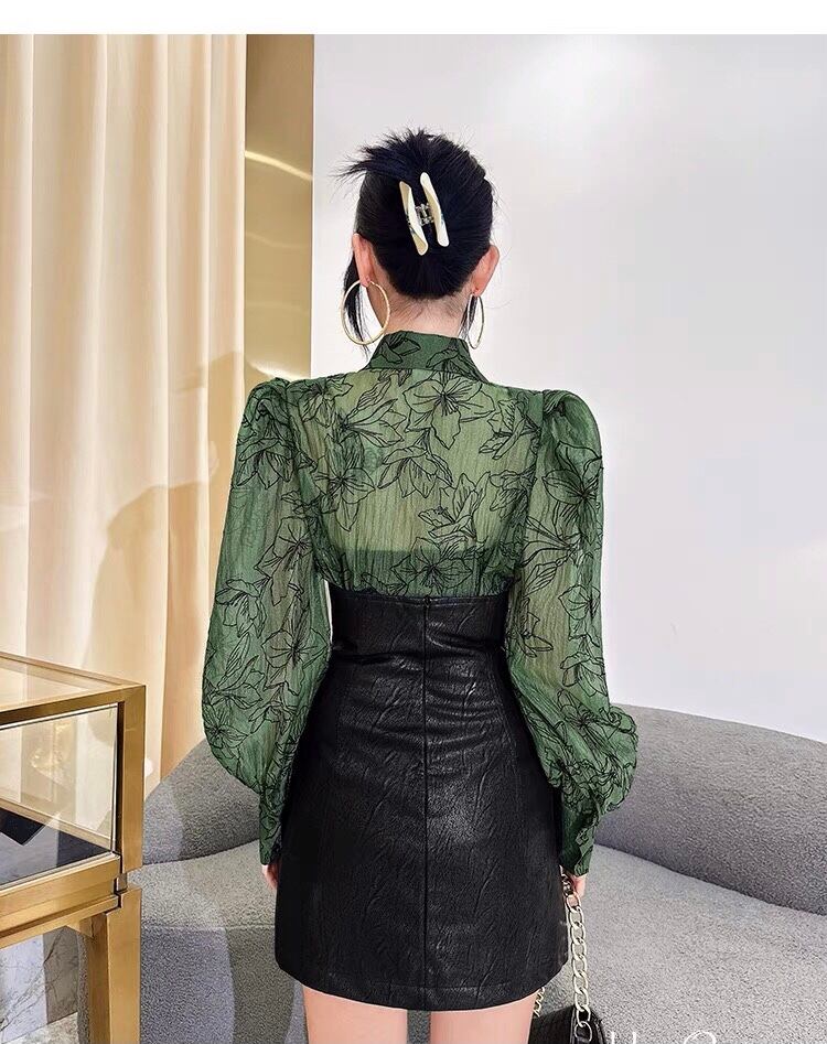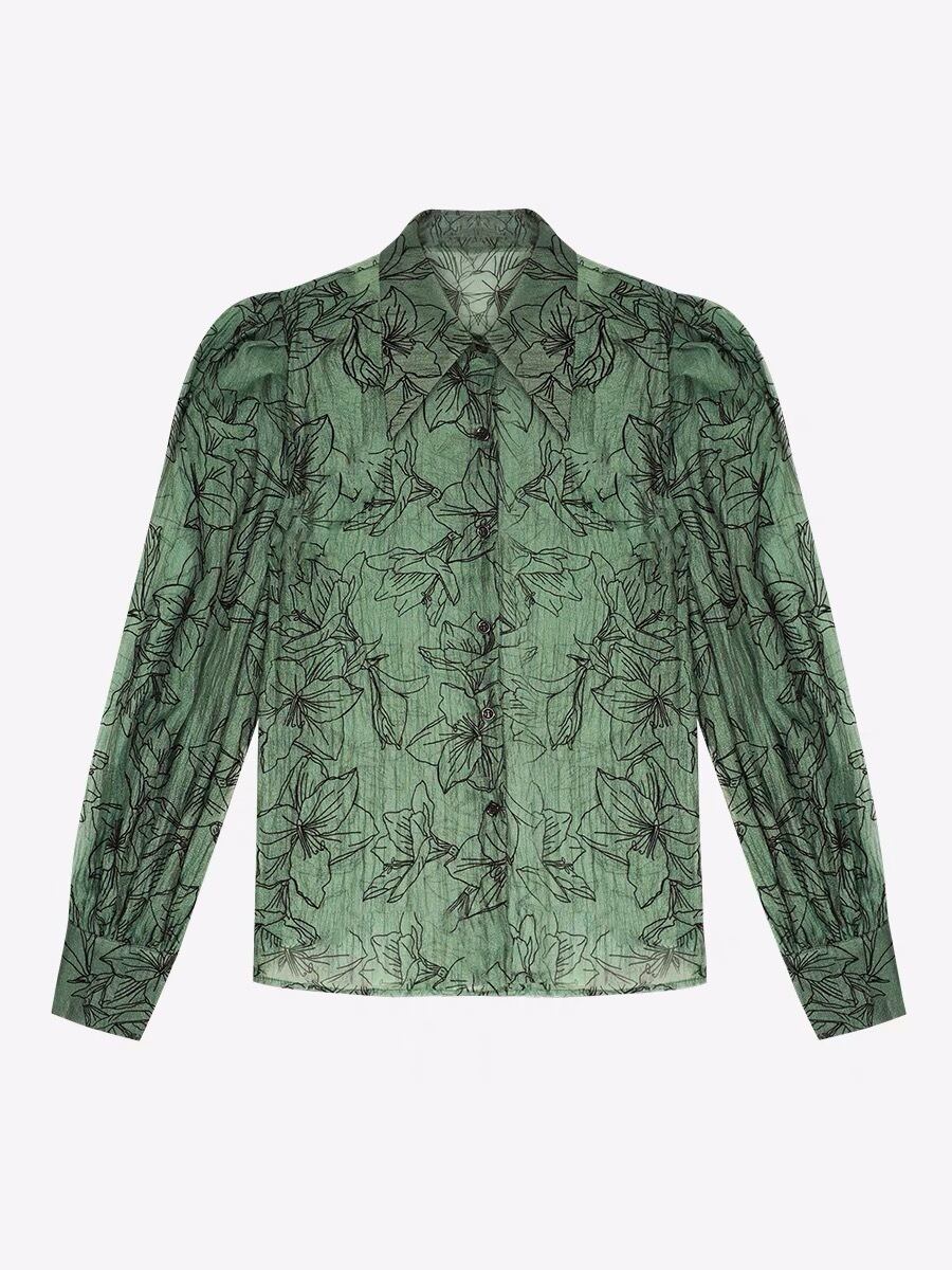 ブラウス お嬢様 緑 花柄 フラワー トップス シャツ ブラウス 黒 ブラック シャツ エレガント カッコいい ゴージャス ゴールド チェック ボーダー トップス 六本木 銀座 お嬢様 表参道 ブラック 黒 モード エレガント