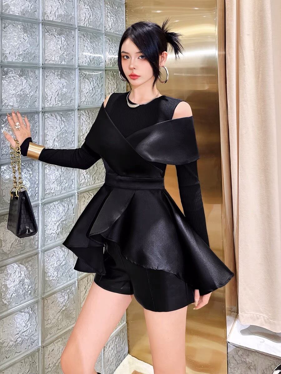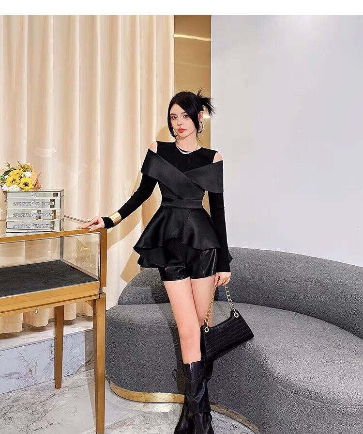 ブラウス 黒 ブラウス ブラック チュニック ワンピース オフショルダー ブラウス 黒 ブラック シャツ エレガント カッコいい ゴージャス ゴールド チェック ボーダー トップス 六本木 銀座 お嬢様 表参道 ブラック 黒 モード