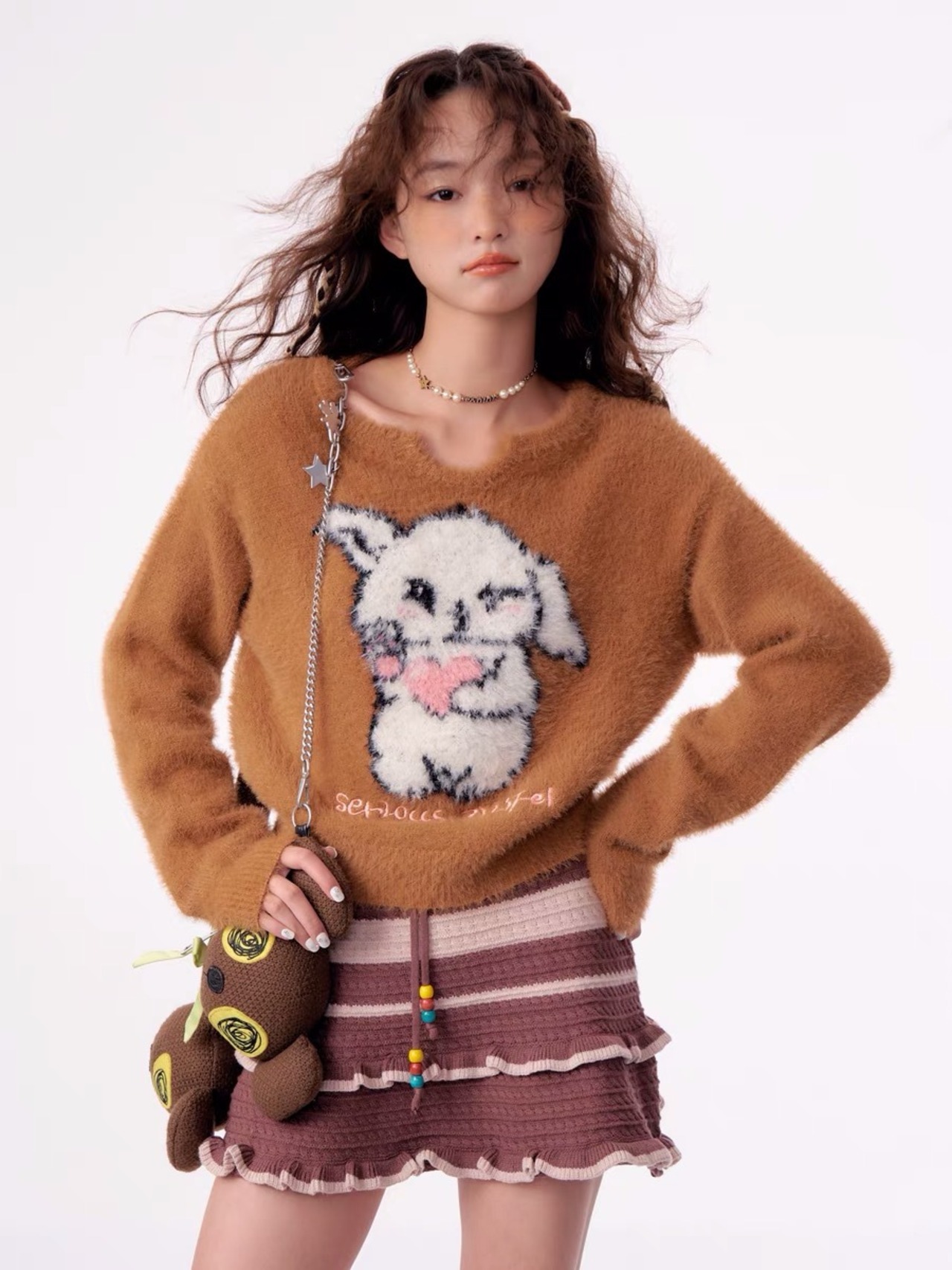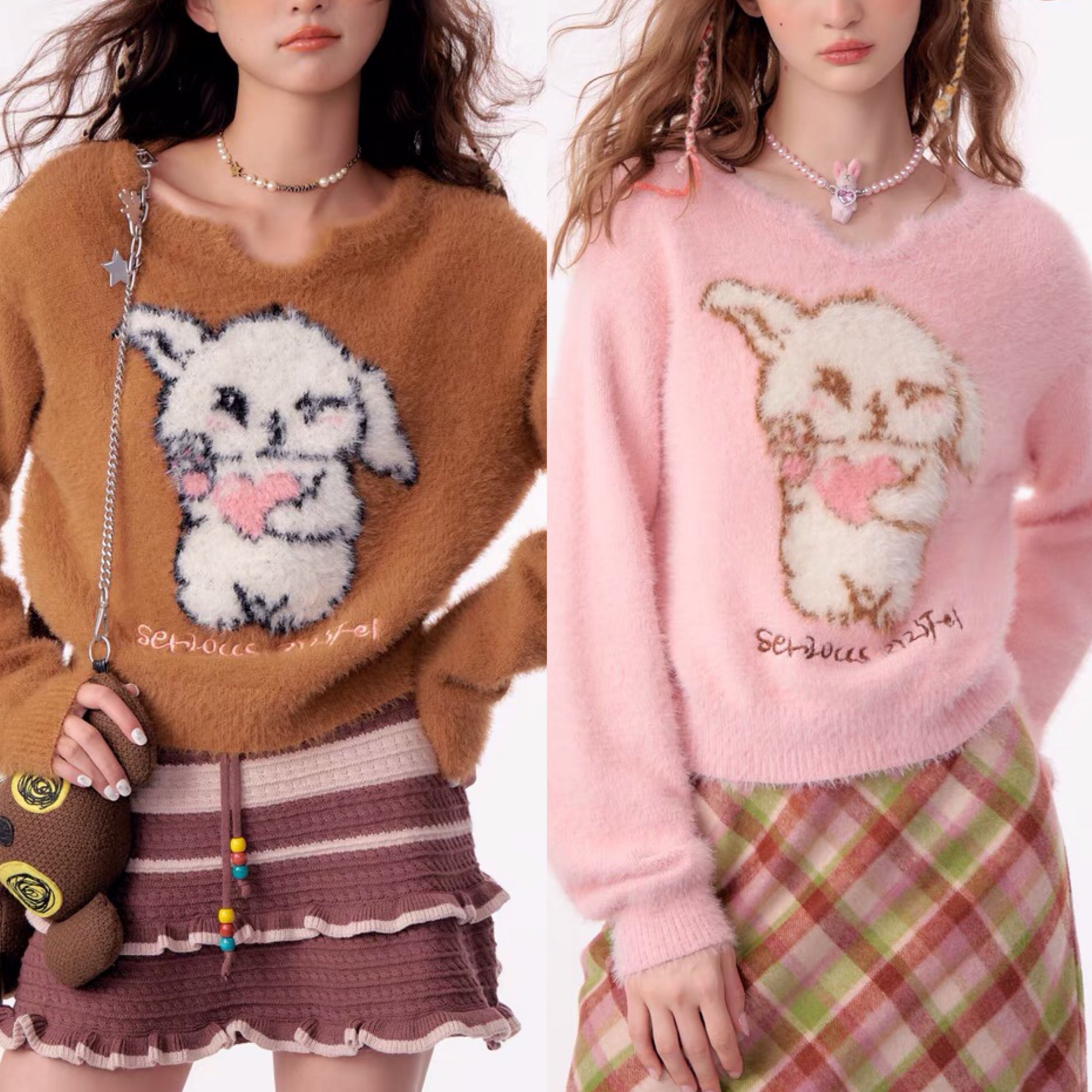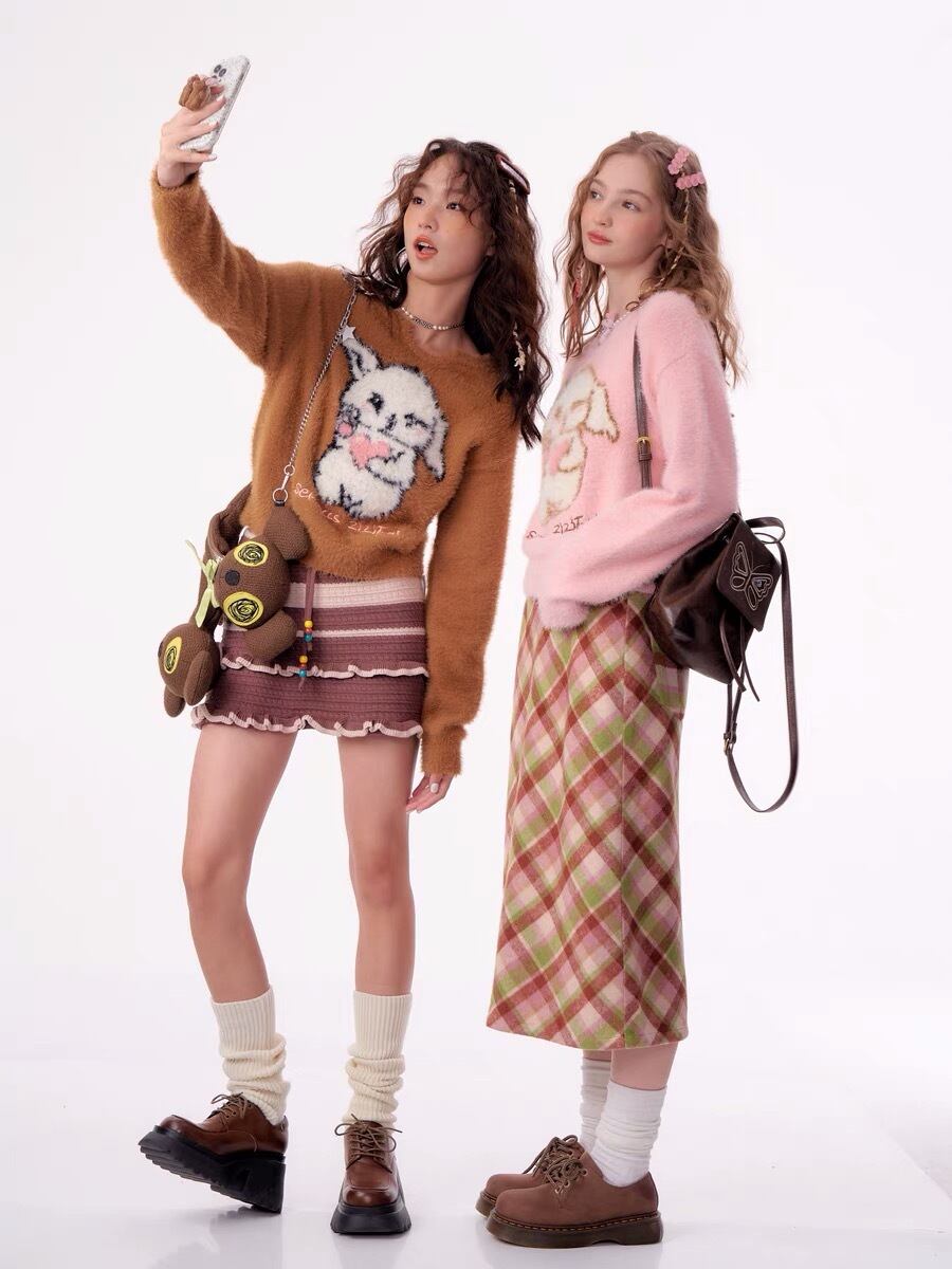 セーター 猫 カーディガン ニット 茶色 ピンク ガーリー 姫 可愛い ミニ リボン プリーツ プリーツ レザー ガーリー ロリータ 原宿 渋谷 革