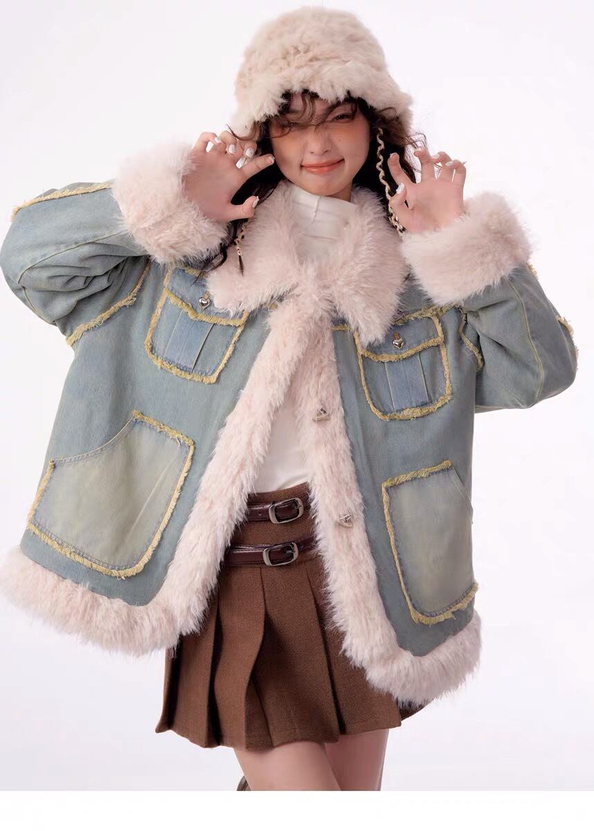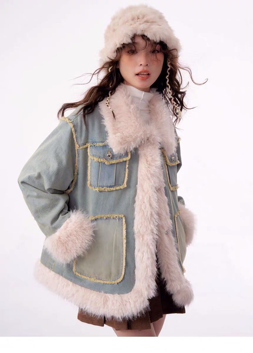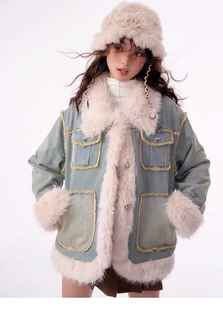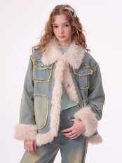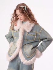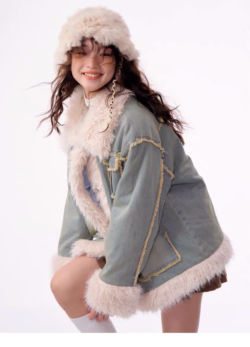 アウター デニム ファー コート ジャケット ブルゾン ガーリー 姫 可愛い ミニ リボン プリーツ プリーツ レザー ガーリー ロリータ 原宿 渋谷 革