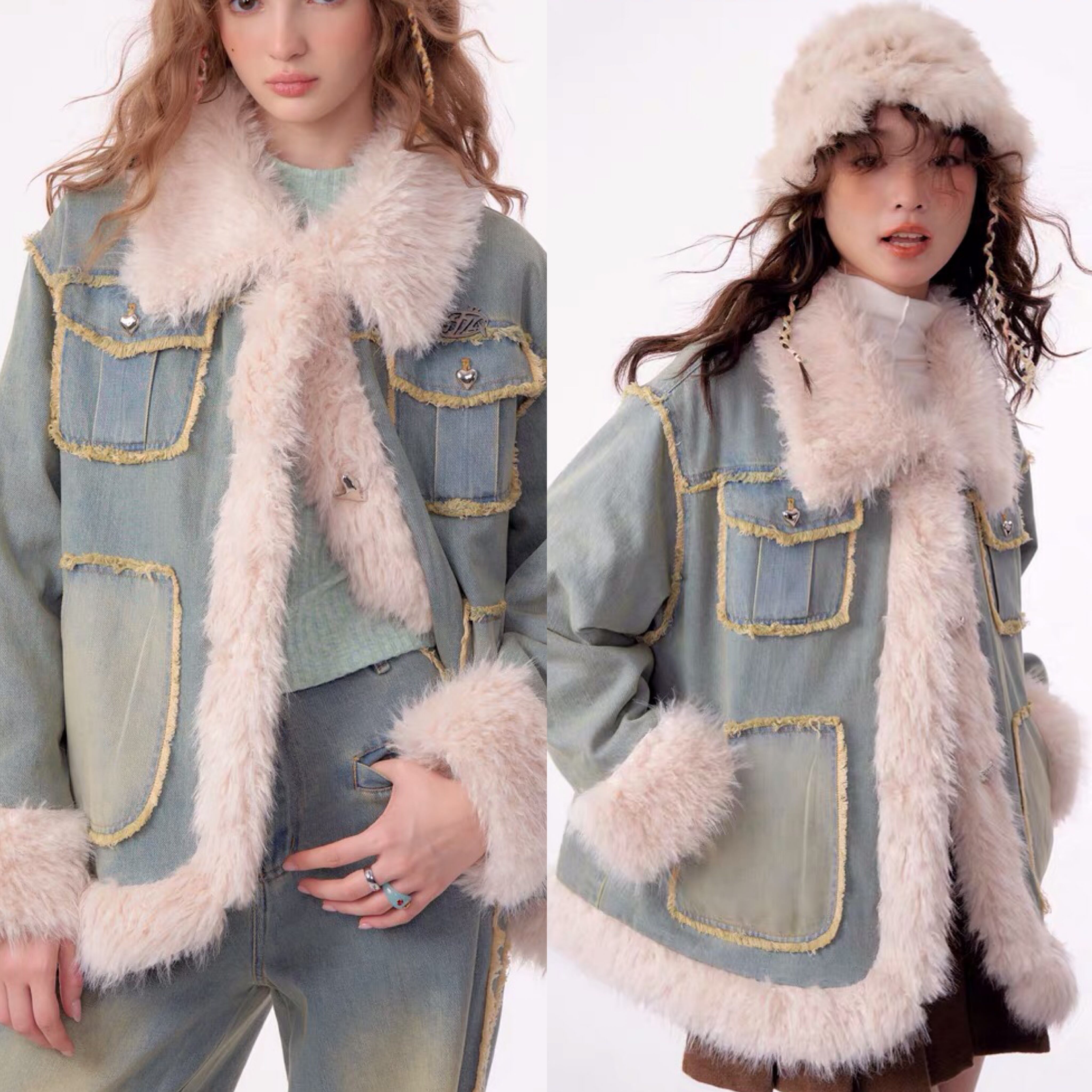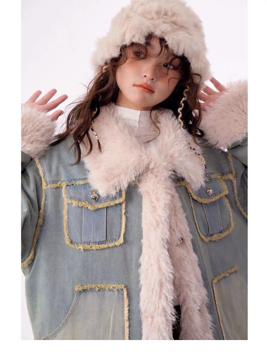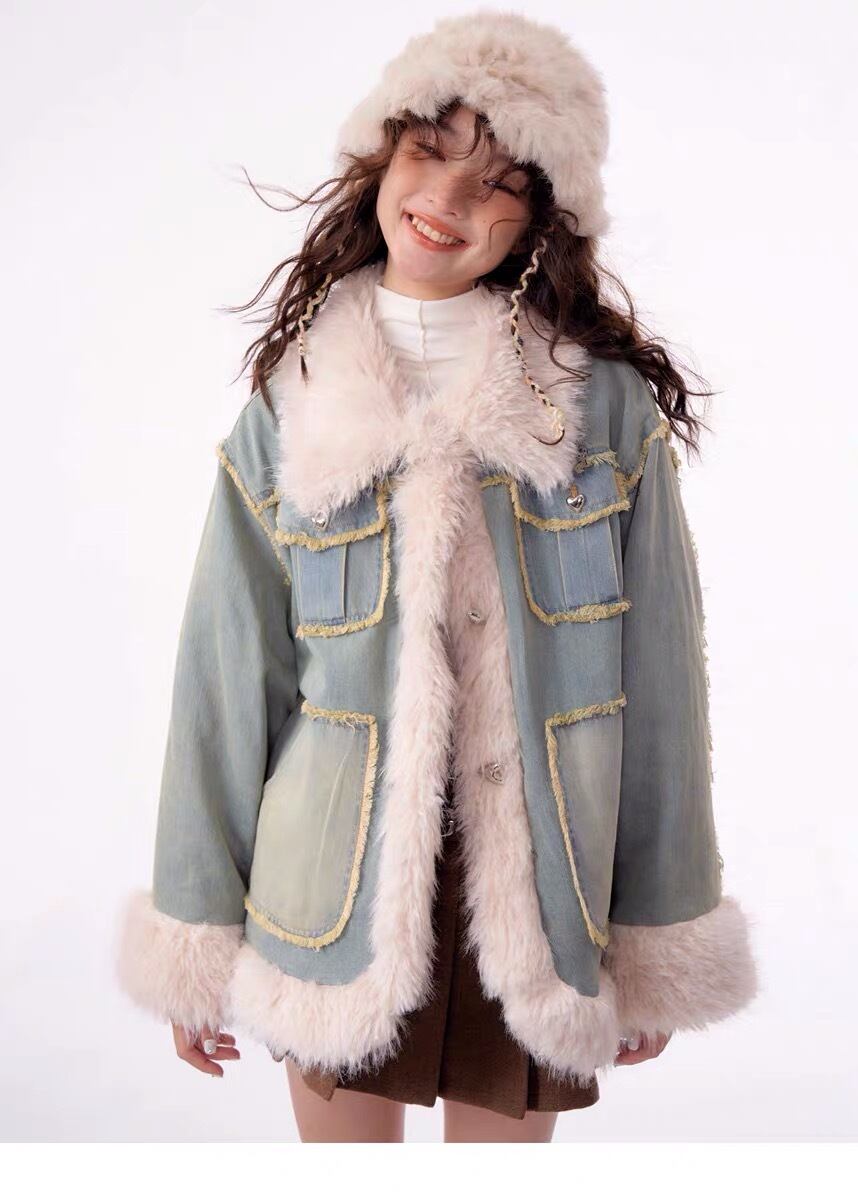 アウター デニム ファー コート ジャケット ブルゾン ガーリー 姫 可愛い ミニ リボン プリーツ プリーツ レザー ガーリー ロリータ 原宿 渋谷 革