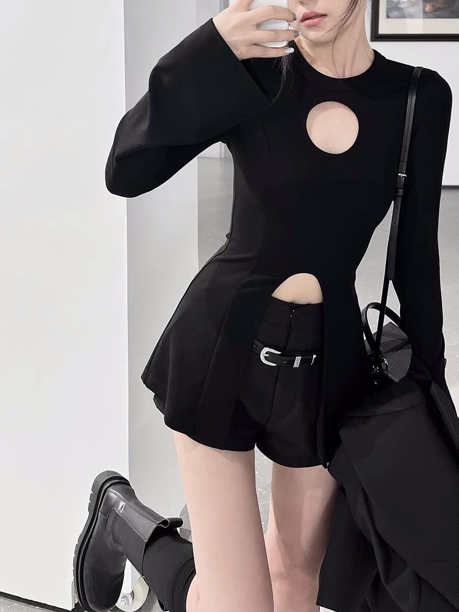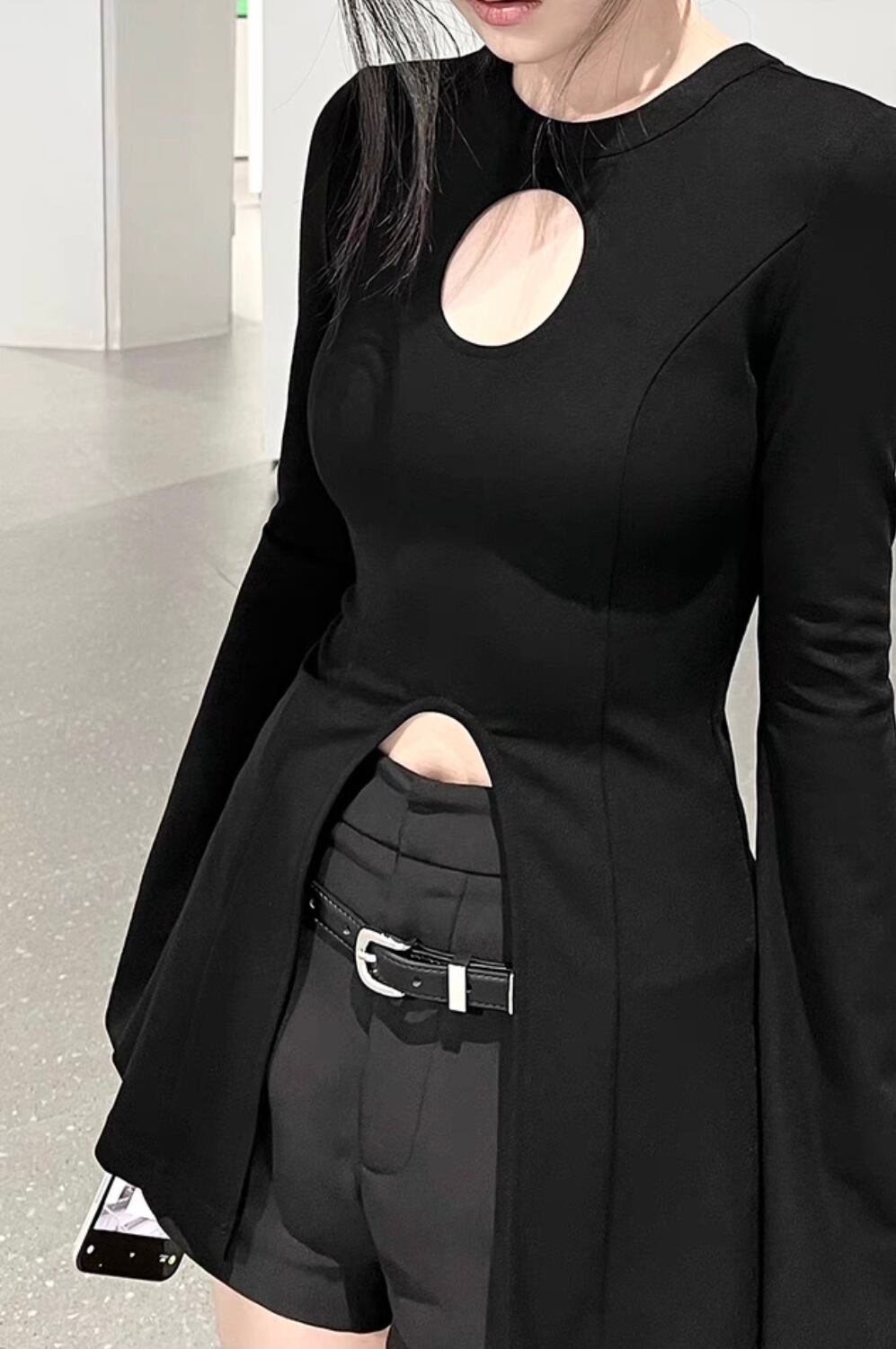 トップス ハイネック Tシャツ セクシー ブラウス 黒 ブラック シャツ エレガント カッコいい ゴージャス ゴールド チェック ボーダー トップス 六本木 銀座 お嬢様 表参道 ブラック 黒 モード