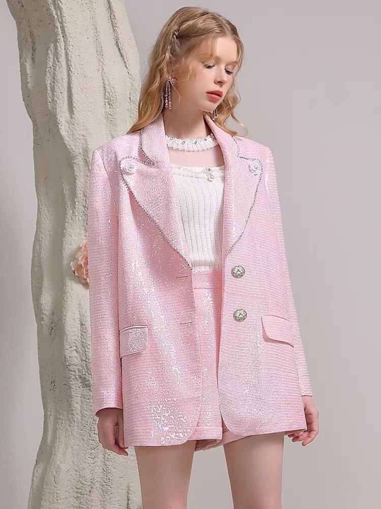 ジャケット キラキラ スパンコール コート アウター ブルゾン カーディガン ワンピース エレガント デニム カメリア ゴージャス 銀座 表参道 ドレス お嬢様 ガーリー 姫 パーティー ゴージャス ワンピース