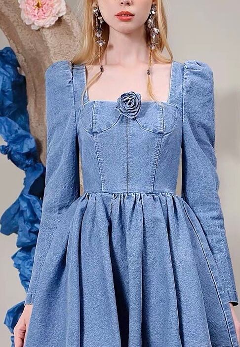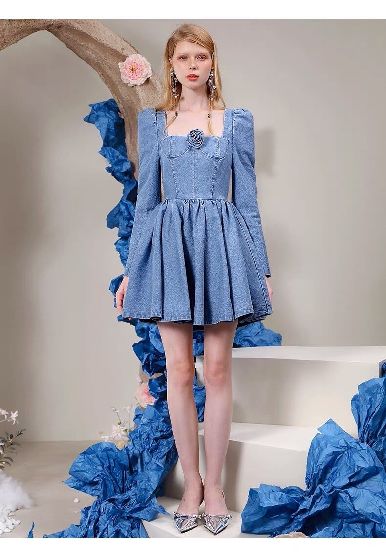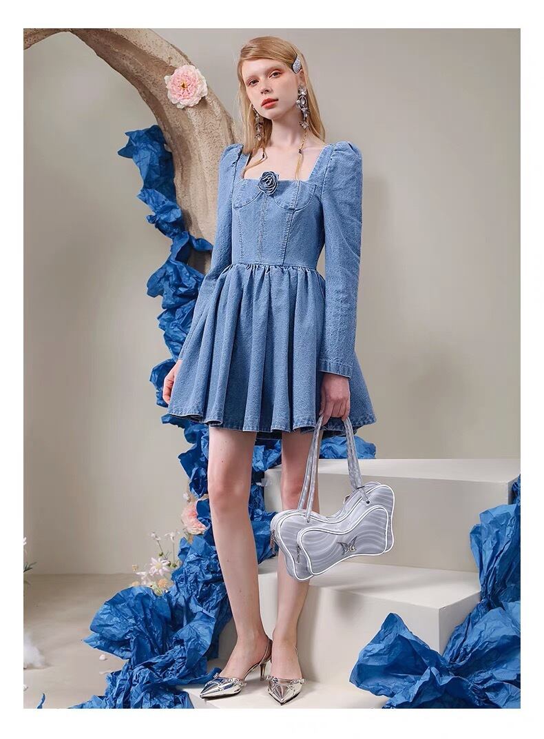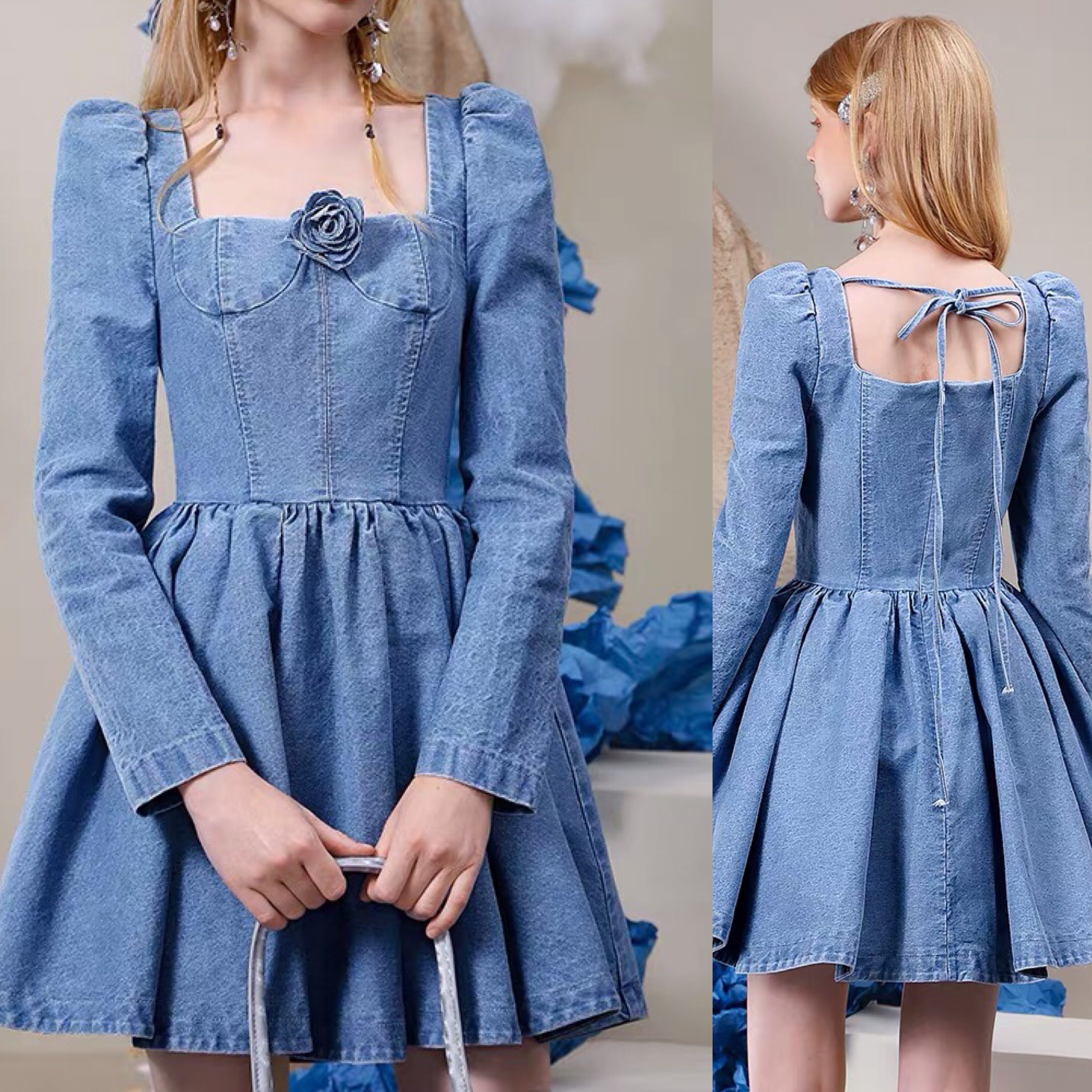 ワンピース エレガント デニム カメリア ゴージャス 銀座 表参道 ドレス お嬢様 ガーリー 姫 パーティー ゴージャス