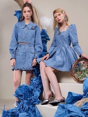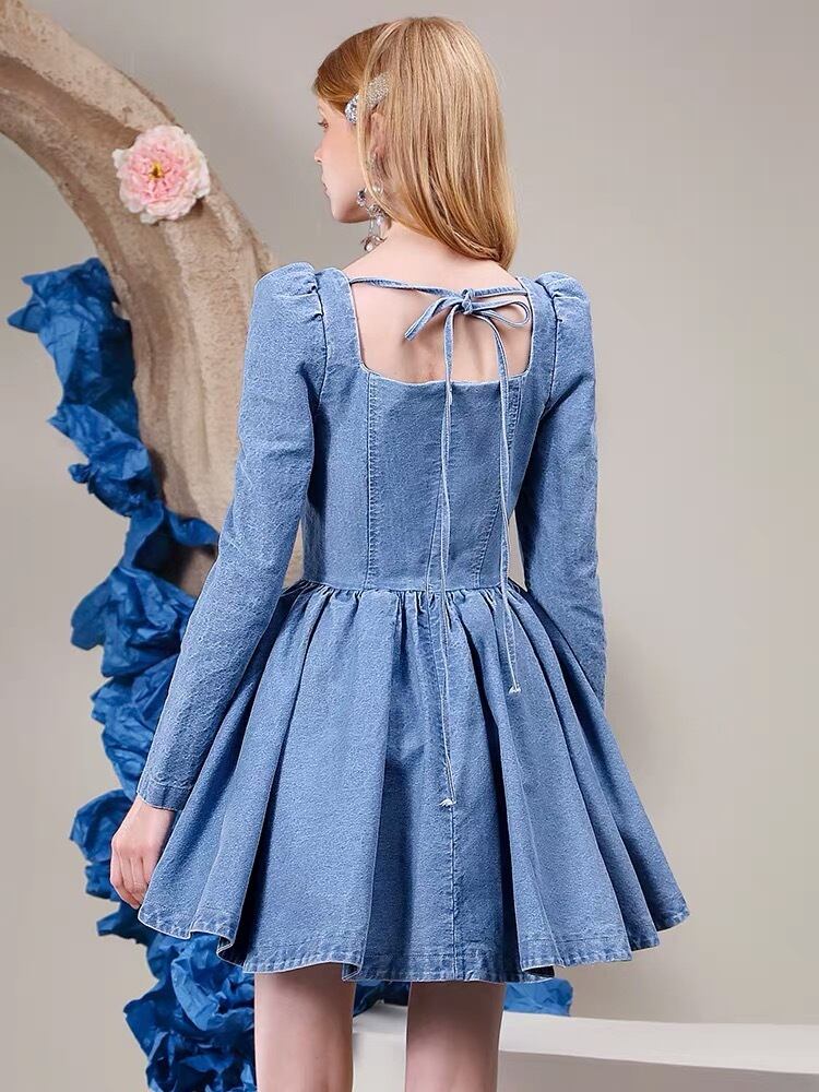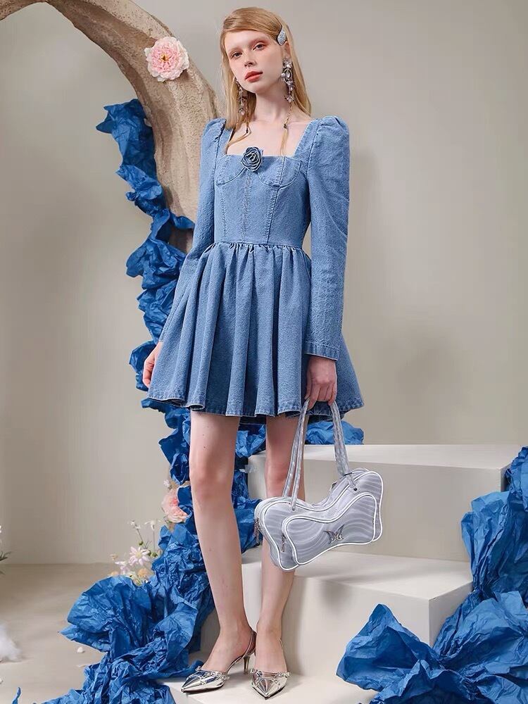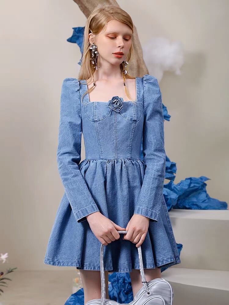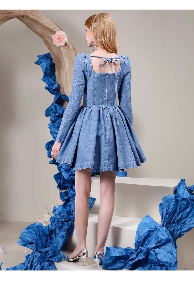 ワンピース エレガント デニム カメリア ゴージャス 銀座 表参道 ドレス お嬢様 ガーリー 姫 パーティー ゴージャス