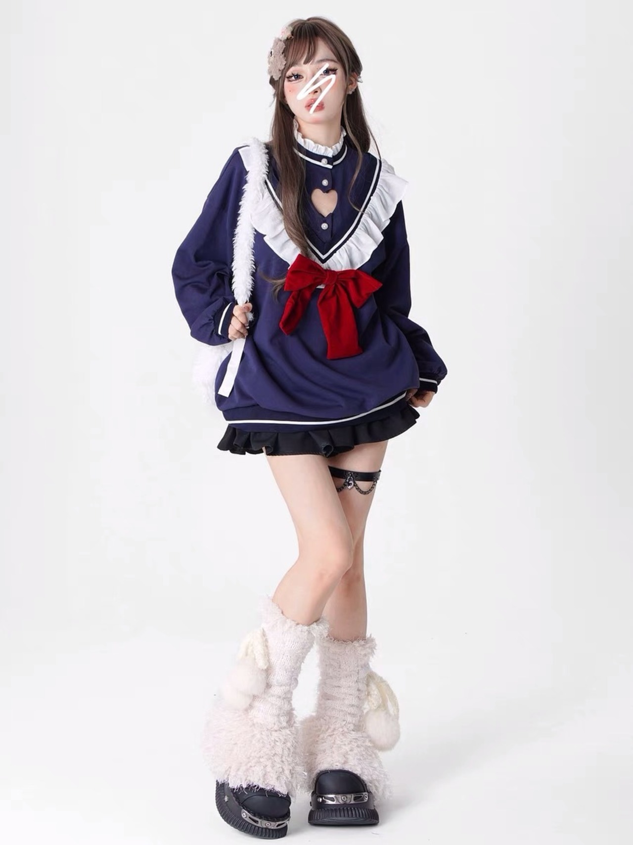 トレーナー スウェット ガーリー 姫 スクール リボン パーカー 原宿 可愛い 渋谷 ロリータ ガーリー カジュアル トップス オーバーサイズ ゆったり